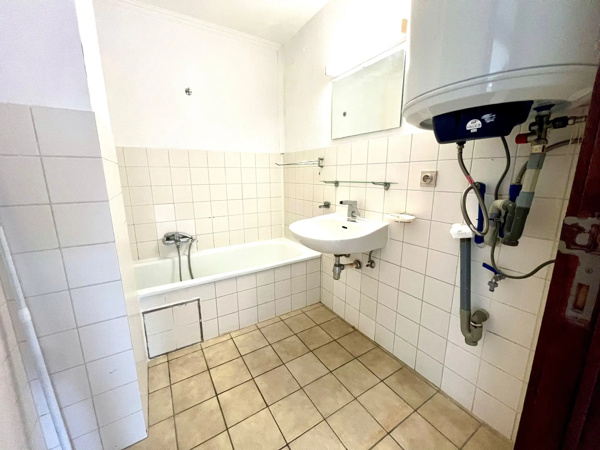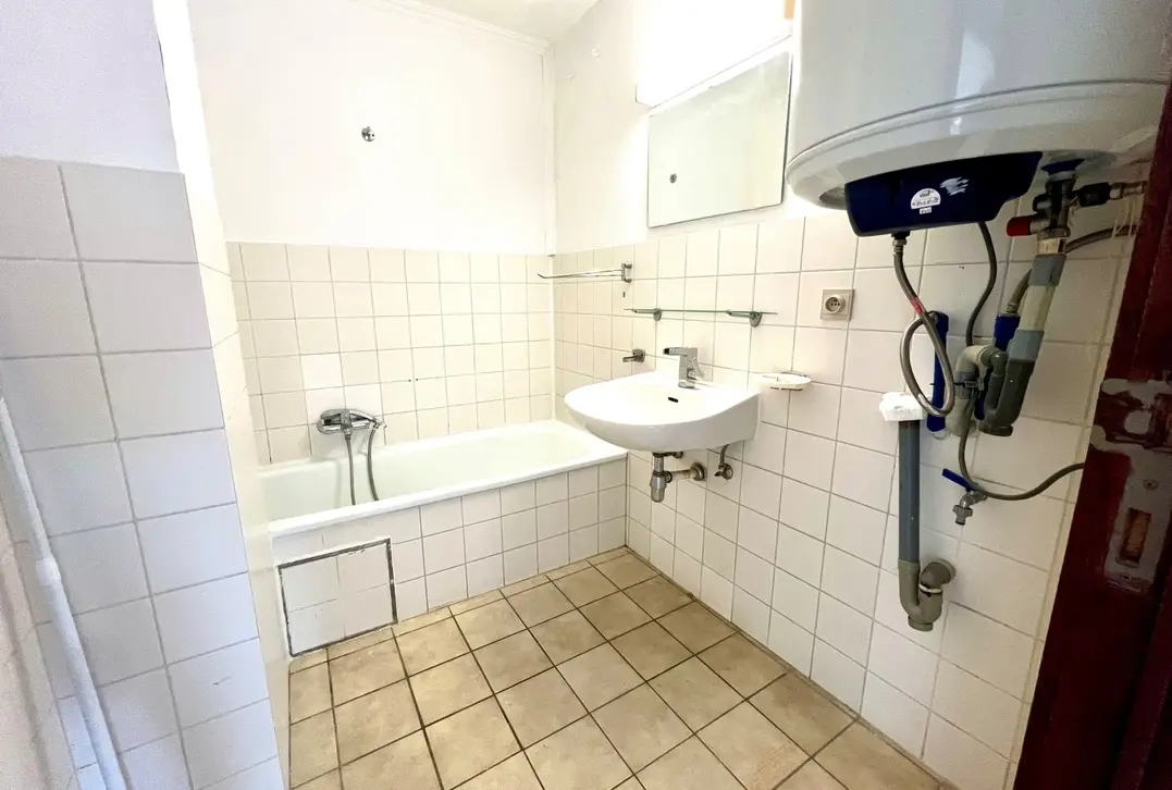 - Badkamer met ligbad en lavabomeubel
