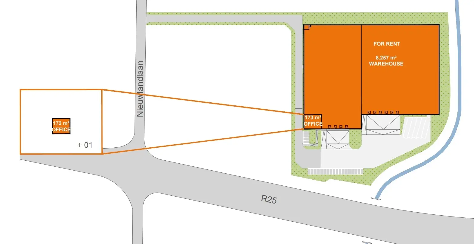 Op zoek naar een logistieke 'hotspot' in Aarschot? Zoek niet verder. Het magazijn is gelegen langsheen de R25 en biedt een goede ontsluiting naar de E313, E314 en de RO.