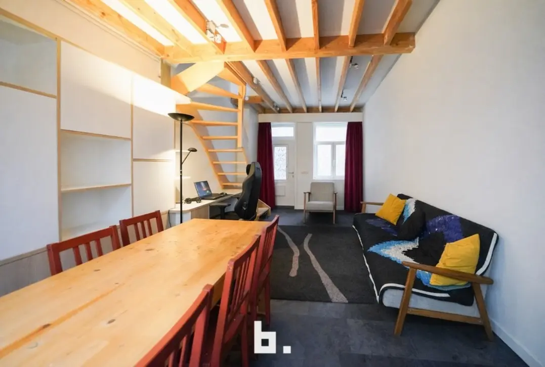 De woning beschikt over een gezellige woonkamer met veel lichtinval en een open, volledig uitgeruste keuken. Op de eerste verdieping bevindt zich een ruime slaapkamer en een nette badkamer. Daarnaast is er een praktische zolderruimte die kan dienen als extra opslag.