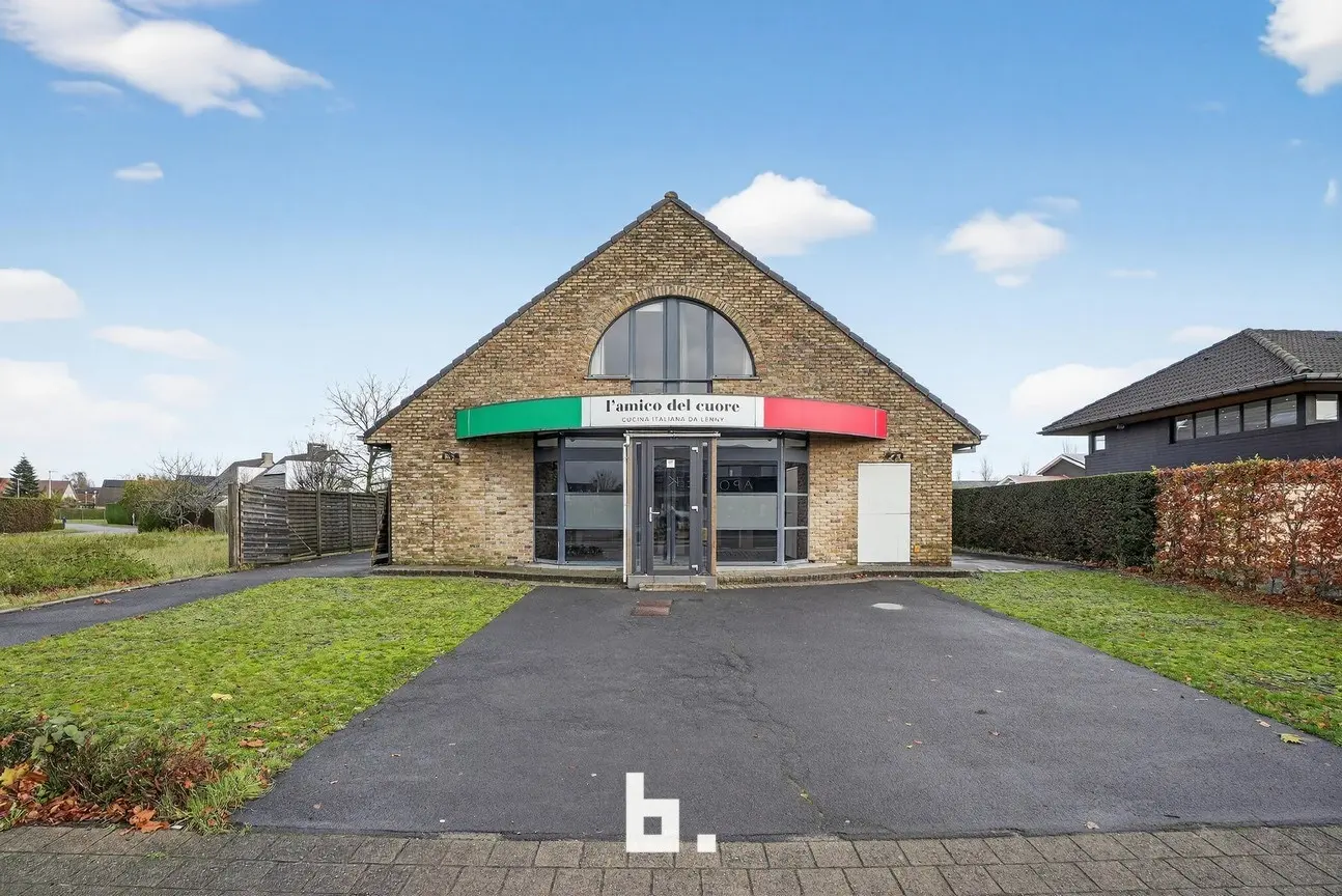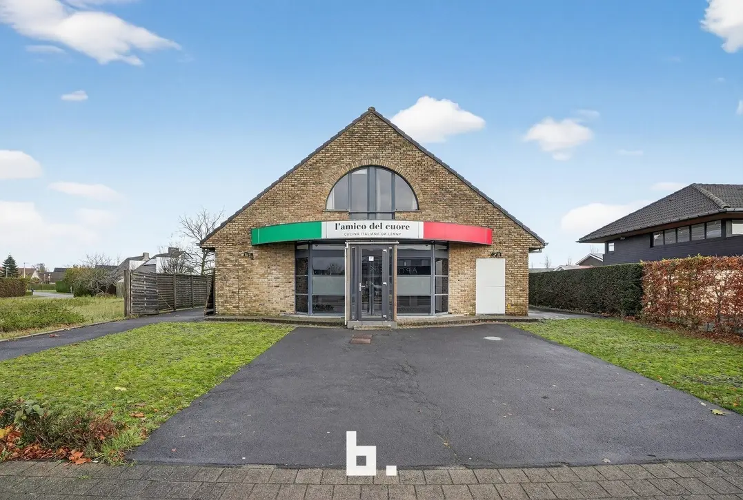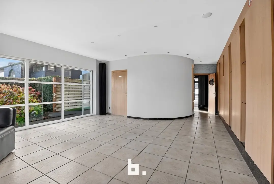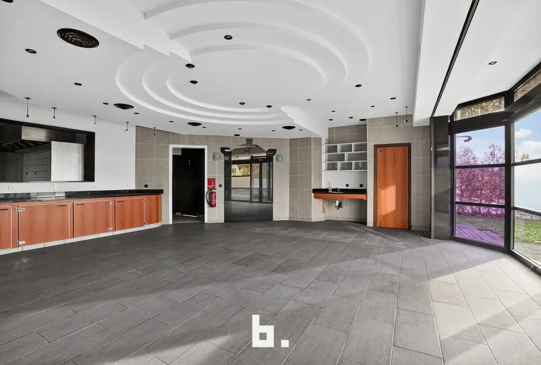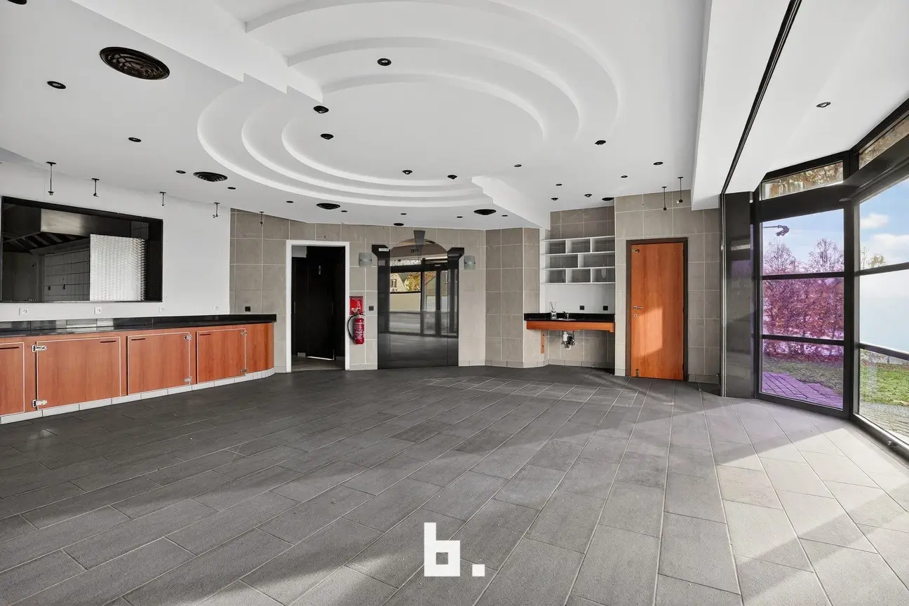 GLV: ruim kantoor/winkelruimte, archiefruimte en atelier met verschillende ruimtes, koelruimtes, toiletten en bergingen. Aparte toegang voor de winkel en atelier. Achter de winkel ligt de grote leefruimte en keuken.