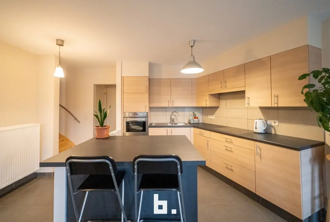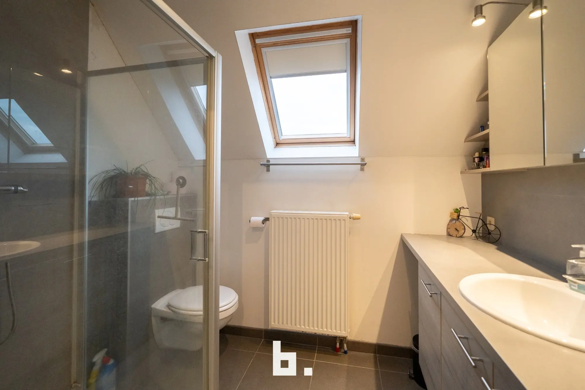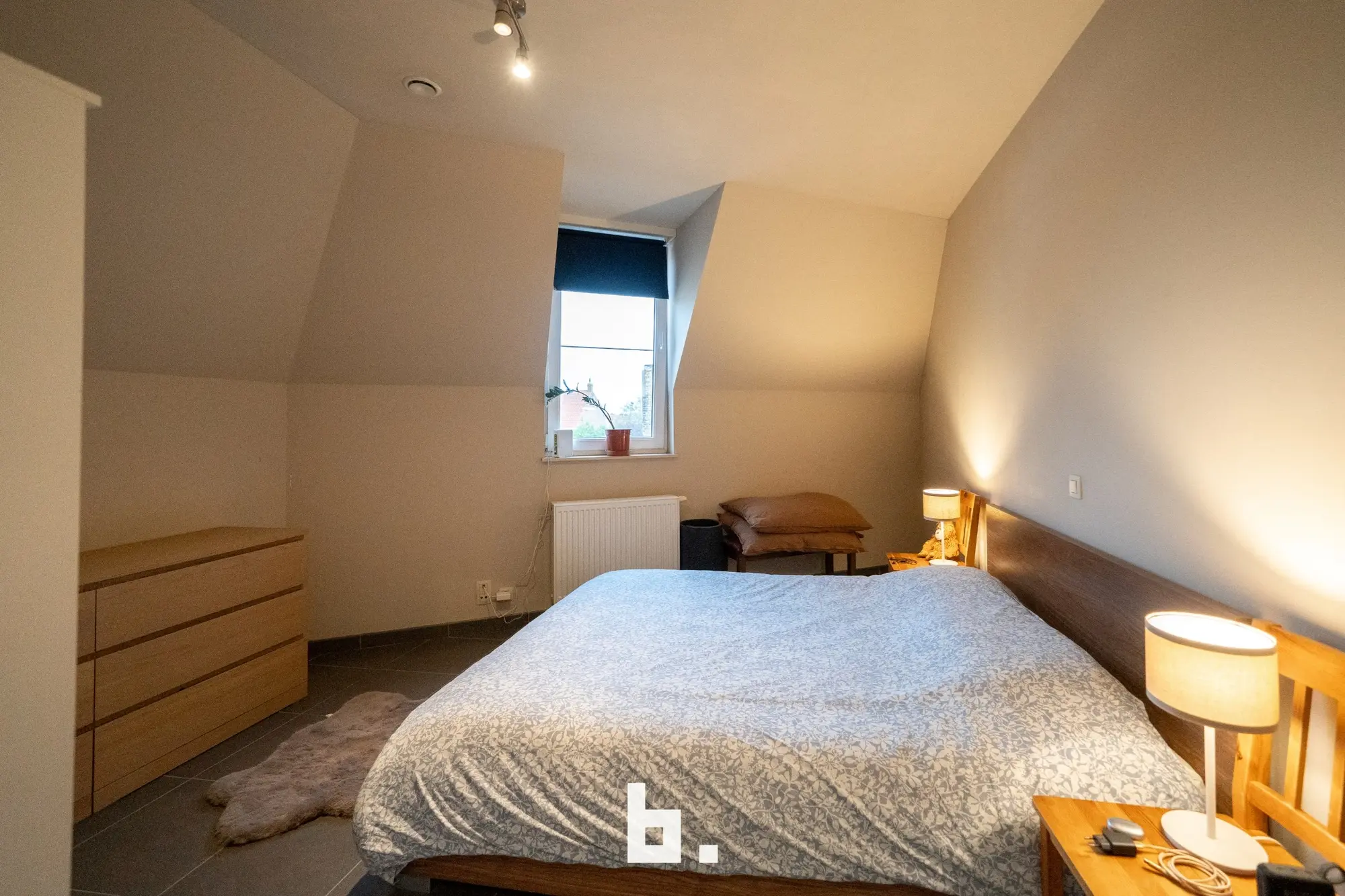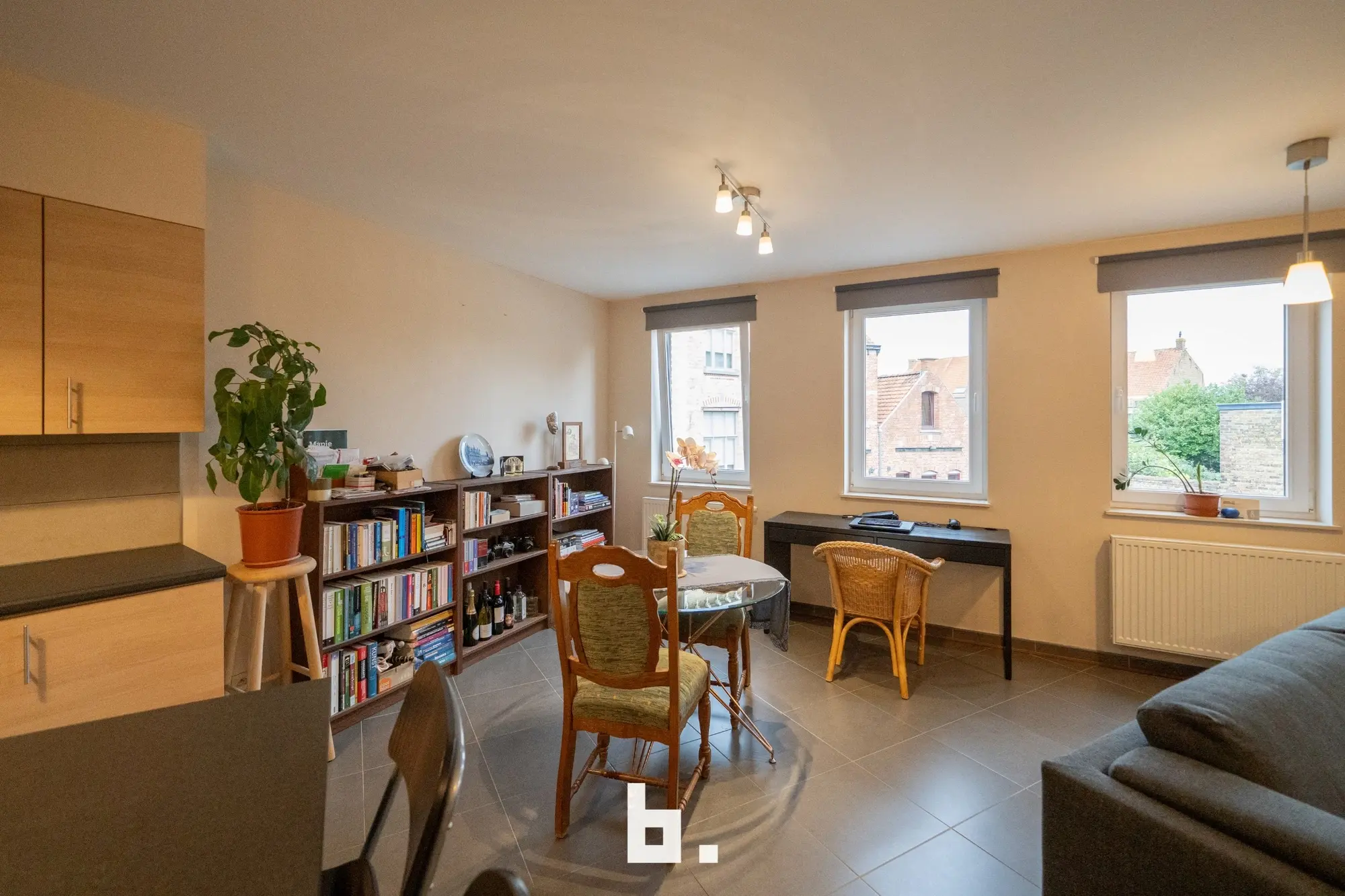 Recent duplex appartement op wandelafstand van het centrum van Brugge. Het appartement omvat op het gelijkvloers een garage met plaats voor wasmachine en droogkast. Op de 1e verdieping bevindt zich de ruime woonkamer, open keuken, berging, gastentoilet en terras. Op de 2e verdieping bevinden zich 2 slaapkamers en de badkamer met douche, toilet en enkele lavabo.