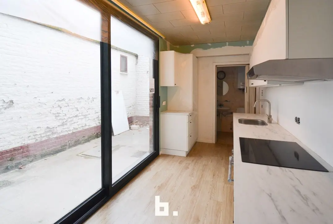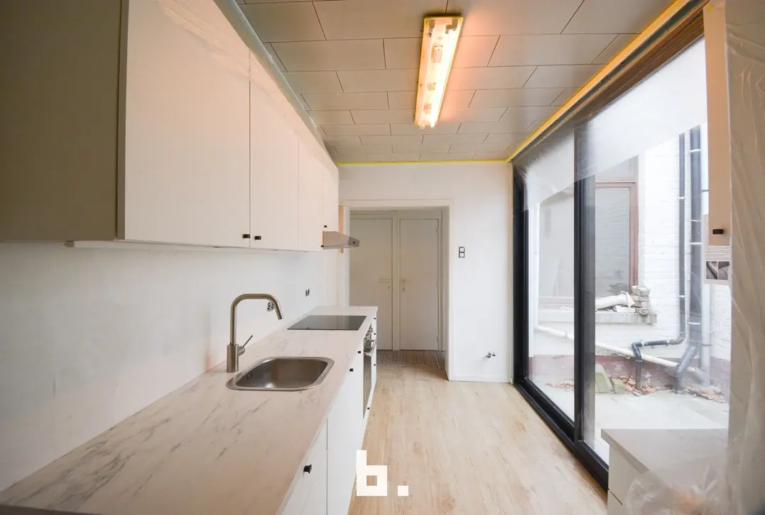 De woning omvat op het gelijkvloers een woonkamer, keuken, toilet, kelder en koer. De keuken is volledig vernieuwd. Er is ook een groot schuifraam aanwezig. Op de eerste verdieping een zeer ruime slaapkamer met prachtig zicht en volledig nieuwe badkamer. Op de tweede verdieping zijn er nog 2 mooie ruime kamers.