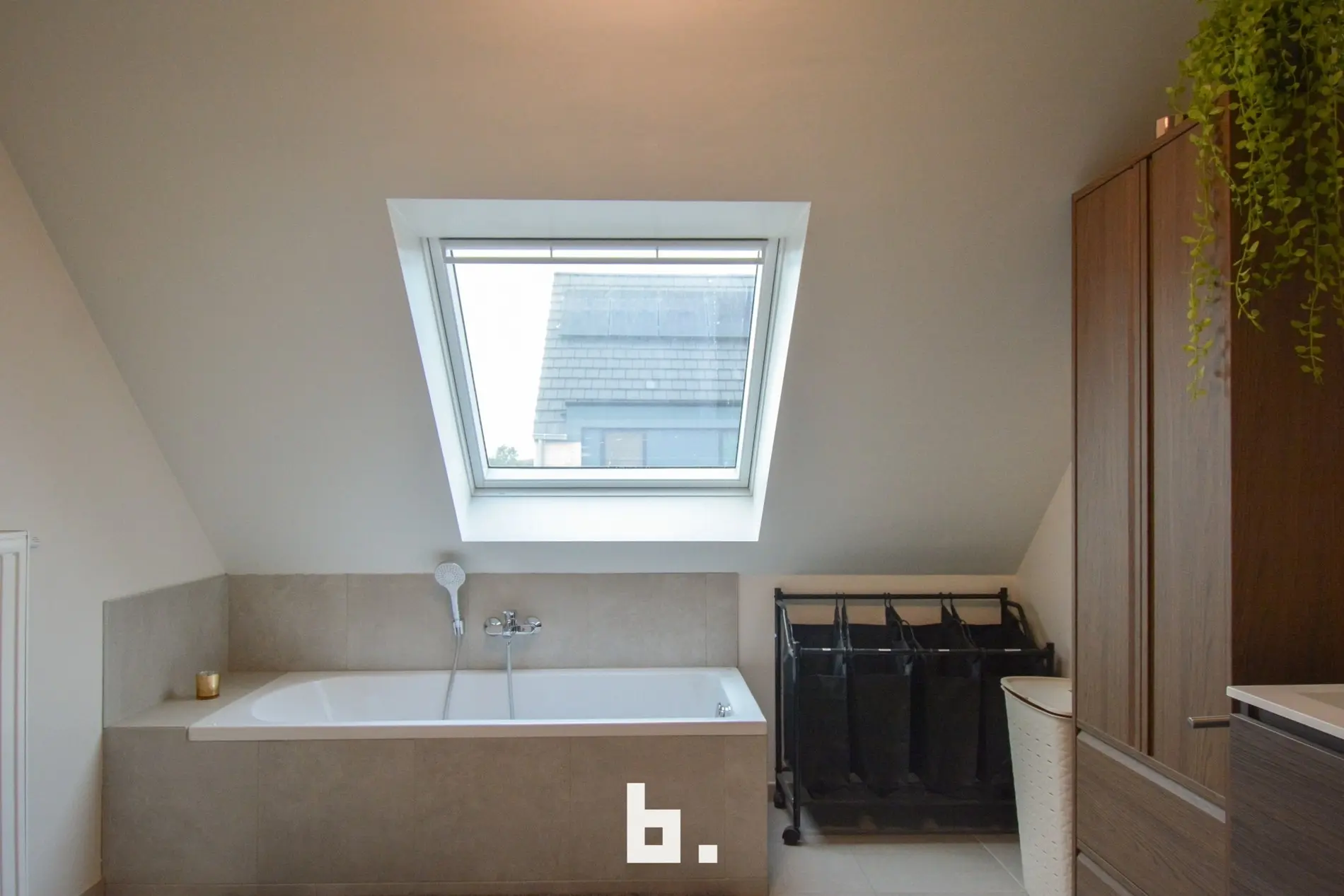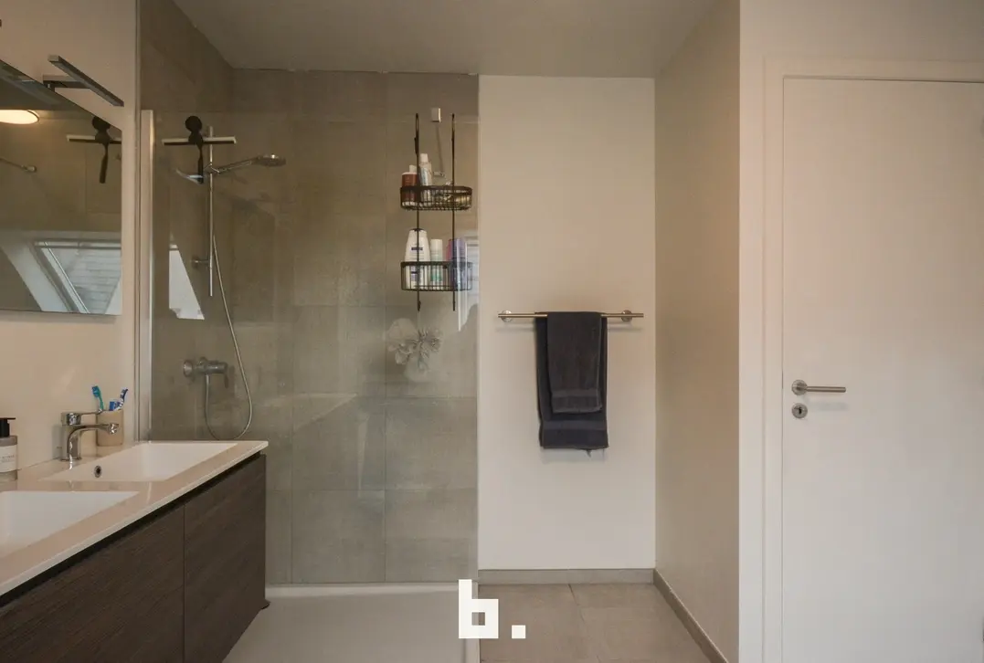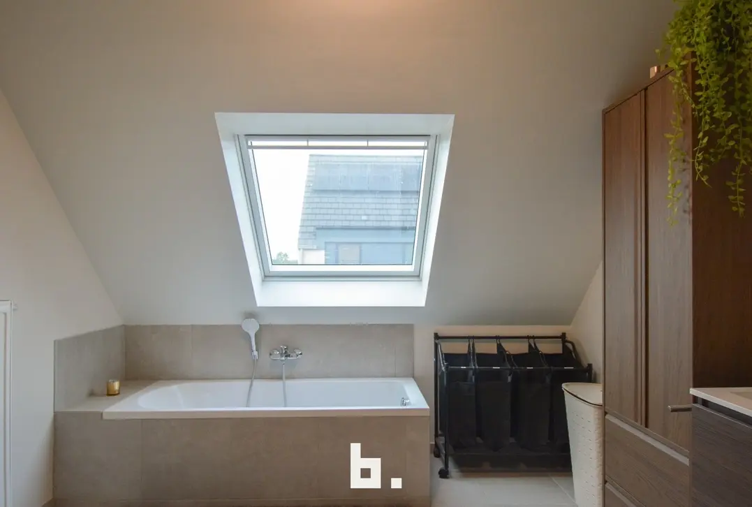 De woning omvat een inkomhal met toilet, ingerichte keuken met alle toestellen, lichtrijke woonkamer met toegang tot het terras, een ruime garage met aansluiting wasmachine/droogkast. Op de verdieping zijn er 4 slaapkamers en de ruime badkamer met ligbad, inloopdouche en dubbele lavabo. In de nachthal is er nog een extra apart toilet en een bergingkamer. Grote zolder, bereikbaar via uitschuiftrap.