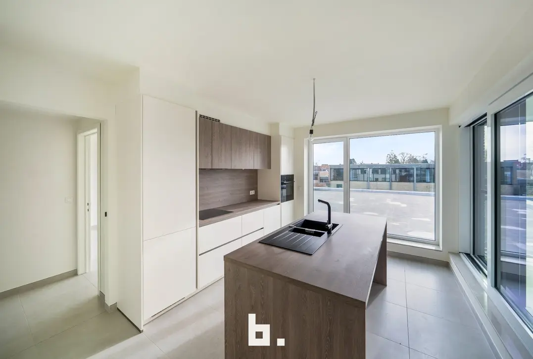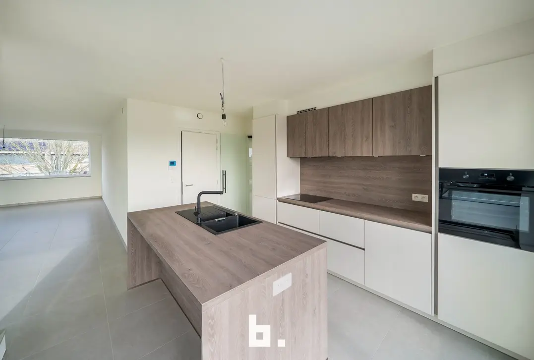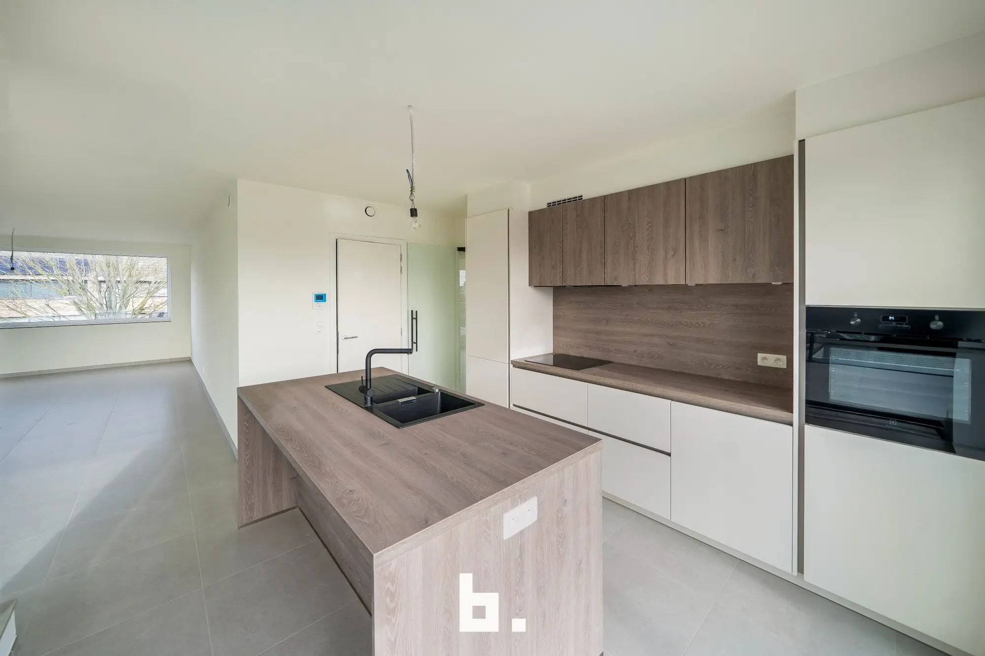 De leefruimte geeft uit op een zonnig terras met zuidwestelijke oriëntatie, ideaal om volop van de namiddag- en avondzon te genieten. De open keuken is volledig uitgerust met alle toestellen (uitgezonderd microgolf) en sluit mooi aan bij de leefruimte. Aansluitend is er een praktische berging.