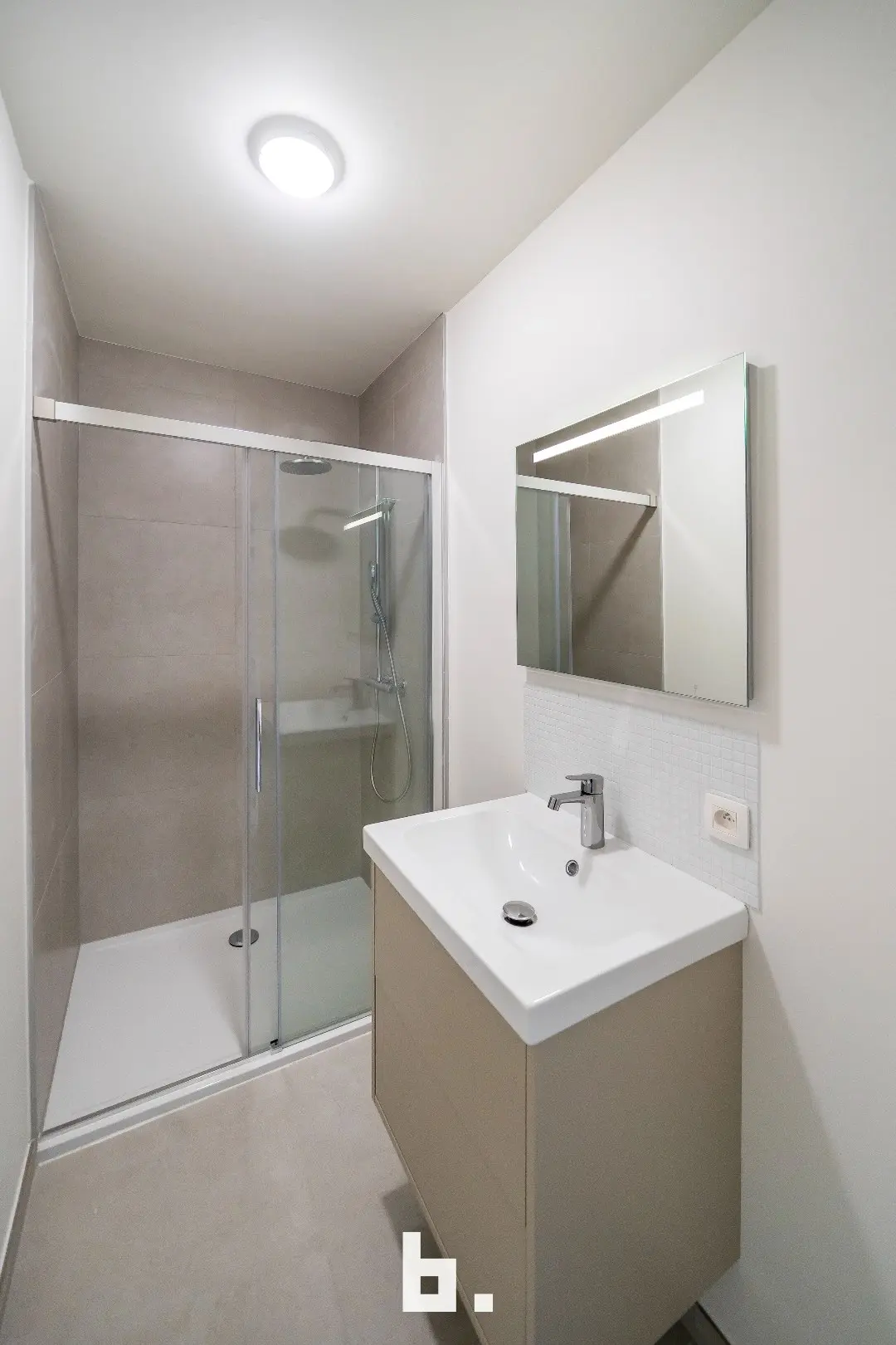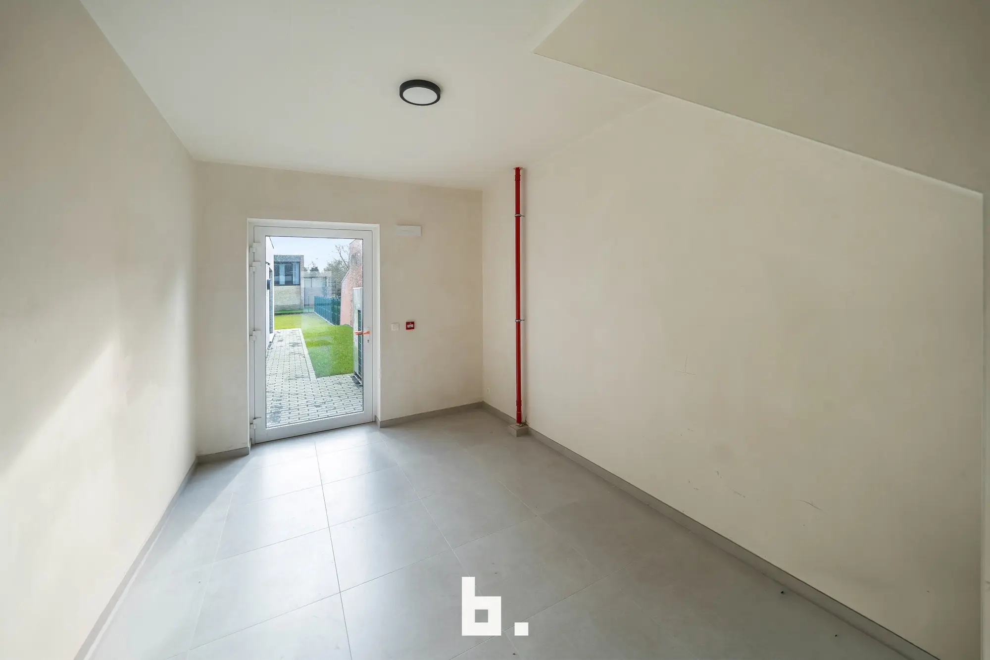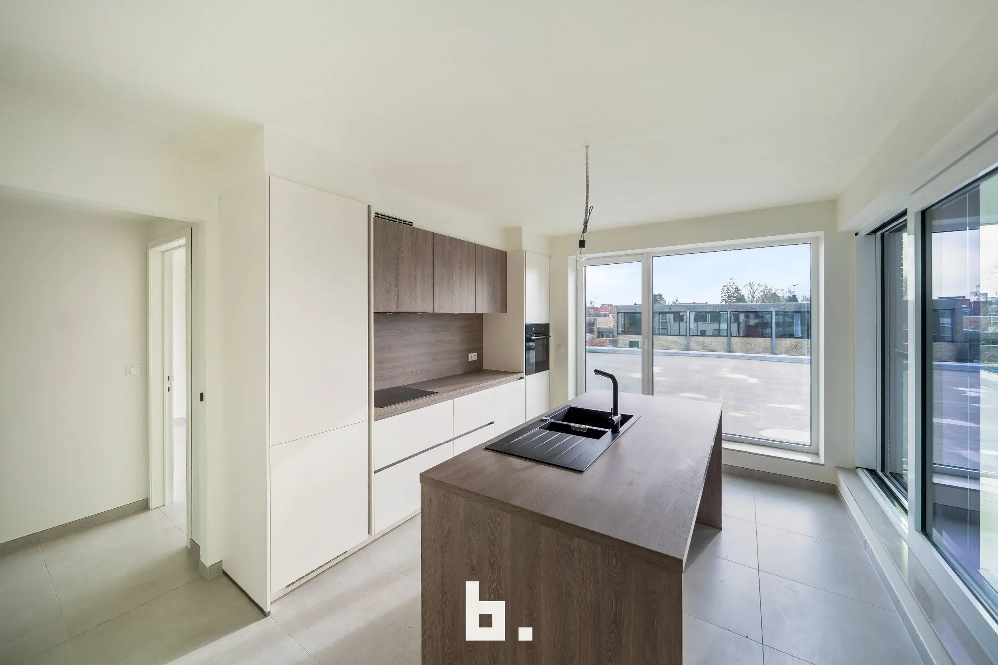 De leefruimte geeft uit op een zonnig terras met zuidwestelijke oriëntatie, ideaal om volop van de namiddag- en avondzon te genieten. De open keuken is volledig uitgerust met alle toestellen (uitgezonderd microgolf) en sluit mooi aan bij de leefruimte. Aansluitend is er een praktische berging.