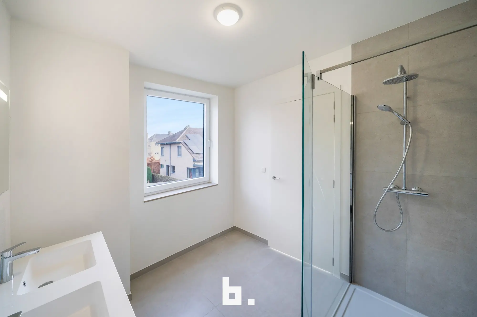 De badkamer is rechtstreeks verbonden met de masterbedroom, wat extra comfort biedt. Daarnaast zijn er twee kinderkamers en een aparte douchekamer met lavabo.