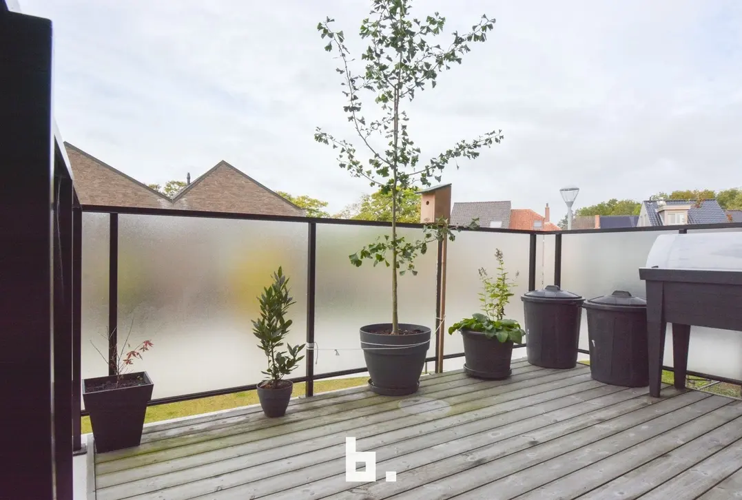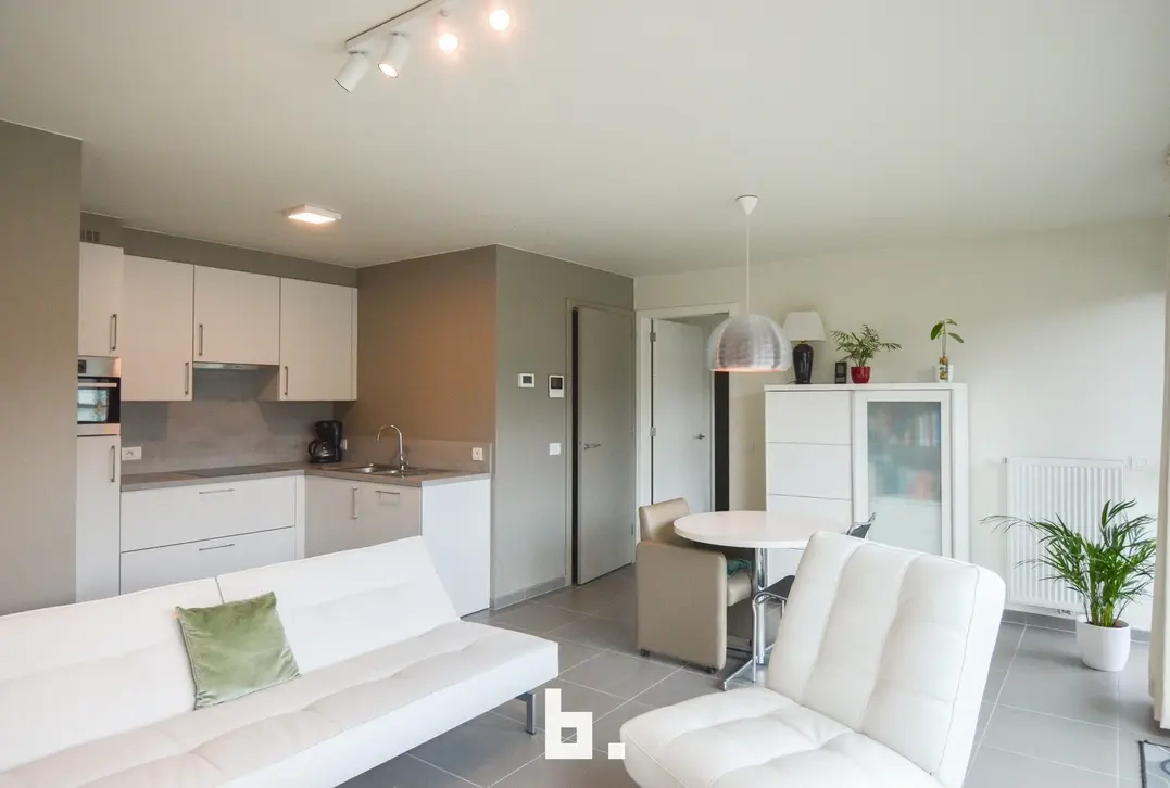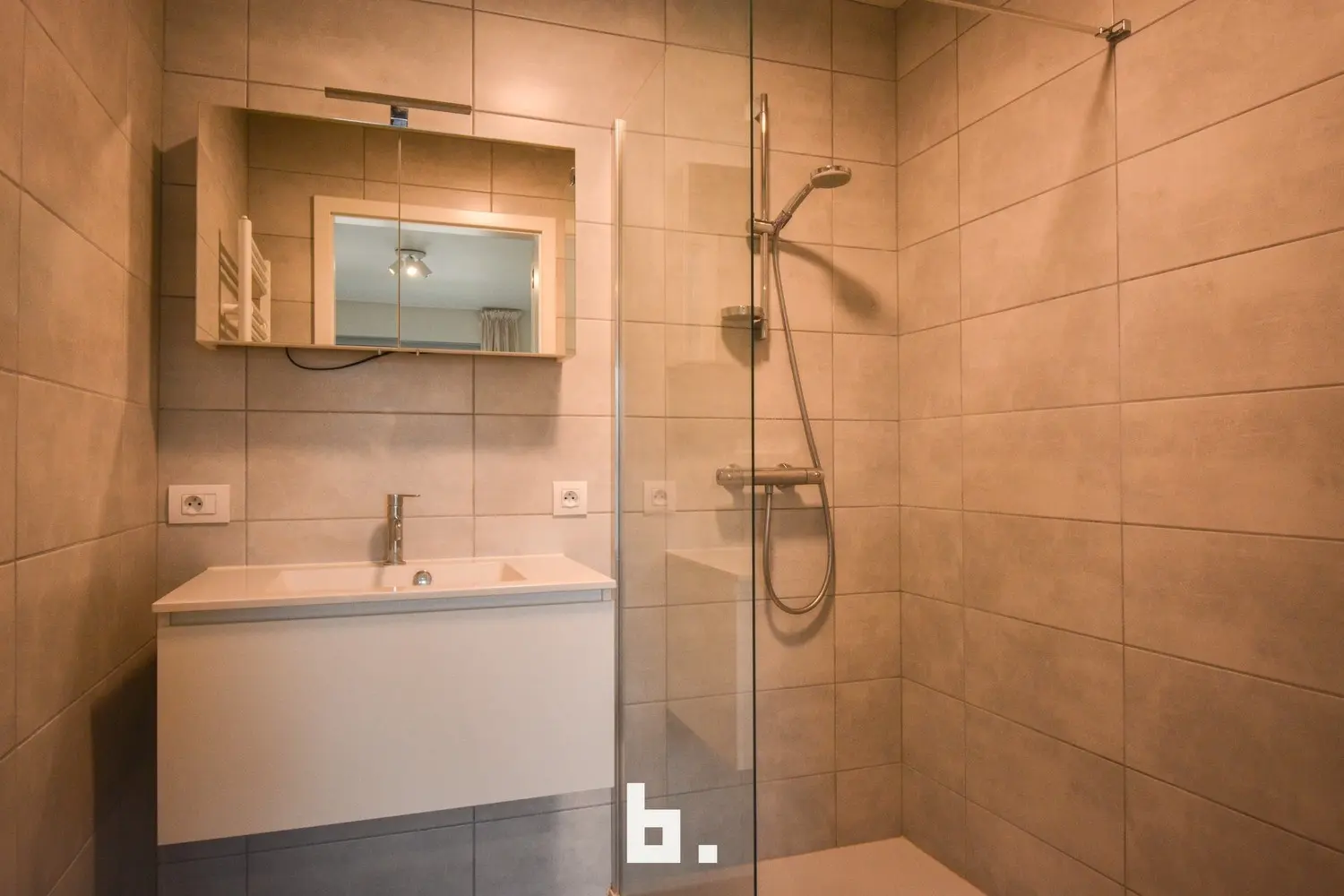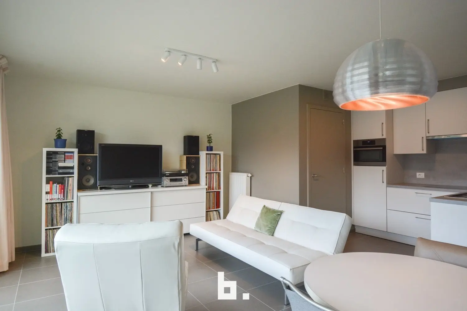 Het appartement omvat een lichtrijke woonkamer met zonnig terras, open keuken, berging, 1 ruime slaapkamer met aansluitend badkamer met lavabo en inloopdouche. Het appartement is volledig geschilderd, voorzien van verlichting en van verduisteringen!