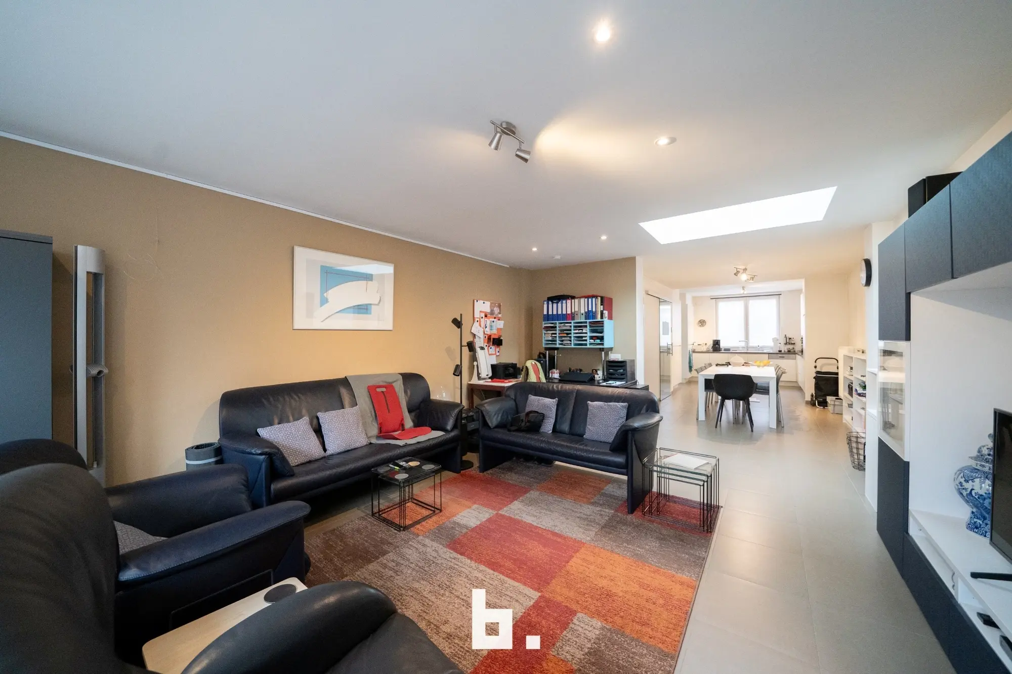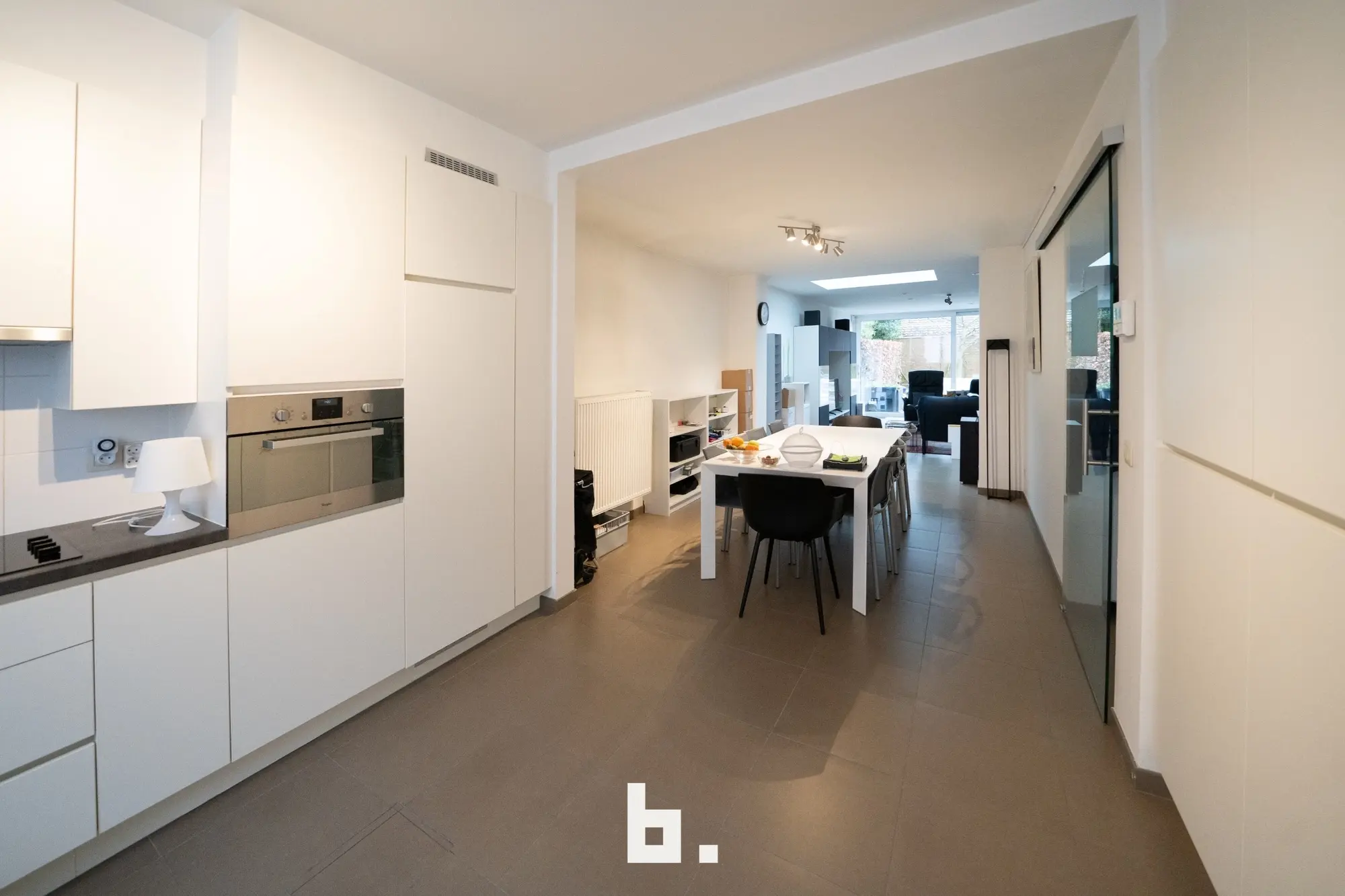 Deze instapklare gezinswoning combineert ruimte, comfort en energiezuinig wonen. Bij het binnenkomen kom je in de inkomhal. De lichtrijke leefruimte sluit mooi aan op de open, volledig ingerichte keuken, uitgerust met alle toestellen. Vanuit de leefruimte heb je toegang tot de tuin.