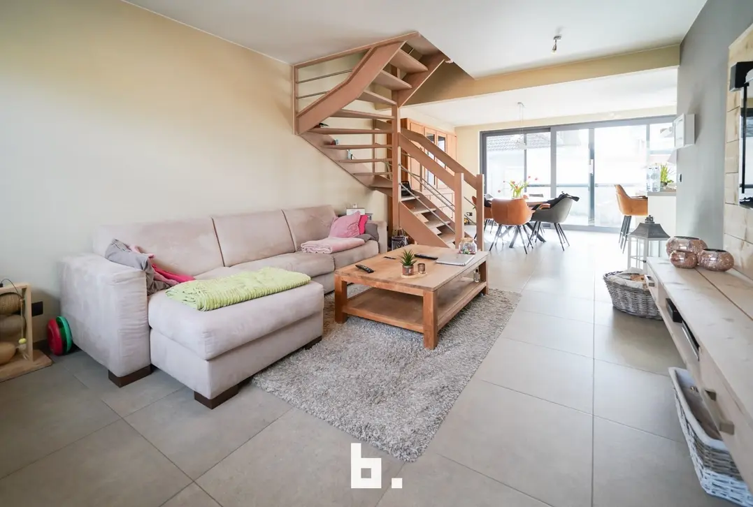 Bij het binnenkomen word je verwelkomd in een inkomhal die toegang geeft tot de lichtrijke woonkamer en aansluitende keuken. De woning beschikt verder over drie volwaardige slaapkamers, een moderne badkamer en een apart gastentoilet. Extra praktisch is de aanwezige berging, ideaal voor wasvoorzieningen.