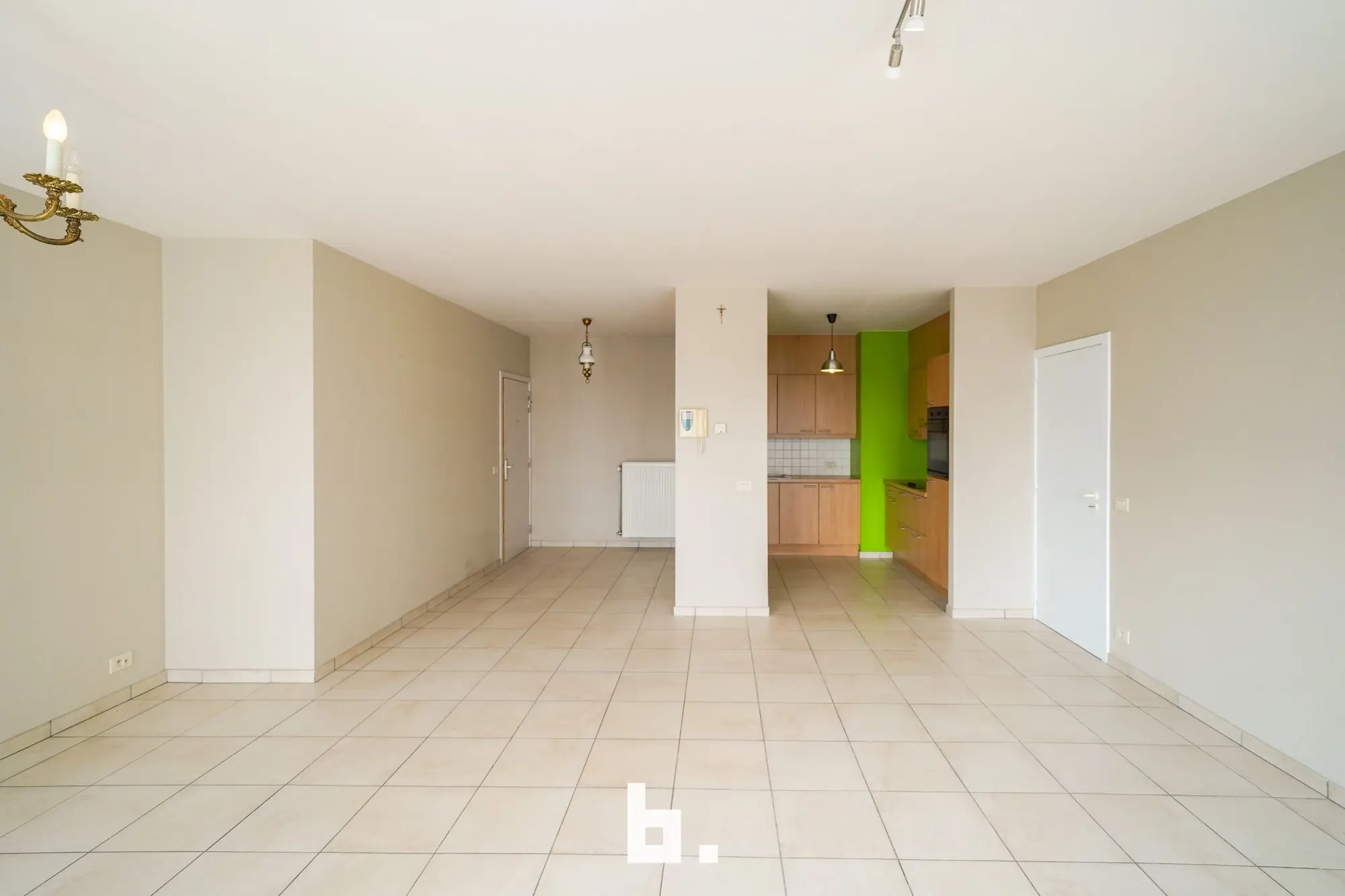 Het appartement omvat een lichtrijke grote woonkamer, praktische keuken, 2 slaapkamers, badkamer met lavabo en douche, berging met plaats voor wasmachine en gastentoilet.