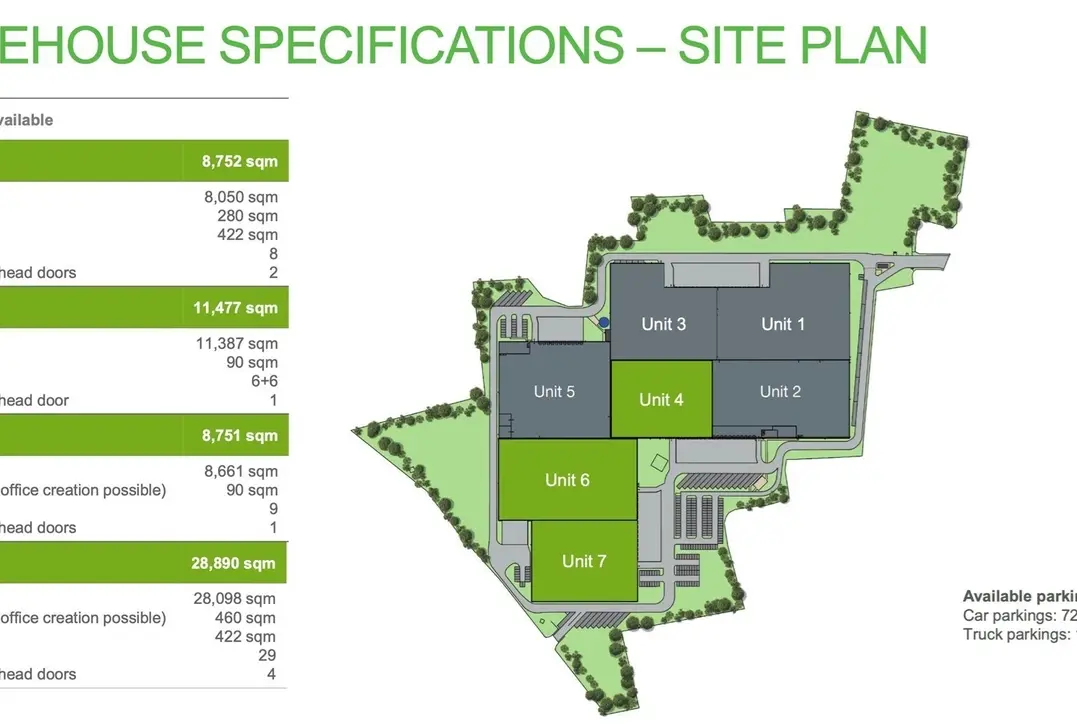 Dit magazijn is beschikbaar vanaf 8.751 m² tot 28.890 m² en heeft volgende specificaties: