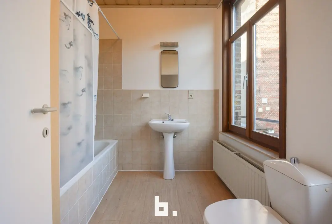 Gezellige Brugse stadswoning op een goede ligging. De woning heeft volgende indeling: een inkomhal met gastentoilet, een gezellige woonkamer, een open keuken met toegang tot de stadskoer. Op de eerste verdieping bevindt zich een eerste volwaardige slaapkamer aan de straatzijde, een badkamer met toilet, lavabo en bad met douche-mogelijkheid (met aansluiting voor wasmachine). Op de 2e verdieping bevinden zich nog 2 volwaardige slaapkamers.