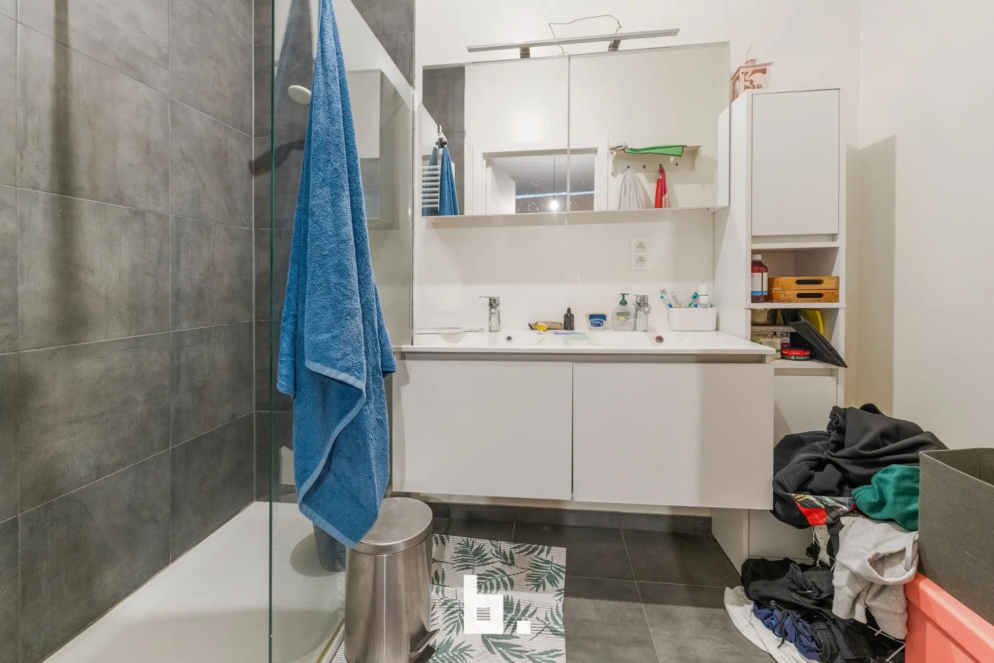 Appartement 2 (verhuurd) bestaande uit: leefruimte, keuken, slaapkamer, badkamer en balkon
