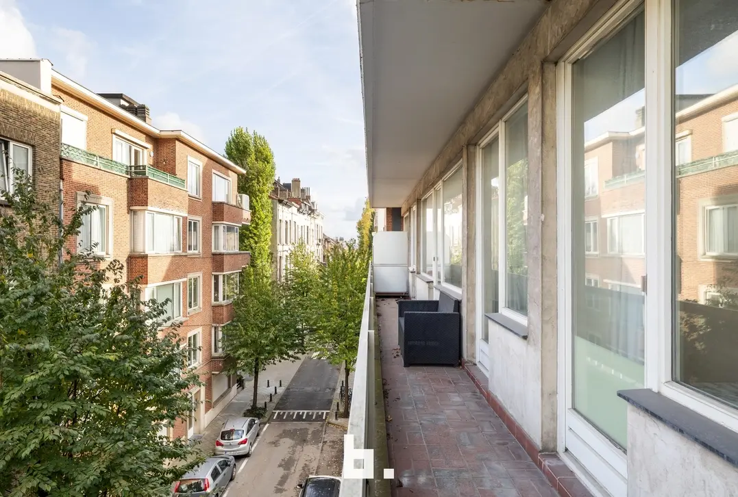 In de driehoek Fernand Cocqplein – Flagey – Avenue Louise bevindt zich dit prachtige tweekamerappartement op de derde verdieping van residentie La Parisienne te Elsene.