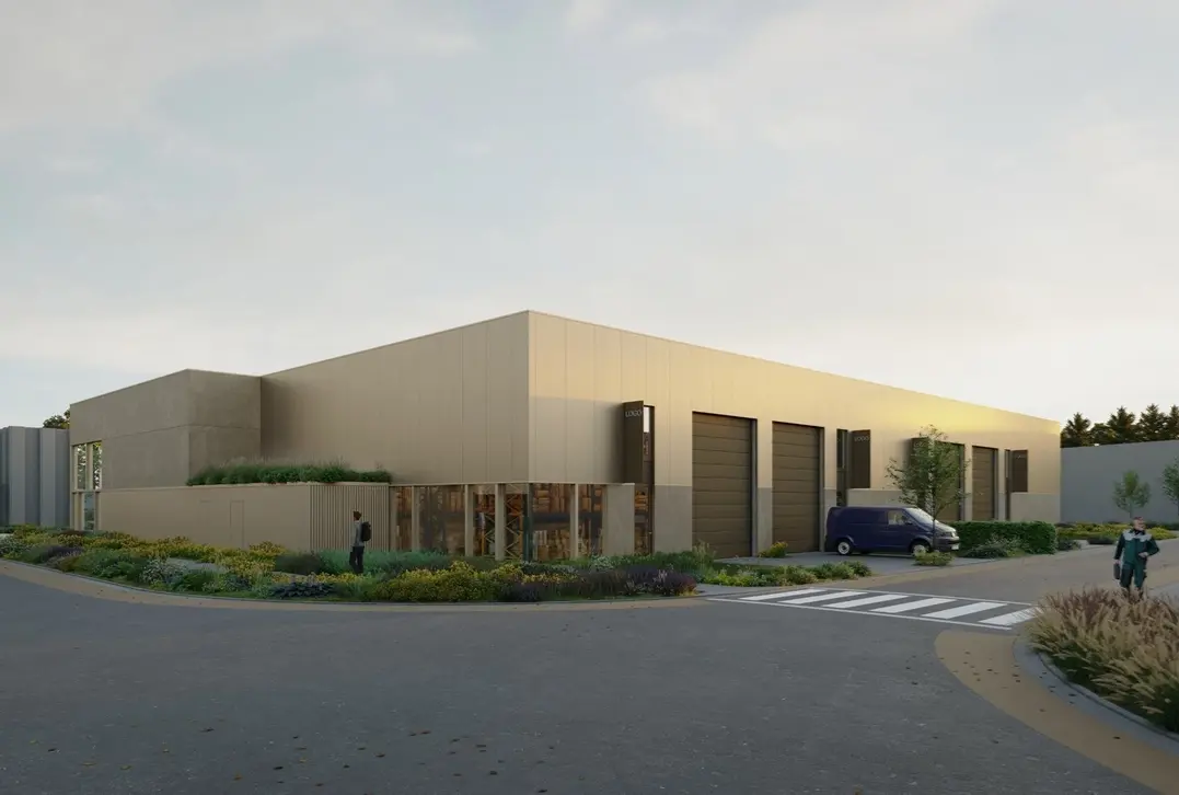 Deze KMO-ontwikkeling omvat units tussen de 180 en 288 m² en in een latere fase ook magazijnen van 1.233 tot 1.268 m². De units worden opgeleverd in Q2-Q3 2025.