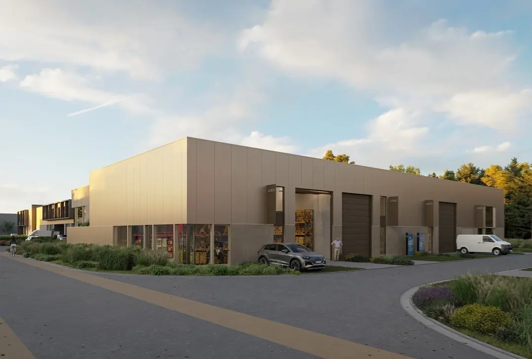 Deze KMO-ontwikkeling omvat units tussen de 180 en 288 m² en in een latere fase ook magazijnen van 1.233 tot 1.268 m². De units worden opgeleverd in Q2-Q3 2025.