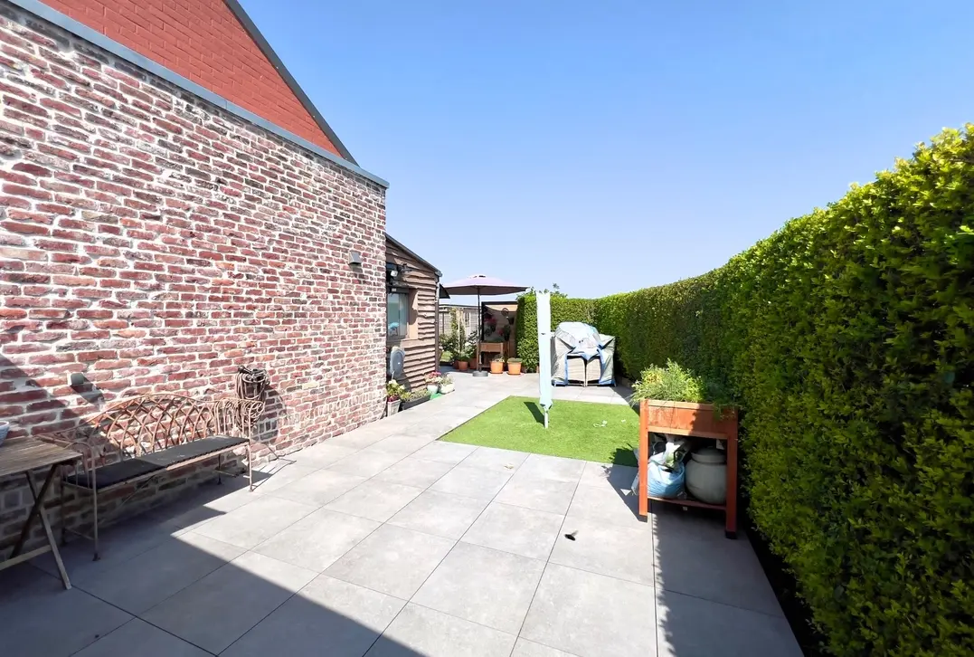 Deze gerenoveerde en volledig afgewerkte woning situeert zich in een rustige, residentiële wijk te Bredene! Goed gelegen in de nabijheid van winkels en in de directe omgeving van het openbaar vervoer. Op de gelijkvloers heeft de woning een inkomhal met gastentoilet, een lichte en luchtige leefruimte en een open ingerichte keuken. Alle toestellen zijn nieuw en er zijn ook zonnepanelen. Naast het ruim terras is er de onderhoudsvriendelijke tuin opgedeeld in 2 stukken. De tuin heeft prachtig zicht op de velden (agrarisch gebied), naast de woning hebt u een carport met een dubbele oprit en tevens een voortuin. Naast de keuken is er een berging, 1 grote slaapkamer, badkamer met een douche en een zeer ruim bad. Op de eerste verdieping bevinden zich 2 volwaardige slaapkamers en een badkamer met douche en 2 bergingen. De zolder is goed geïsoleerd en kan perfect nog verder worden ingericht als slaapkamer of thuiskantoor of speelkamer. Zoek je een ruime woning zonder werk en rustig gelegen, zoek dan niet verder.