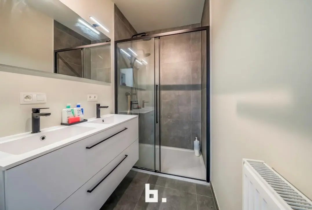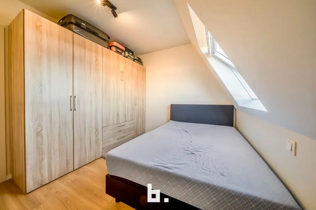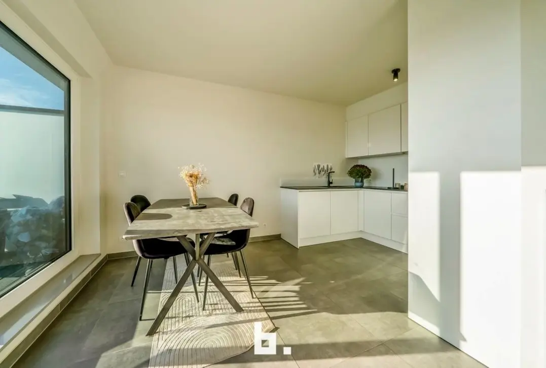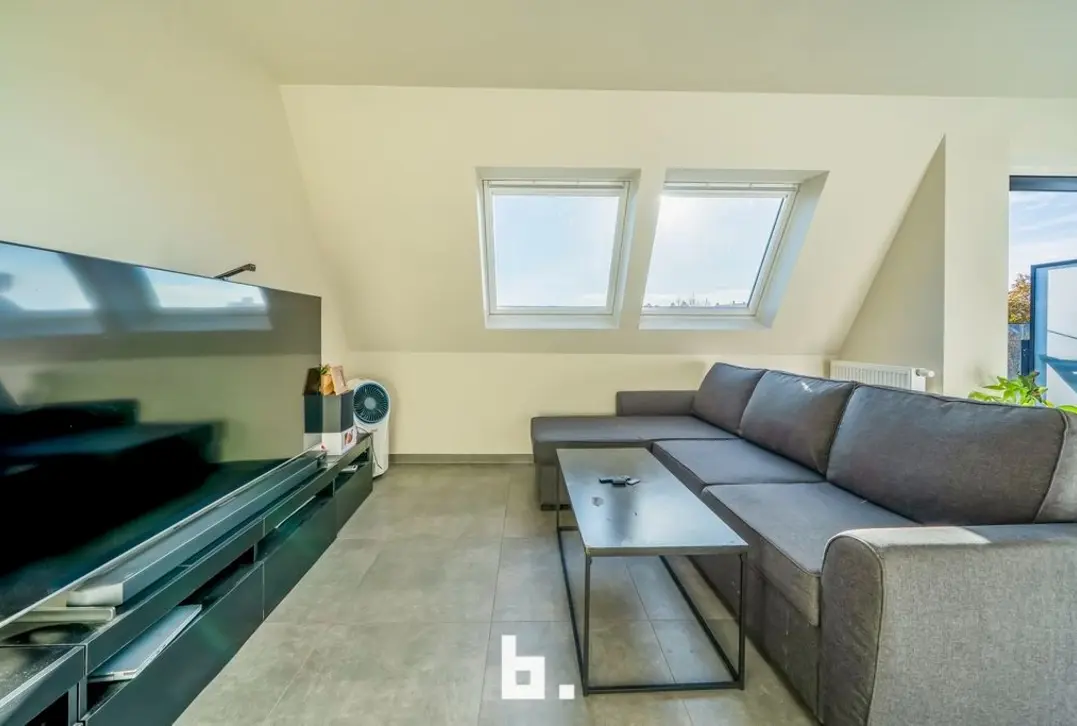 Dit energieneutrale appartement biedt alles wat nodig is om uiterst comfortabel te wonen. Het appartement is gelegen in residentie 'Marie-Thérèse , een prachtig nieuwbouwproject (2023). Dit dak appartement appartement bevindt zich op een rustige doch centrale ligging in de buurt van supermarkten, lokale handelszaken en winkelketens, scholen, bushalte, station, Expresweg ...De indeling is als volgt: inkomhal met gastentoilet, leefruimte voorzien van ingerichte keuken (inductiekookplaat, dampkap, oven, koelkast, diepvries, spoelbak, vaatwasser), berging (aansluiting wasmachine/droogkast), 2 slaapkamers, badkamer (inloopdouche, wastafelmeubel). Terras vooraan. Ruime garage inbegrepen. Extra troeven: - Topligging - Energiezuinig - instapklaar