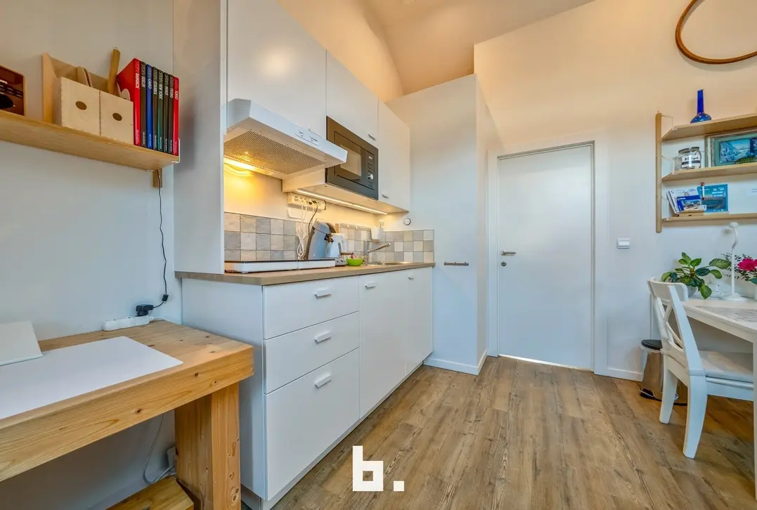 2de verdieping: lichtrijke kamer/studio met slaapgedeelte, kitchenette en aparte