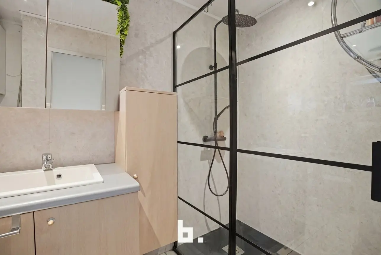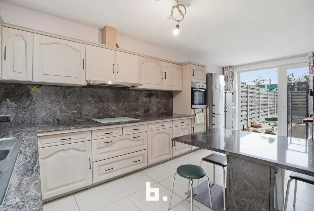 Binnen komt u terecht in een lichtrijke leefruimte, aansluitend op de volledig uitgeruste kwaliteitskeuken die drie jaar geleden nog werd vernieuwd — ideaal voor wie graag kookt en gezellig samen tafelt. Het plat dak werd recent volledig vernieuwd en voorzien van dubbele isolatie.