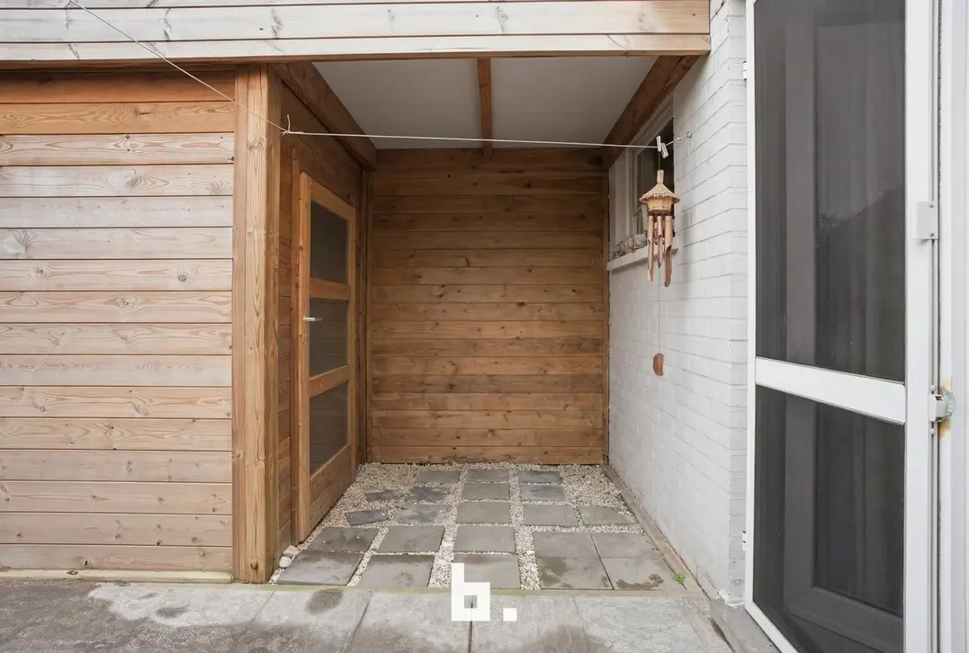 Buiten geniet u van een aangenaam terras en een onderhoudsvriendelijke tuin met praktisch tuinhuis.