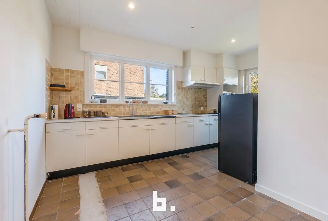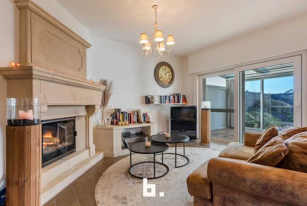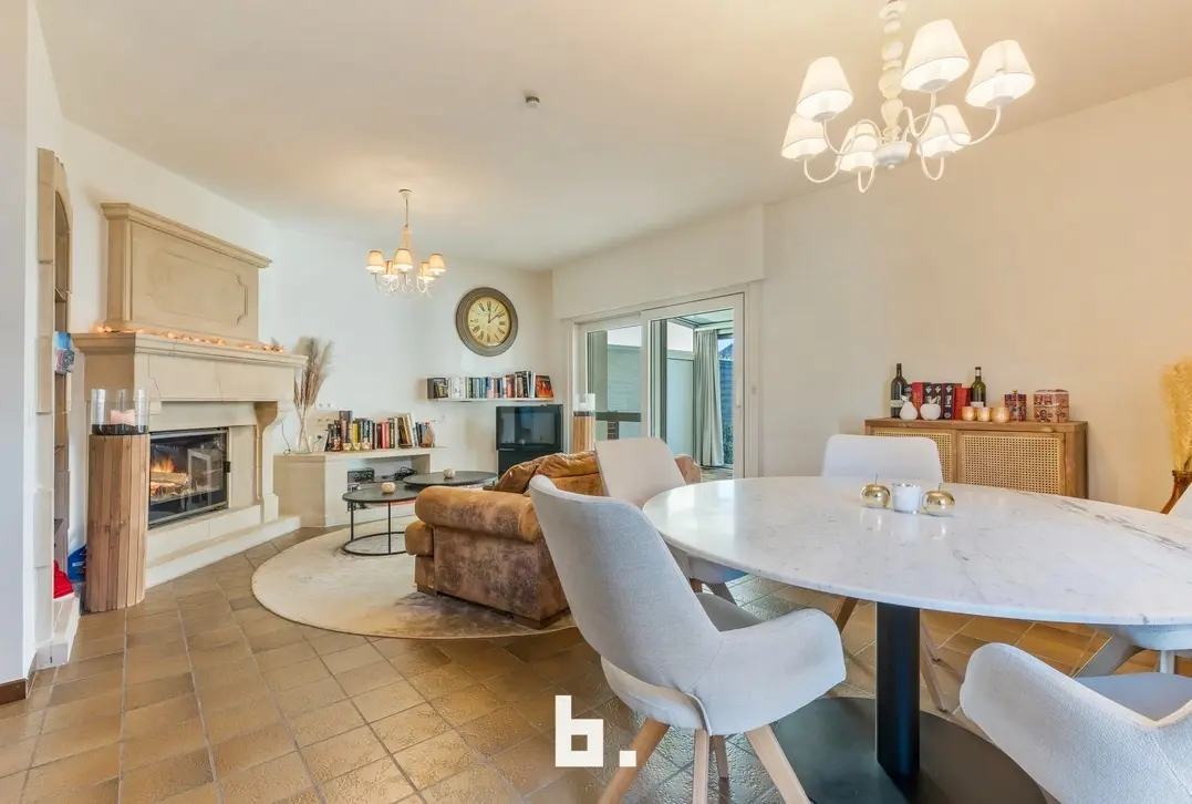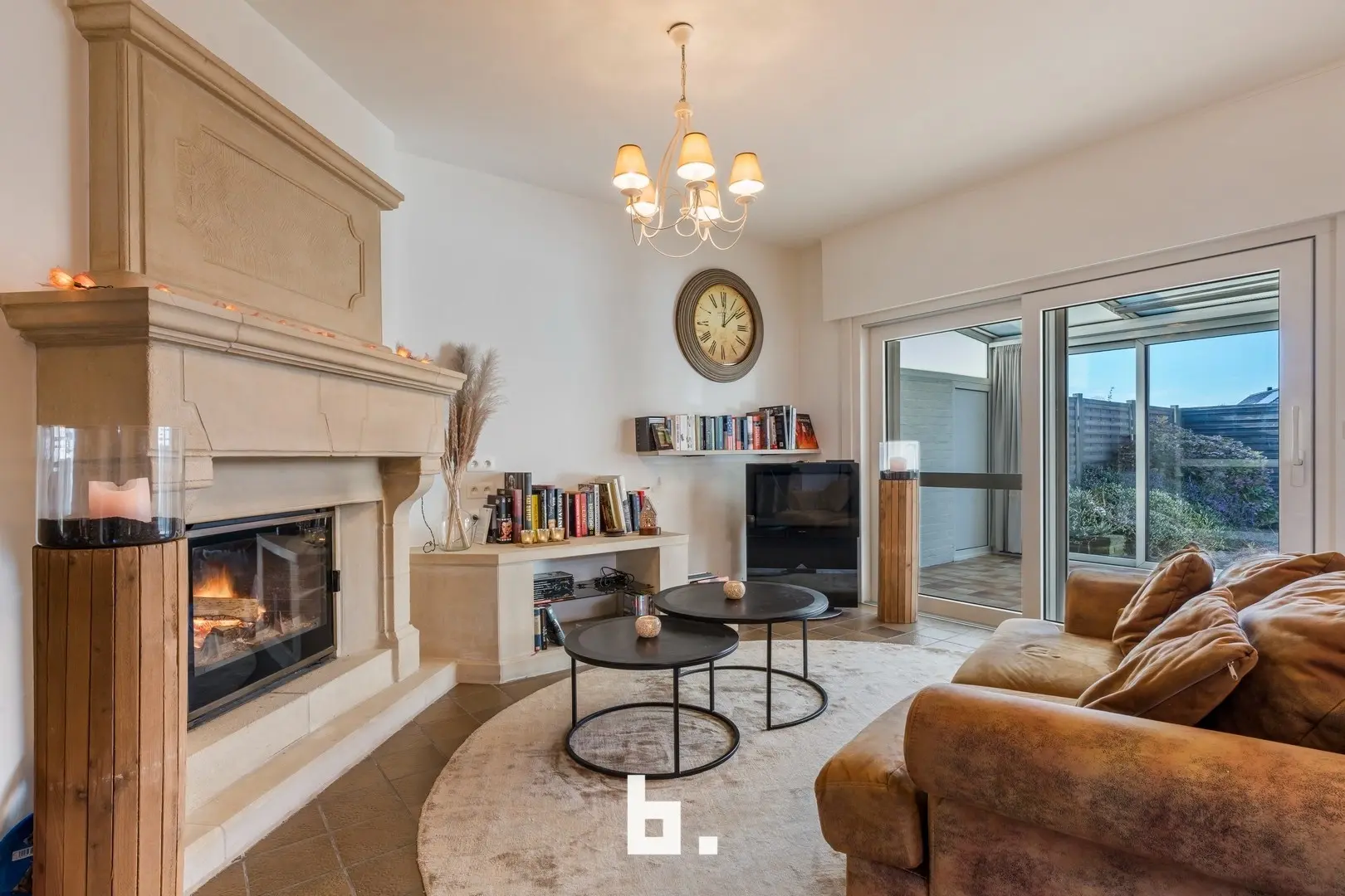 Een ruime inkomhal met apart gastentoilet leidt naar de lichtrijke keuken met veel lichtinval. Aansluitend bevindt zich de gezellige leefruimte, voorzien van een open haard met authentieke schouw. Hiernaast ligt de grote, lichtrijke veranda met directe toegang tot de tuin en de inpandige garage. Verder is er op het gelijkvloers nog een berging aanwezig.
