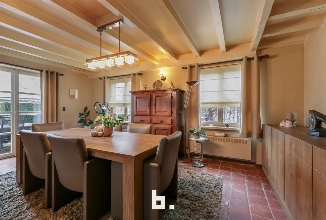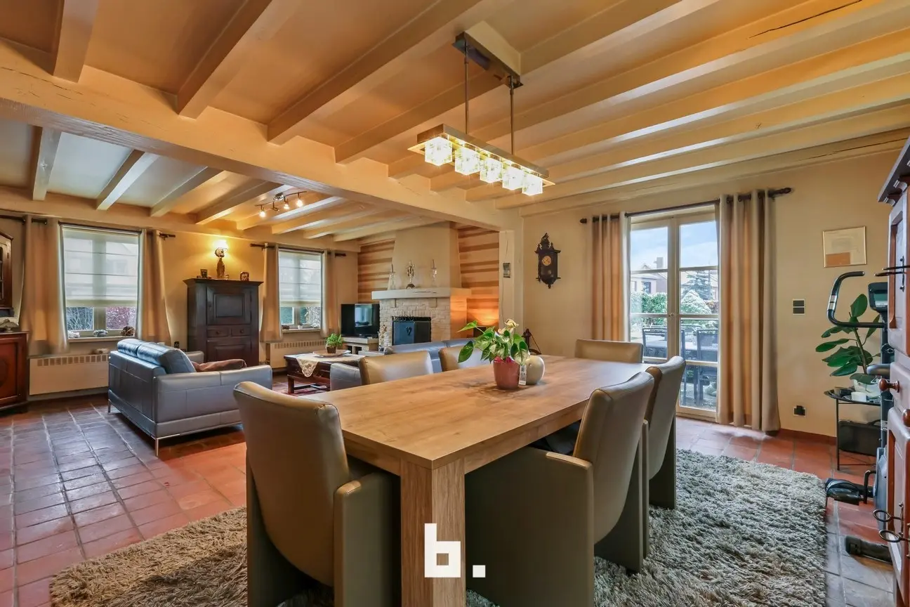 Indeling: Je wordt verwelkomd in een riante inkomhal met bureau en gastentoilet. De grote, open leefruimte baadt in het licht en biedt een aparte eet- en zithoek, sfeervol afgewerkt met een knetterende open haard.