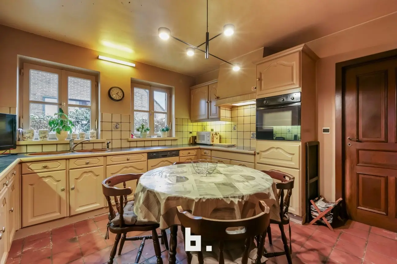 De aparte keuken heeft aansluitend een praktische berging, toegang tot de koele kelder én een ruime garage met extra bergruimte. Vanuit de leefruimtes geniet je van een mooi zicht op de perfect onderhouden tuin.