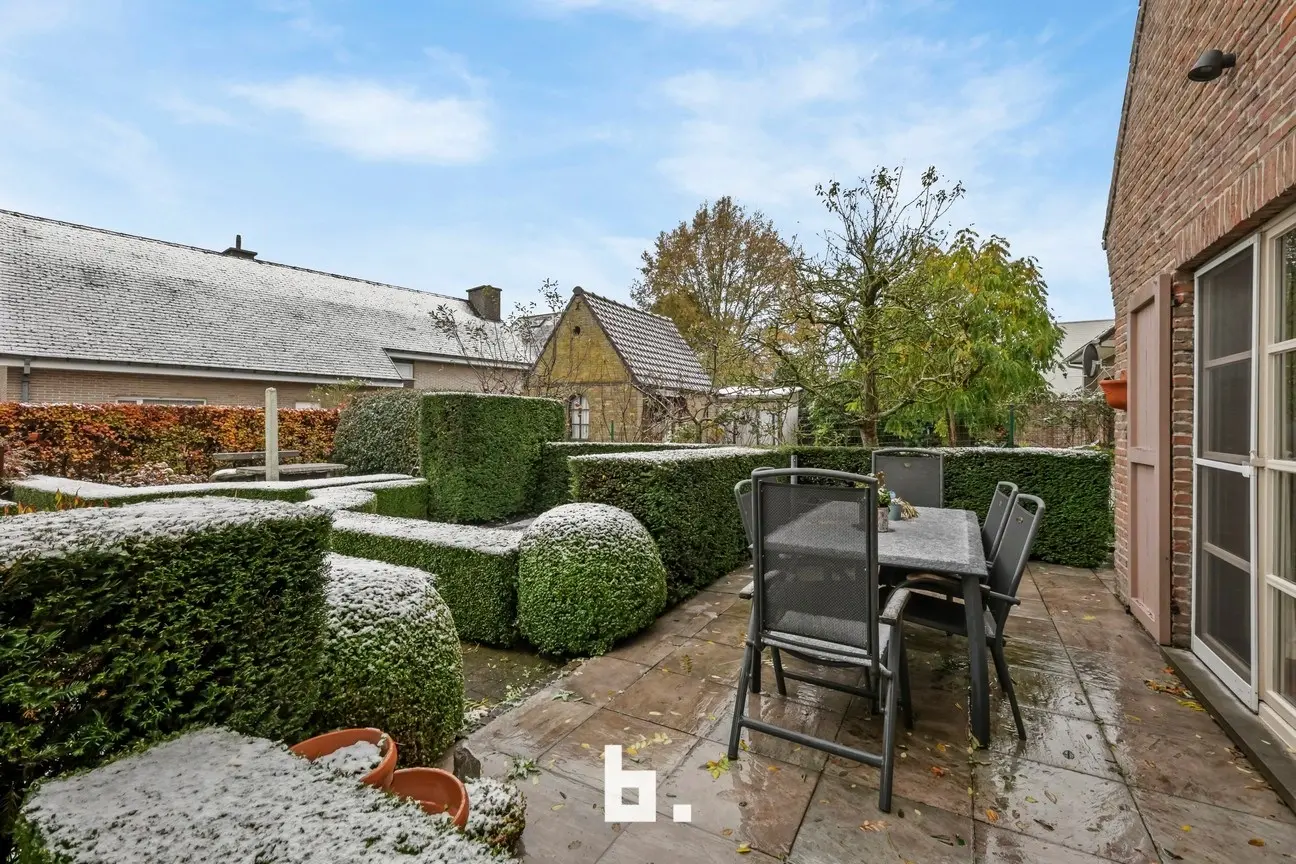 Met zicht op het terras en de onderhoudsvriendelijke tuin is het hier zalig vertoeven — winter én zomer.