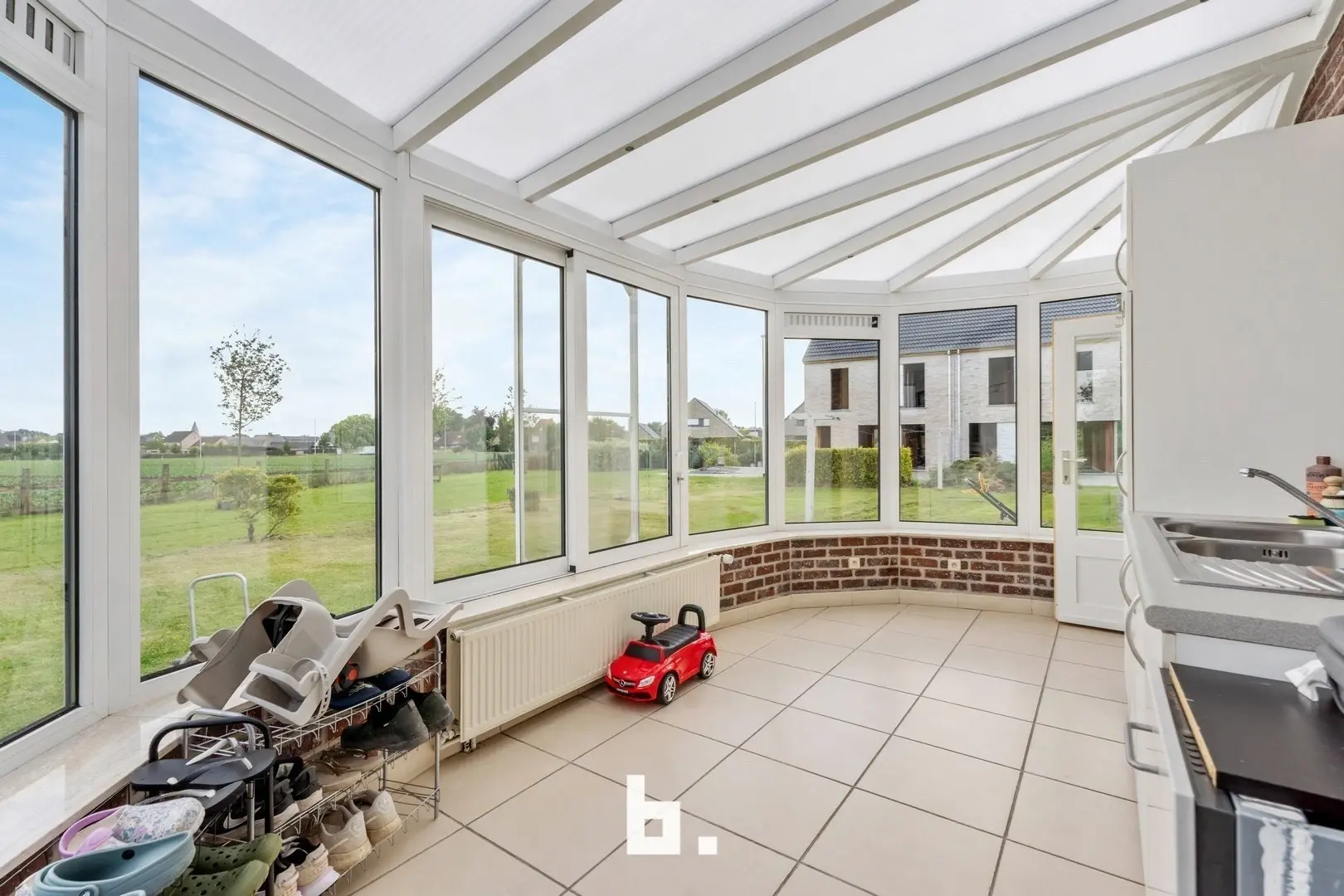 Op het gelijkvloers komen we binnen in de inkomhal van waaruit u naar elk deel in de woning kan, die bestaat uit: leefruimte, ruime keuken met aansluitend veranda, berging, 4 slaapkamers, washok, badkamer