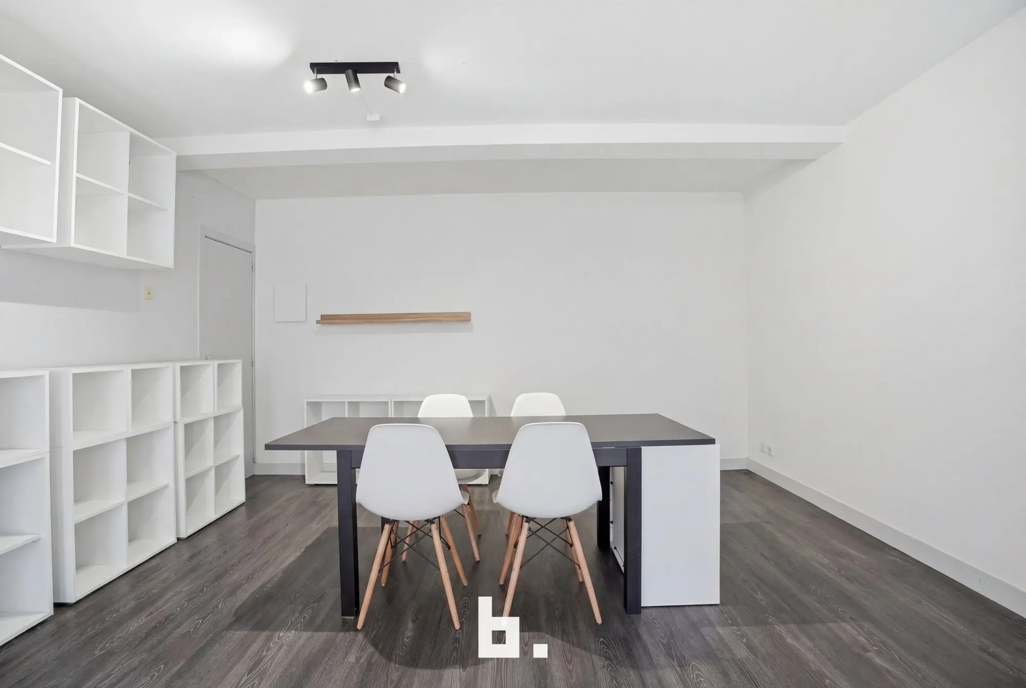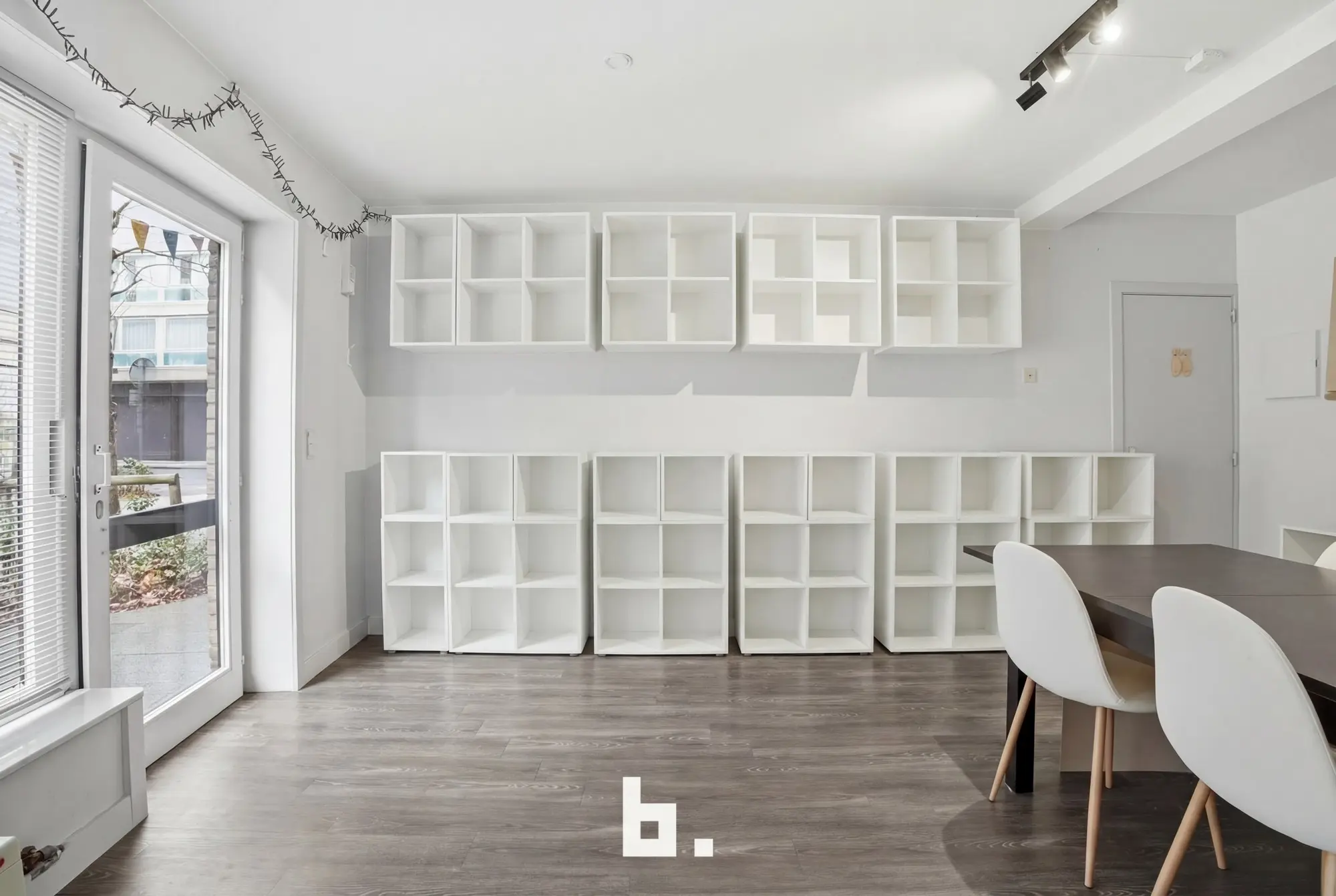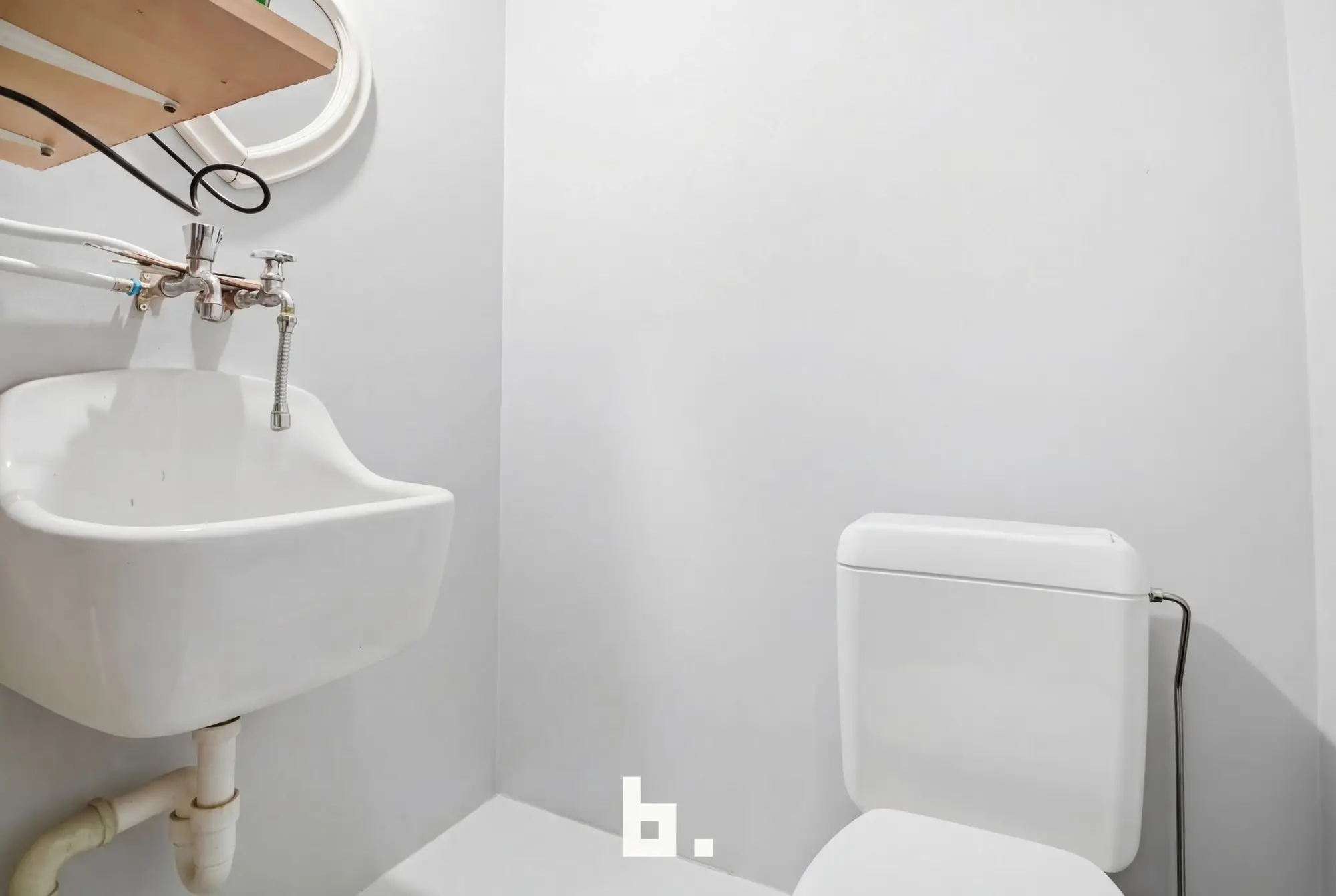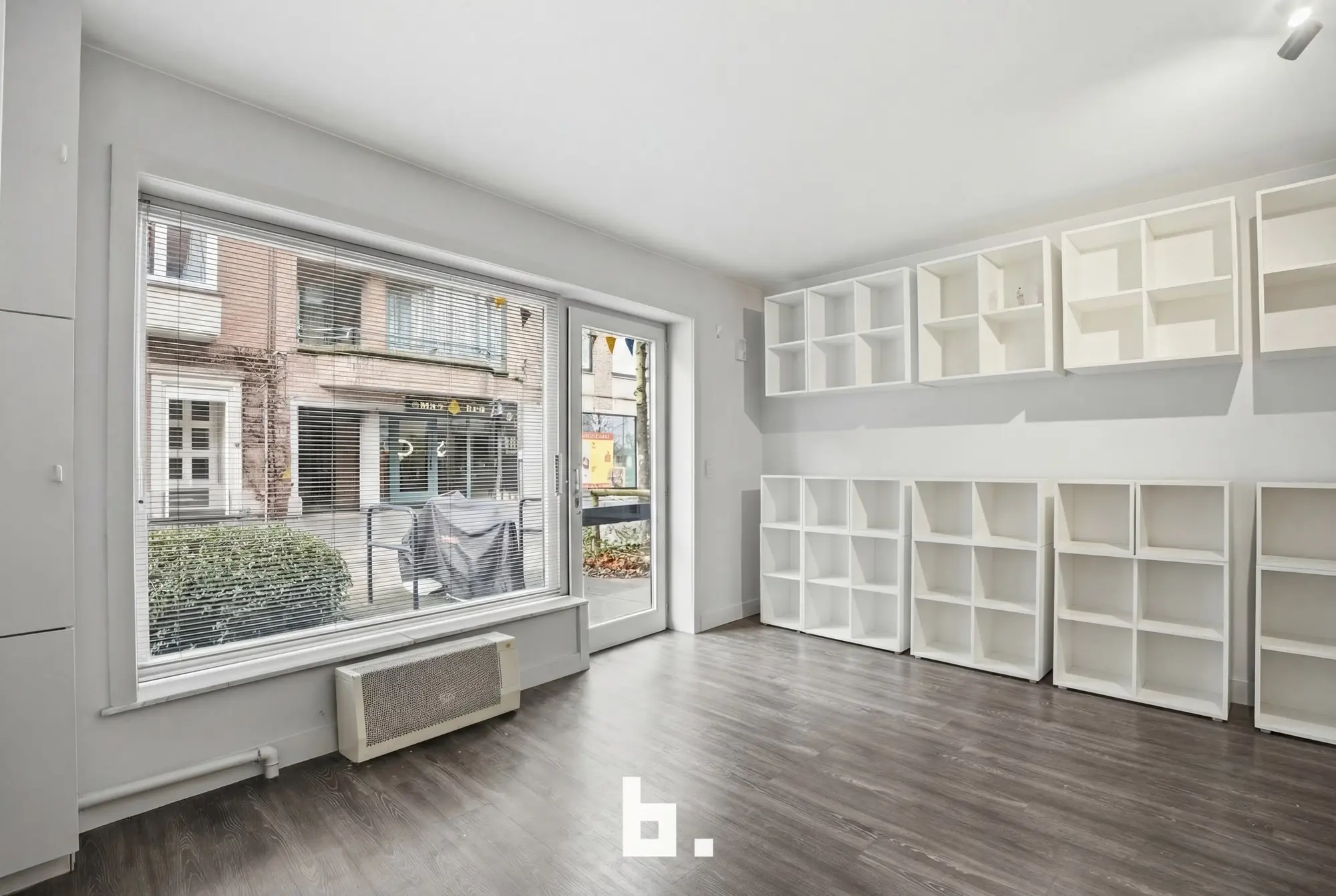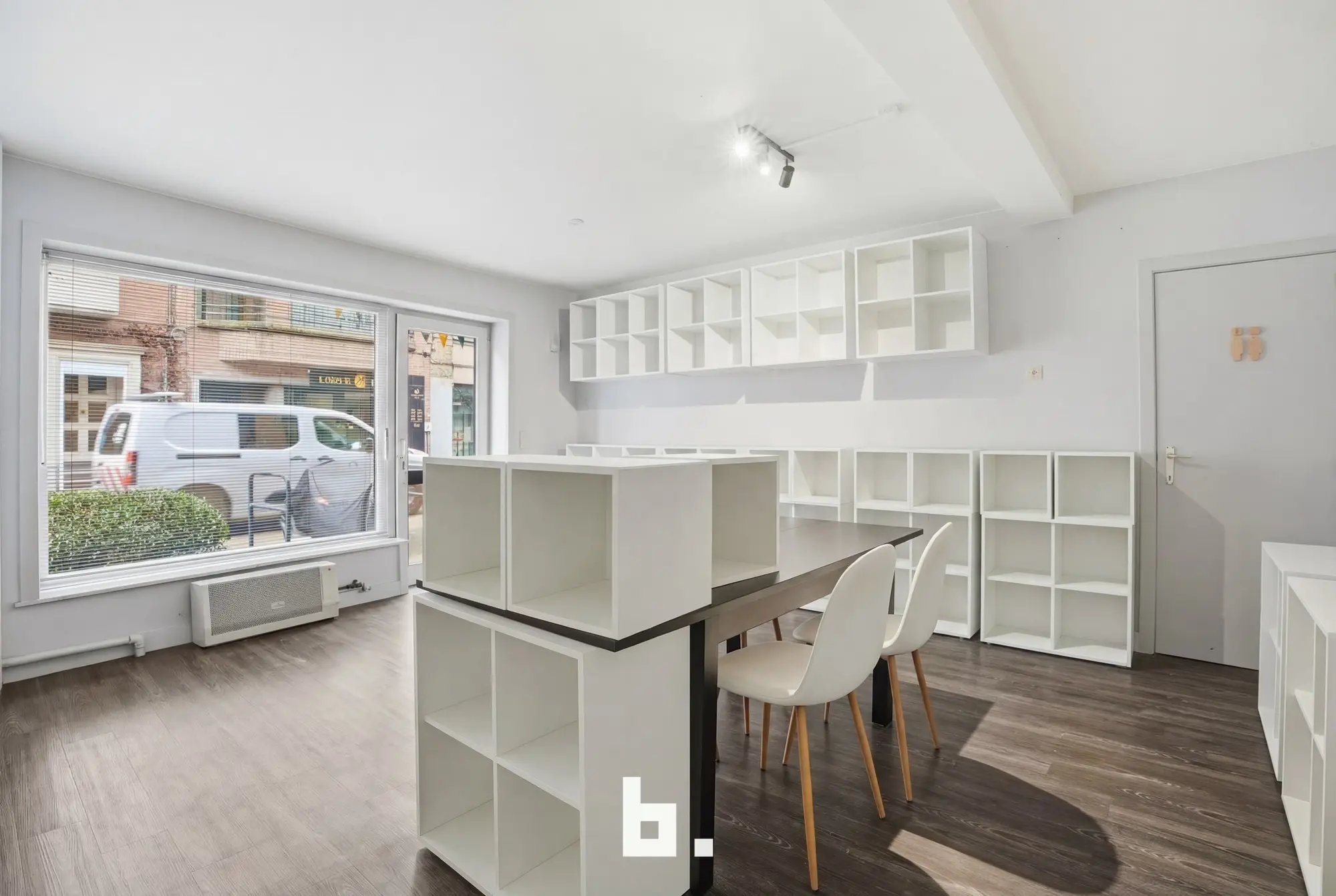 Binnenin vindt u een verzorgde handelsruimte van 28 m², afgewerkt met een stijlvolle laminaatvloer en strak wit geschilderde muren — een neutrale en moderne basis die zich perfect leent voor diverse commerciële activiteiten. Daarnaast is er een apart toilet met lavabo voorzien in de ruimte, wat extra comfort biedt.