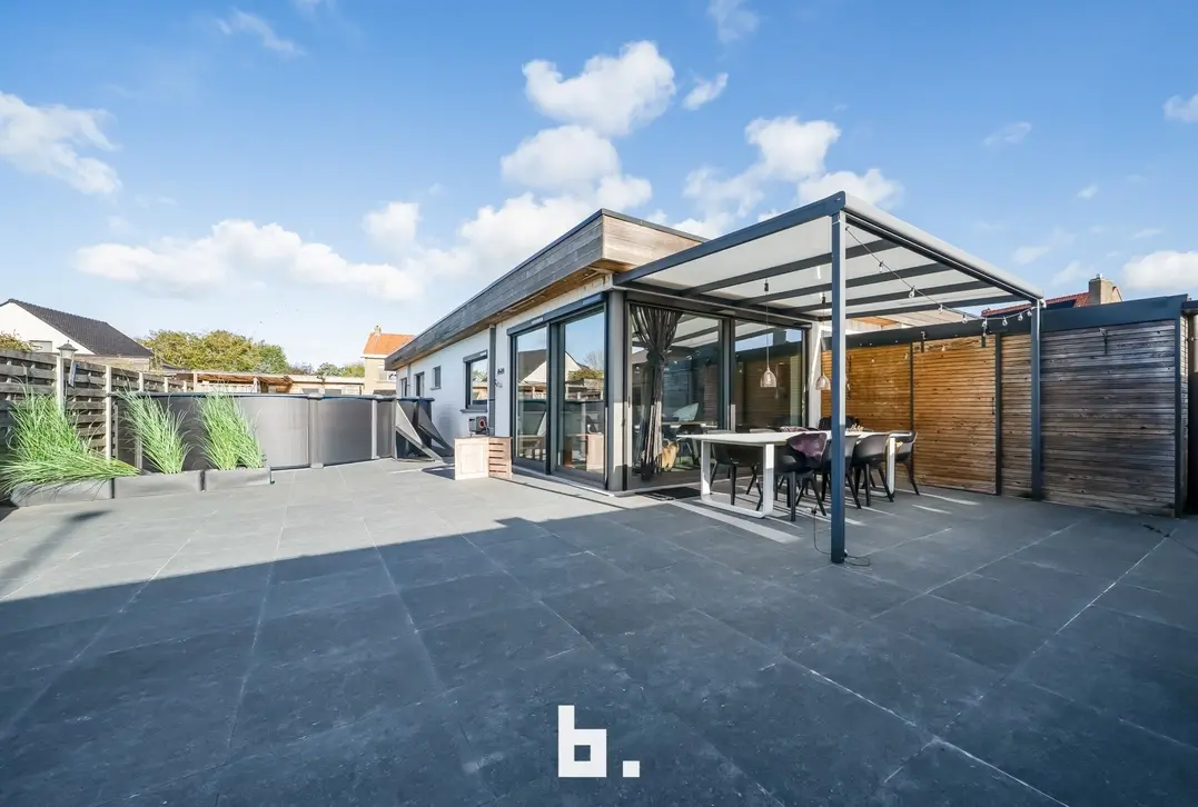 Deze volledig gerenoveerde laagbouw villa is gelegen in het rustige Dudzele op enkele kilometers van het stadscentrum van het mooie Brugge. De villa werd reeds volledig aangepakt van kop tot teen en beschikt maar liefst over 28 zonnepanelen. De woning zelf beschikt over 4 slaapkamers en 2 badkamers met dressing. De grote open keuken met zicht op de tuin en leefruimte zijn hier dan ook een grote troef. Tevens beschikt de villa over een overdekte garage met stockeerruimte. De woning is tot in de puntjes afgewerkt en hierbij is er ook geopteerd voor vloerverwarming doorgeen de woning. Kortom een unieke woonst met veel buitenruimte en hoogwaardige afwerking in een rustige buurt. U kunt zich inschrijven voor het algemeen kijkmoment op zaterdag 8 november van 10u tot 13u via Bricx.be