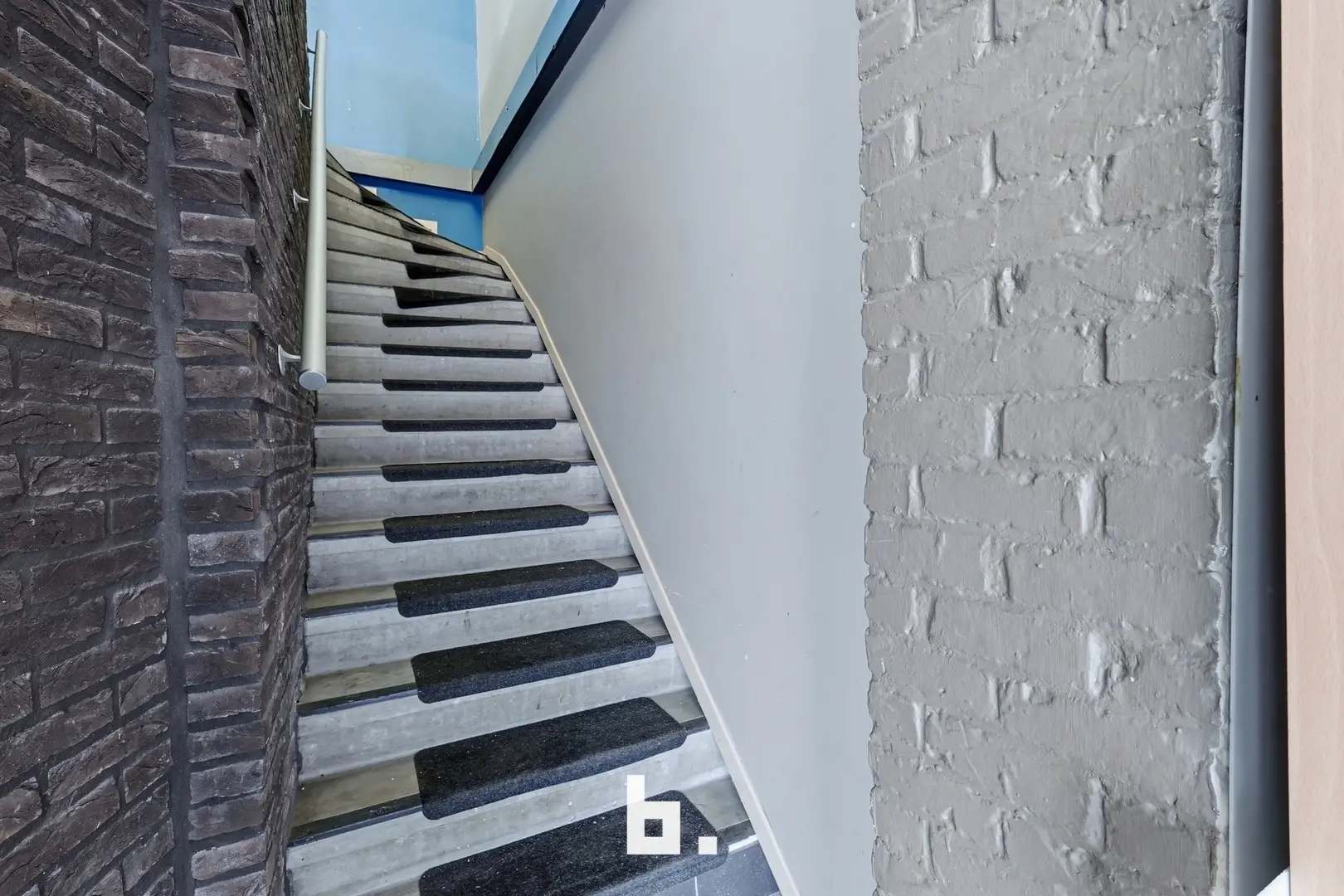 Bij aankomst beschikt u over een private overdekte parkeerplaats op het gelijkvloers. Via een aparte toegang en betonnen trap bereikt u het appartement op de eerste verdieping. Hier wordt u meteen verrast door de uitzonderlijk ruime en lichtrijke leefruimte met open keuken (61 m²). De open indeling en hoge plafonds zorgen voor een echte loftfeeling en een aangename woonbeleving.