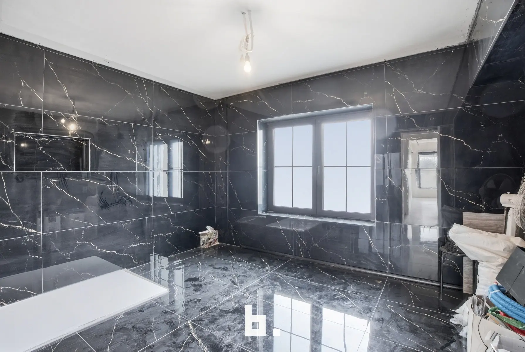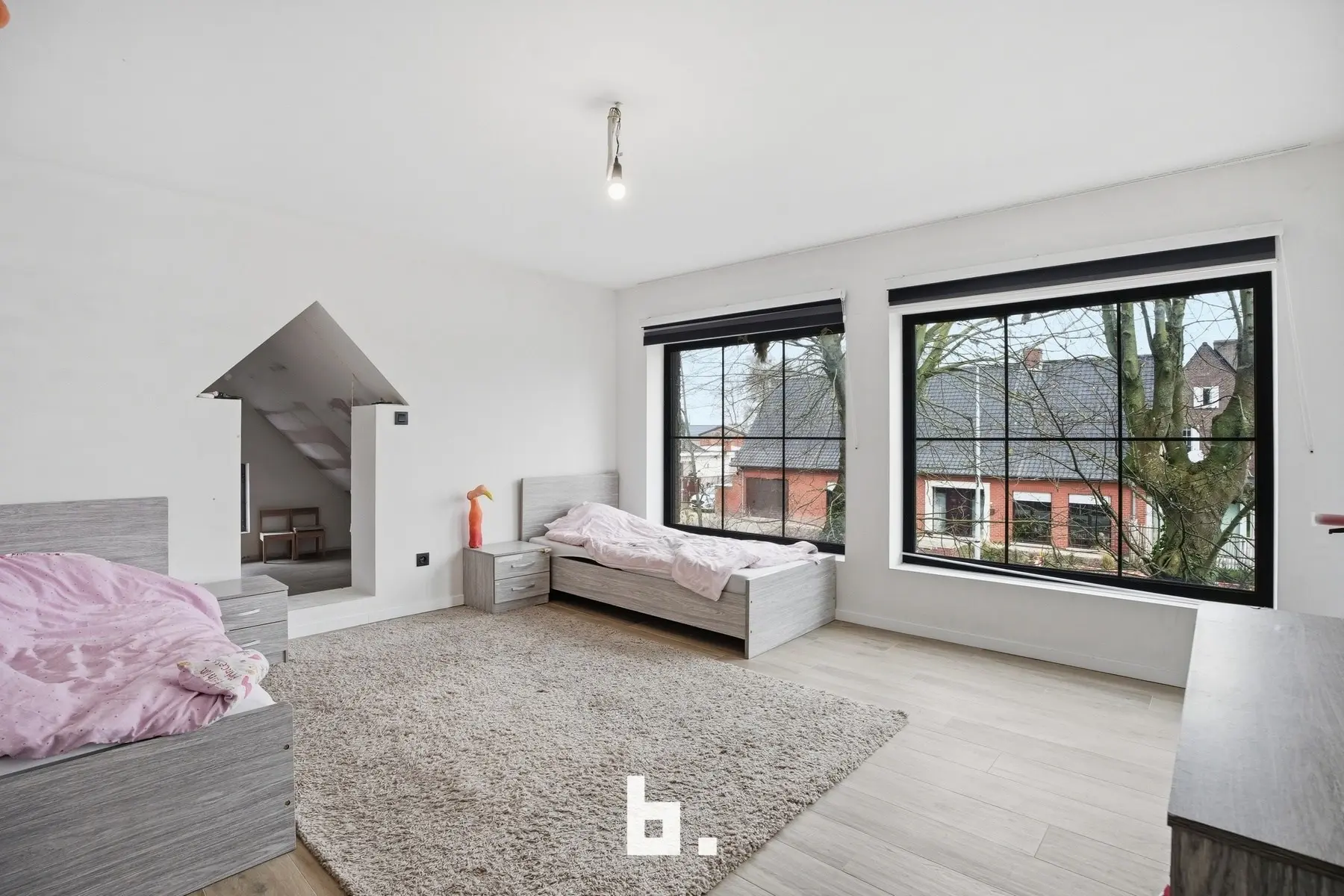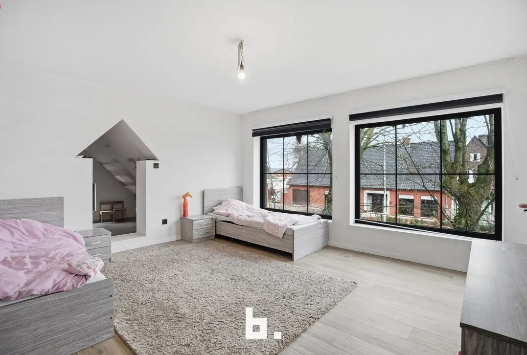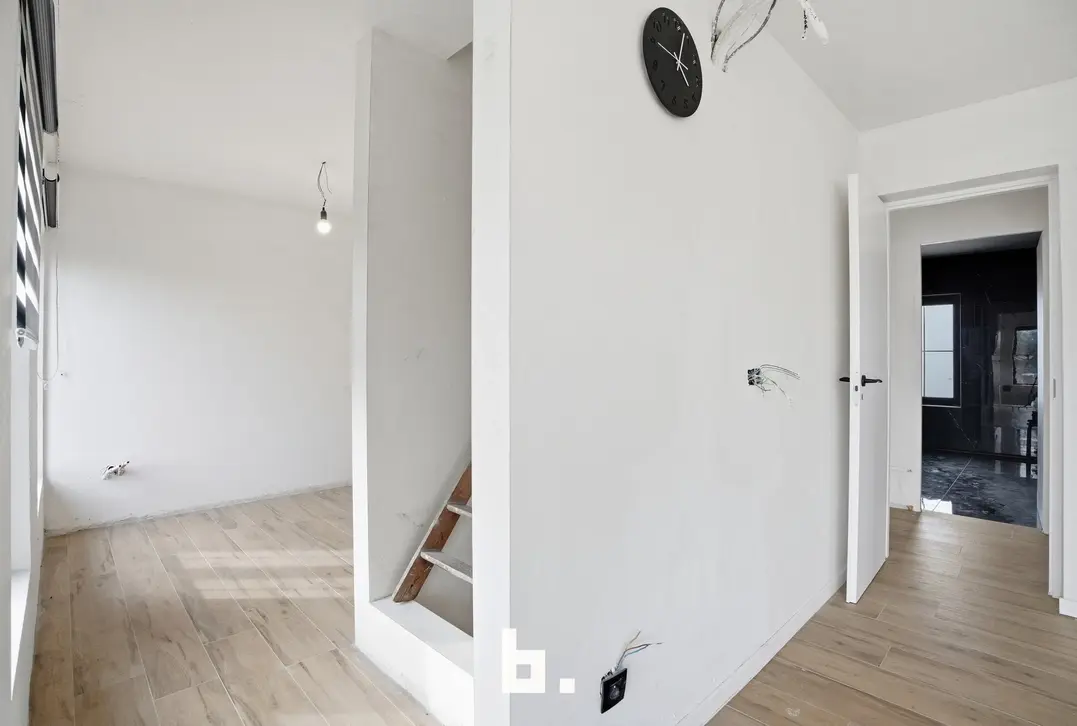 Op de bovenverdieping bevinden zich vier volwaardige slaapkamers, met de mogelijkheid tot dressing of extra bureau, en een ruime af te werken badkamer. De grote, geïsoleerde zolder biedt bijkomende mogelijkheden.