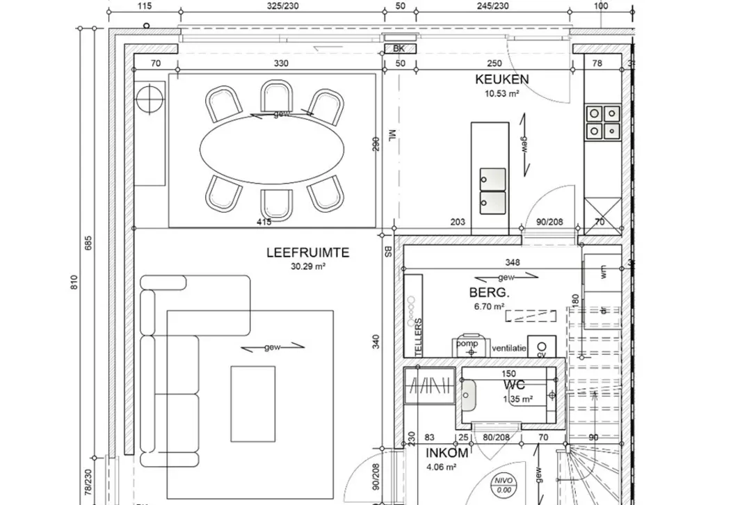 - Een lichtrijke leefruimte met open keuken