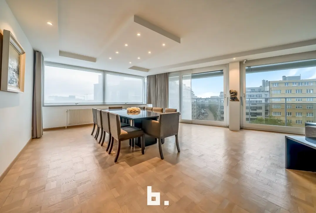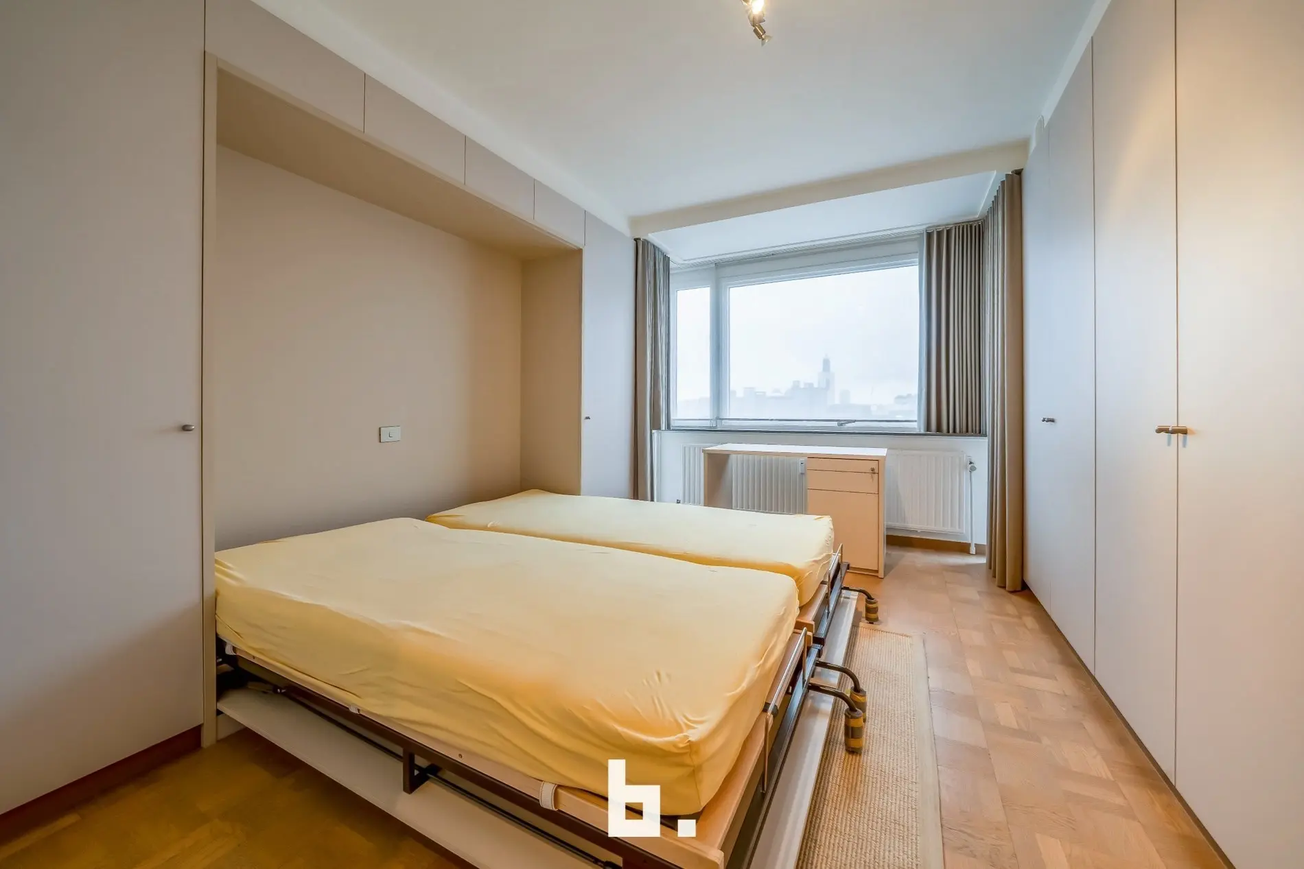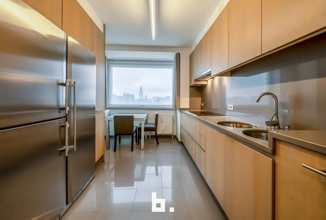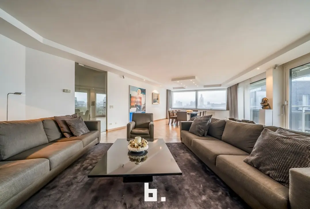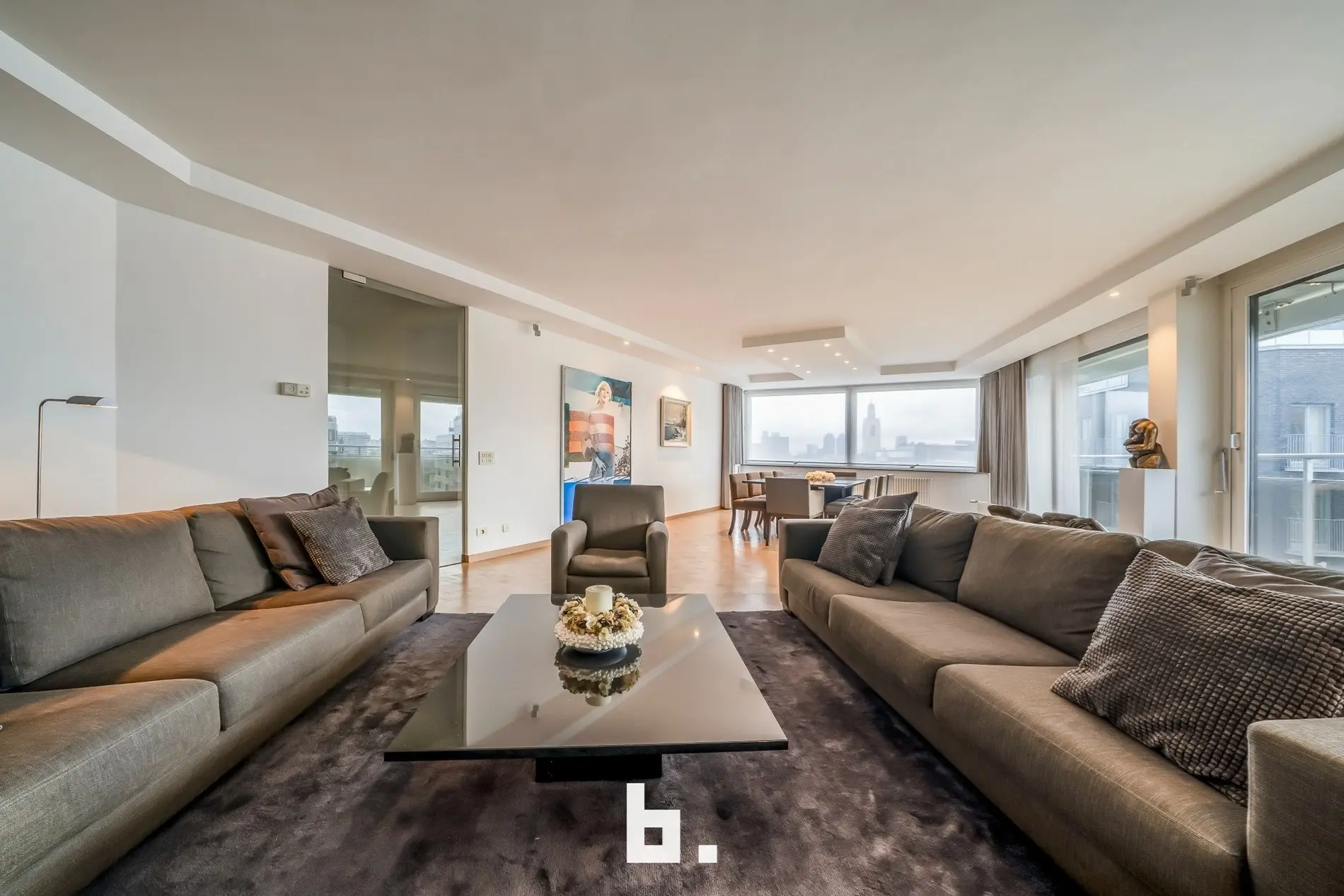 Dit uitzonderlijk ruim appartement van 126 m², gelegen op de 7de verdieping, biedt een adembenemend uitzicht over de stad en een hoogstaand wooncomfort. Oorspronkelijk twee studio’s, werd het geheel samengevoegd tot een elegant en ruim woonappartement.