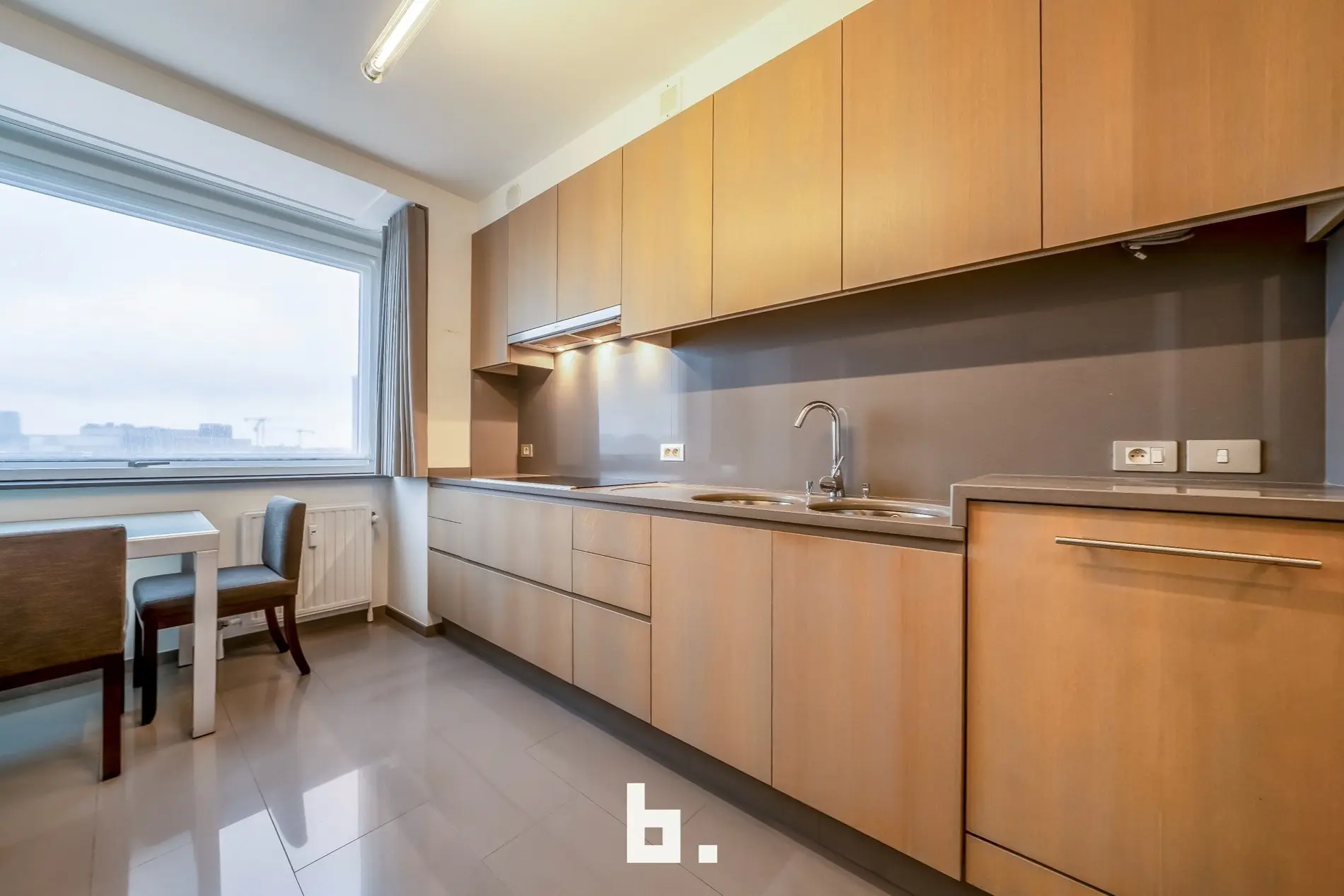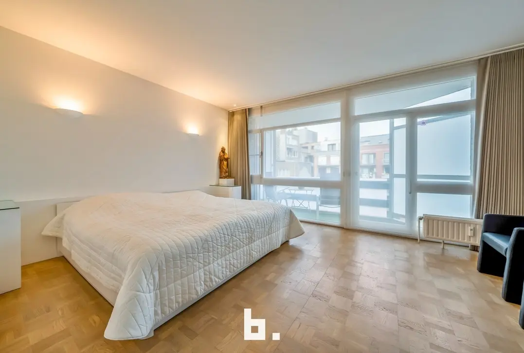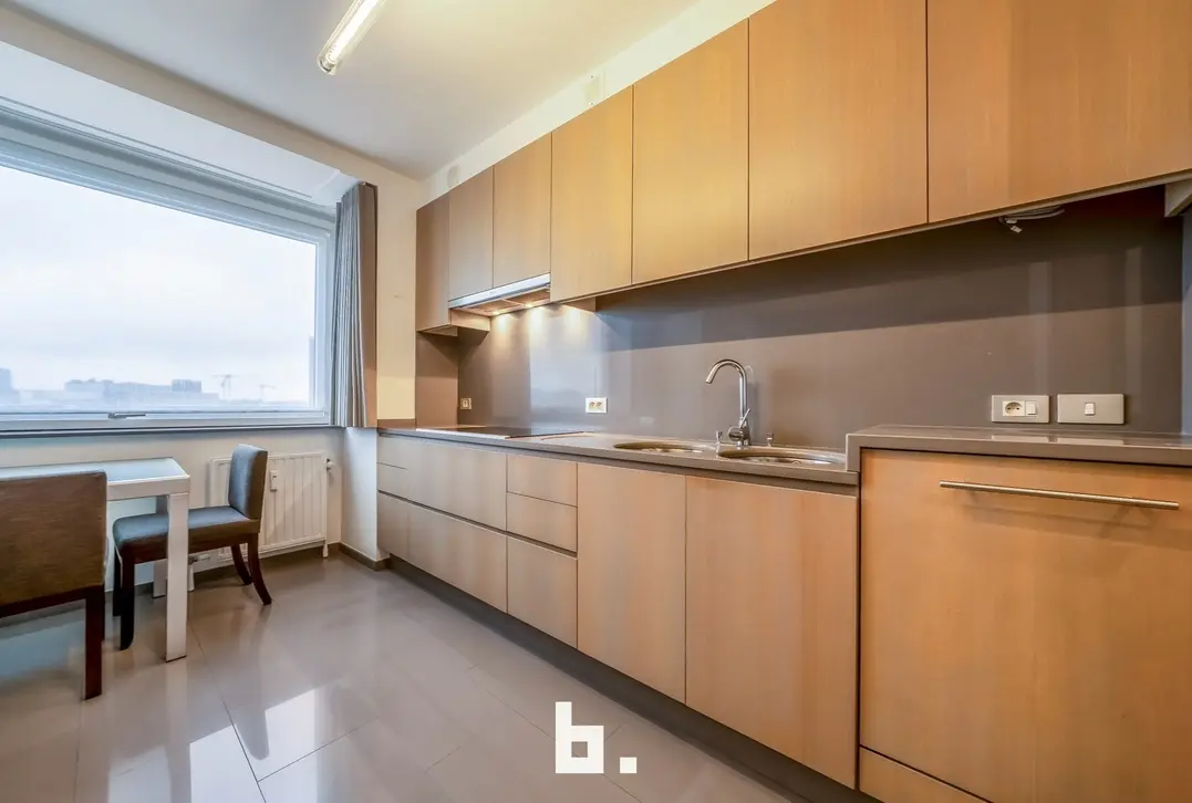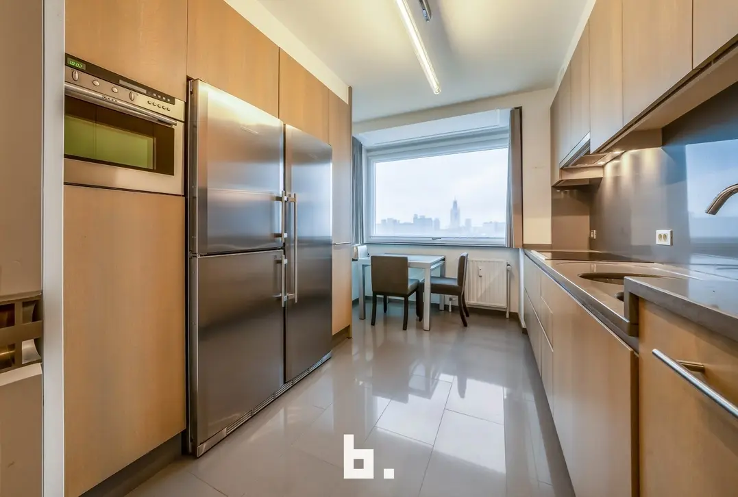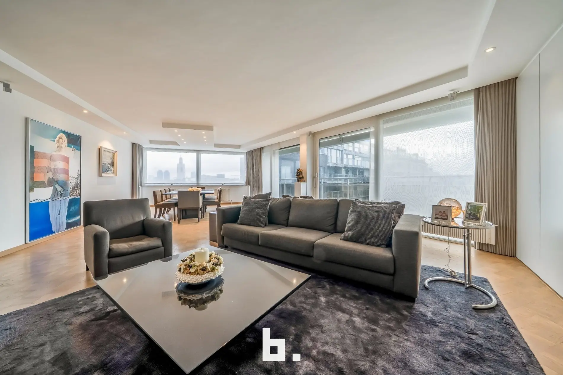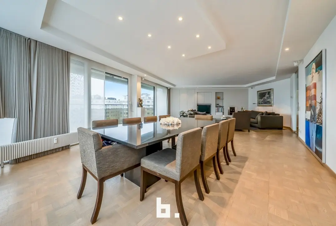 Dit uitzonderlijk ruim appartement van 126 m², gelegen op de 7de verdieping, biedt een adembenemend uitzicht over de stad en een hoogstaand wooncomfort. Oorspronkelijk twee studio’s, werd het geheel samengevoegd tot een elegant en ruim woonappartement.