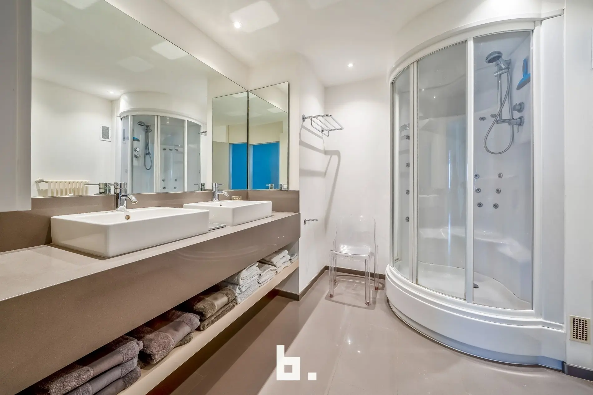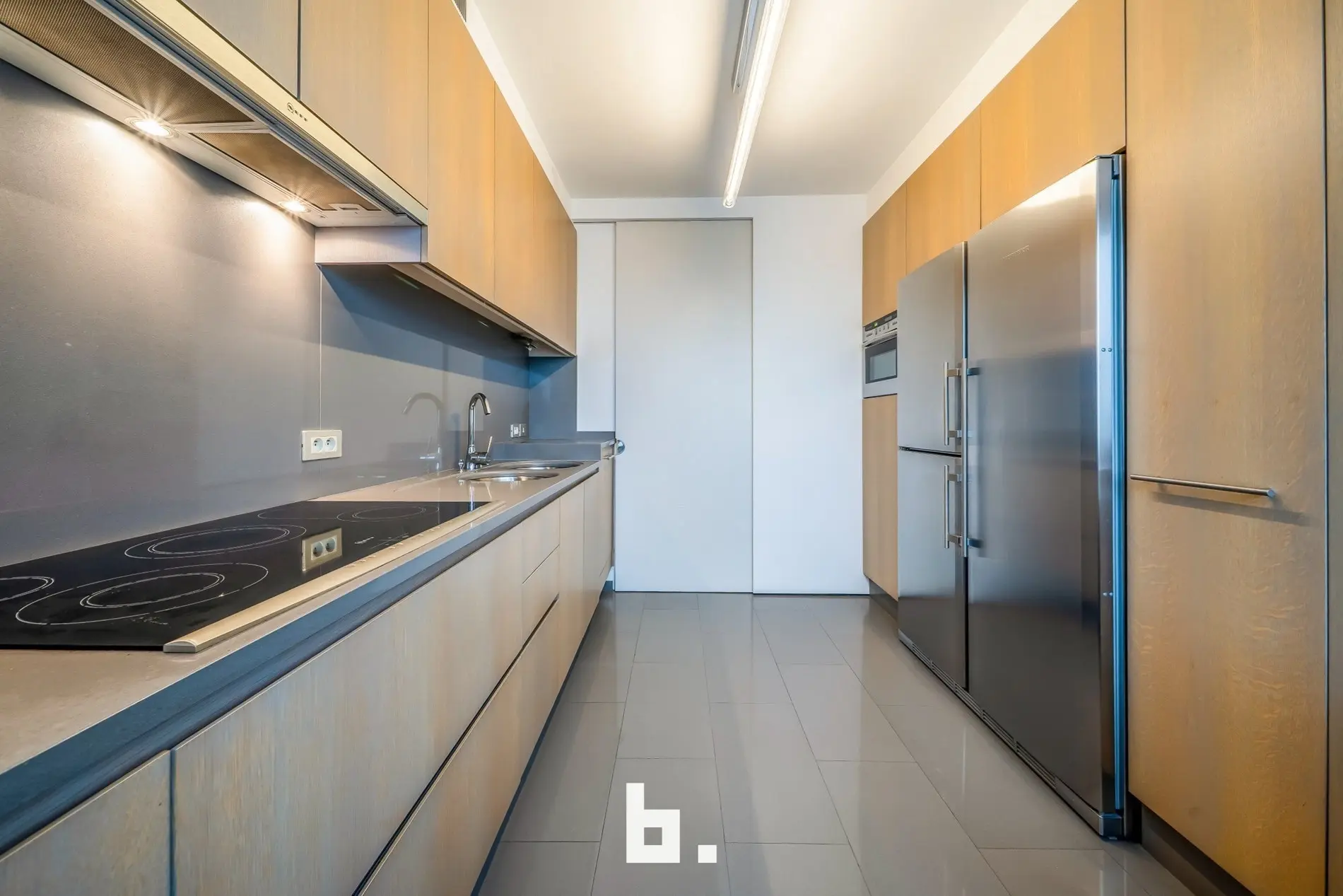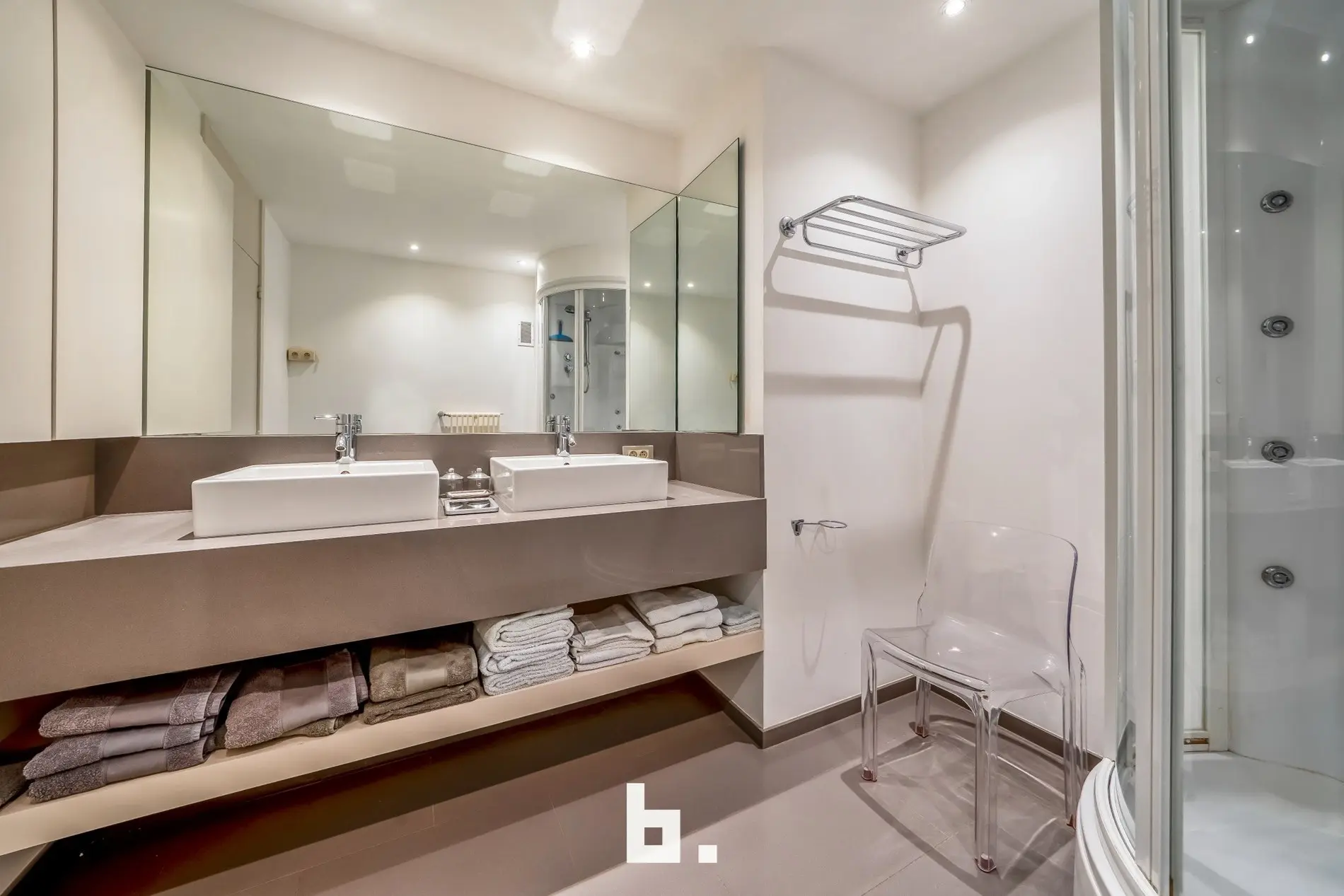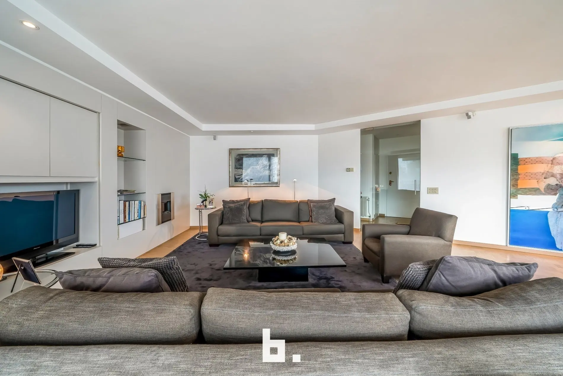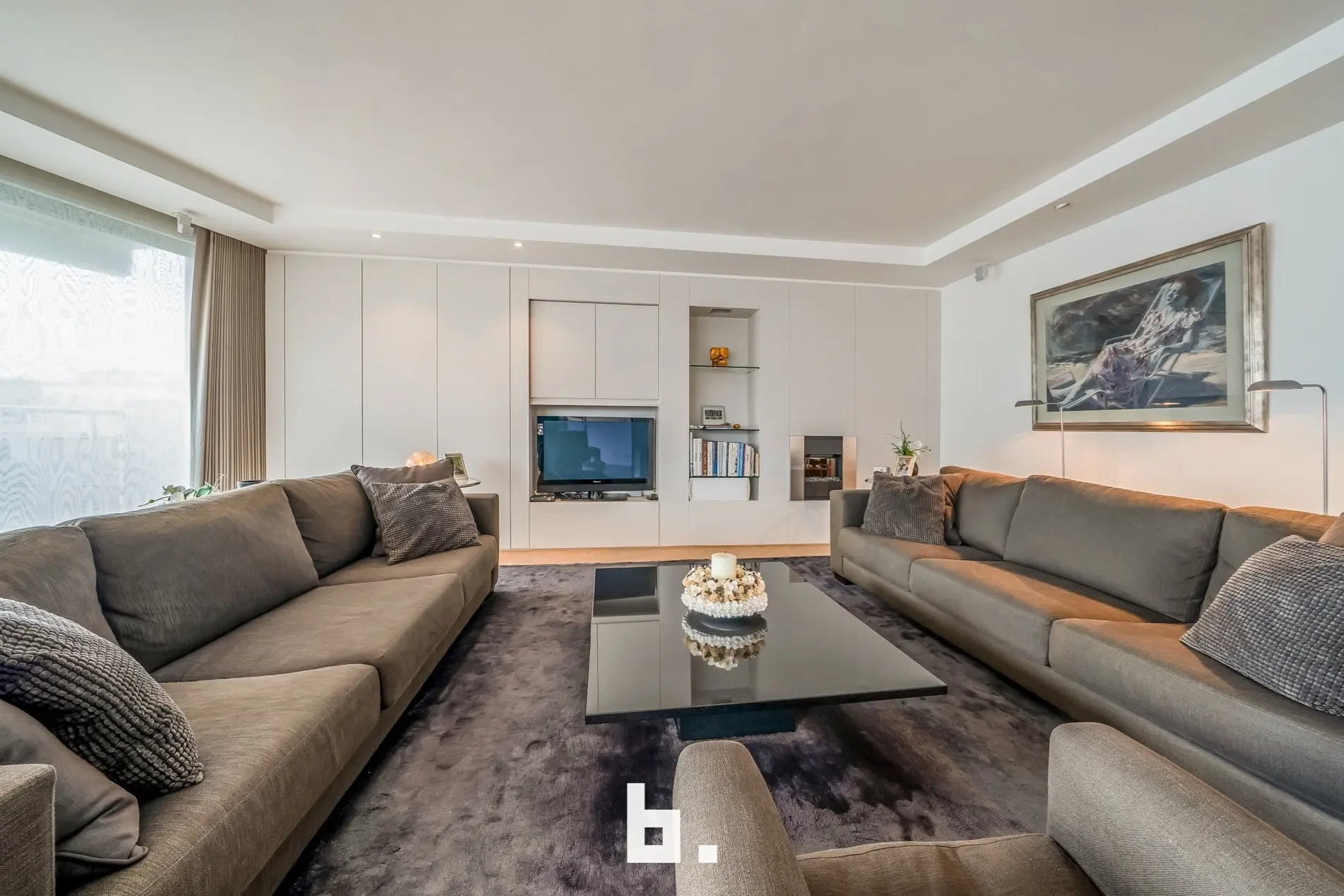 Afwerking en uitrusting bevinden zich op hoog niveau met domotica, elektrische schuifgordijnen, buitenscreens en maatwerk kasten. Het appartement wordt bovendien verkocht inclusief designmeubilair.