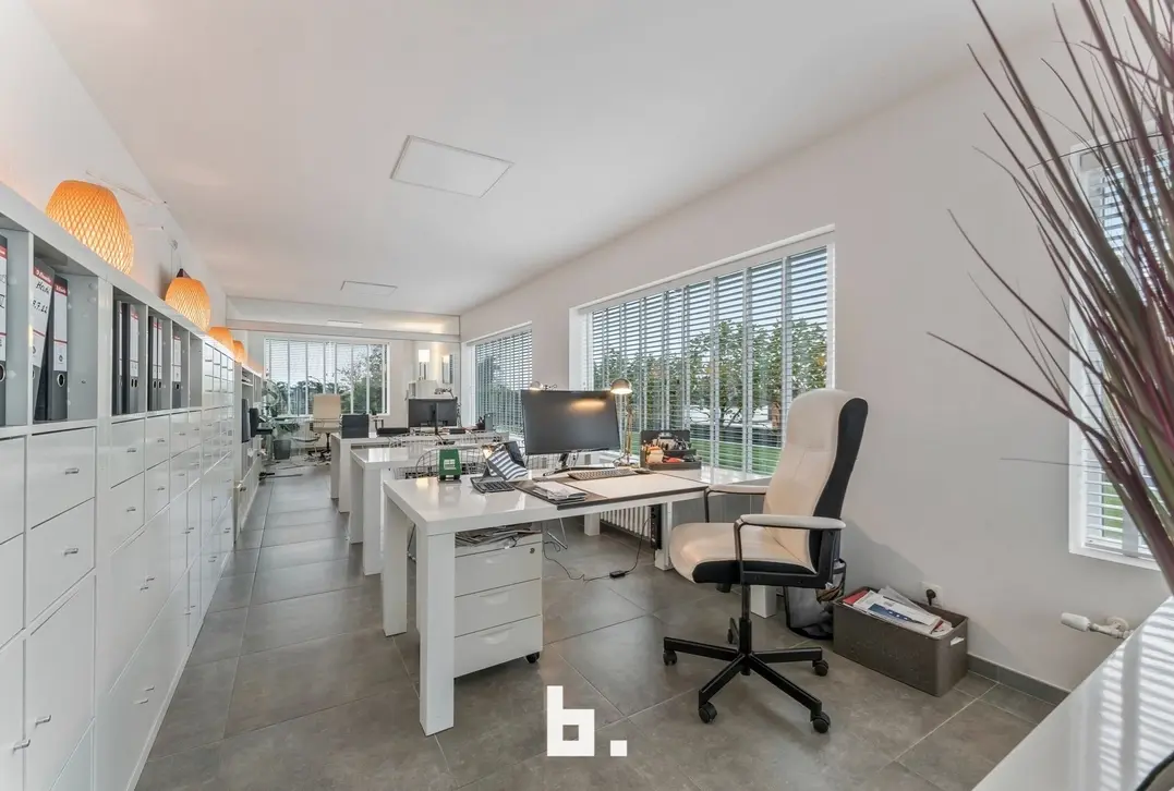 wonen met professionele mogelijkheden. Ideaal voor zelfstandigen zoals dokters, boekhouders of therapeuten, dankzij een volledig uitgeruste praktijkruimte (60 m²) met aparte inkom, keuken, sanitair en privéparking.