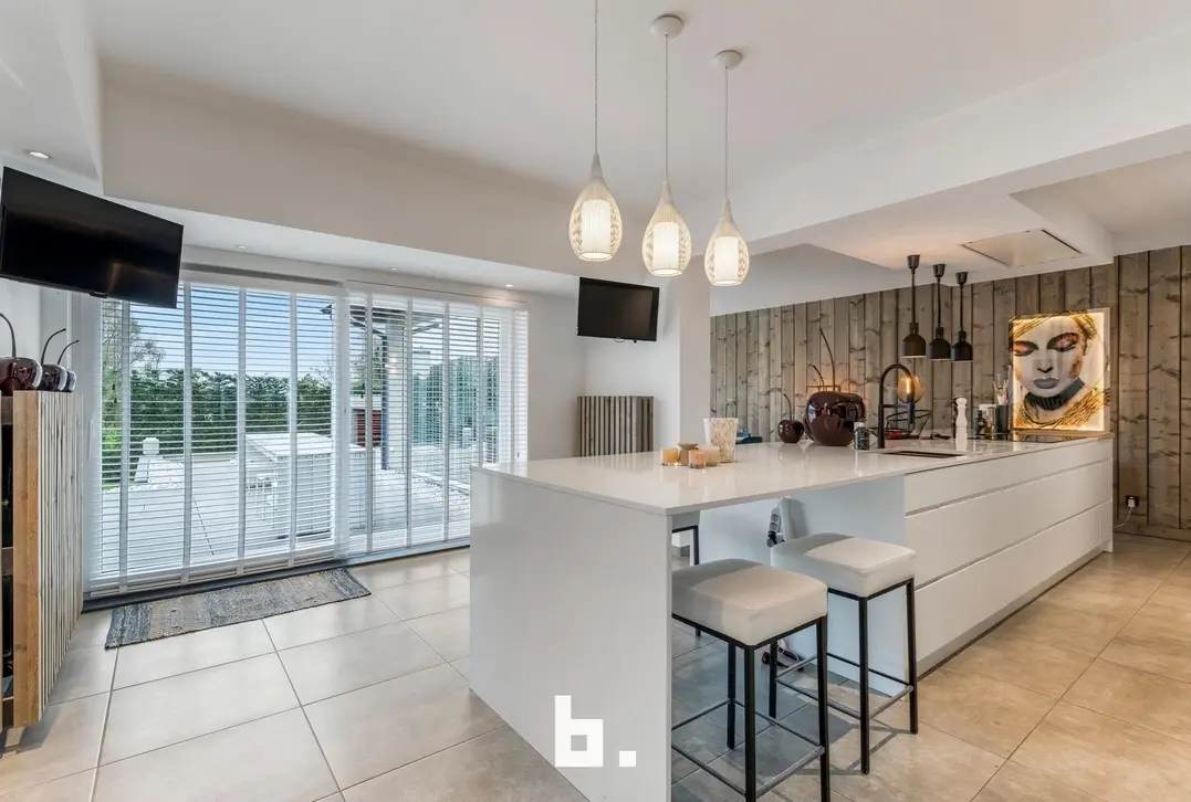 Deze bijzonder ruime (838m²!) woning werd in 2021 volledig gerenoveerd en met bijzonder hoogwaardige materialen afgewerkt.
