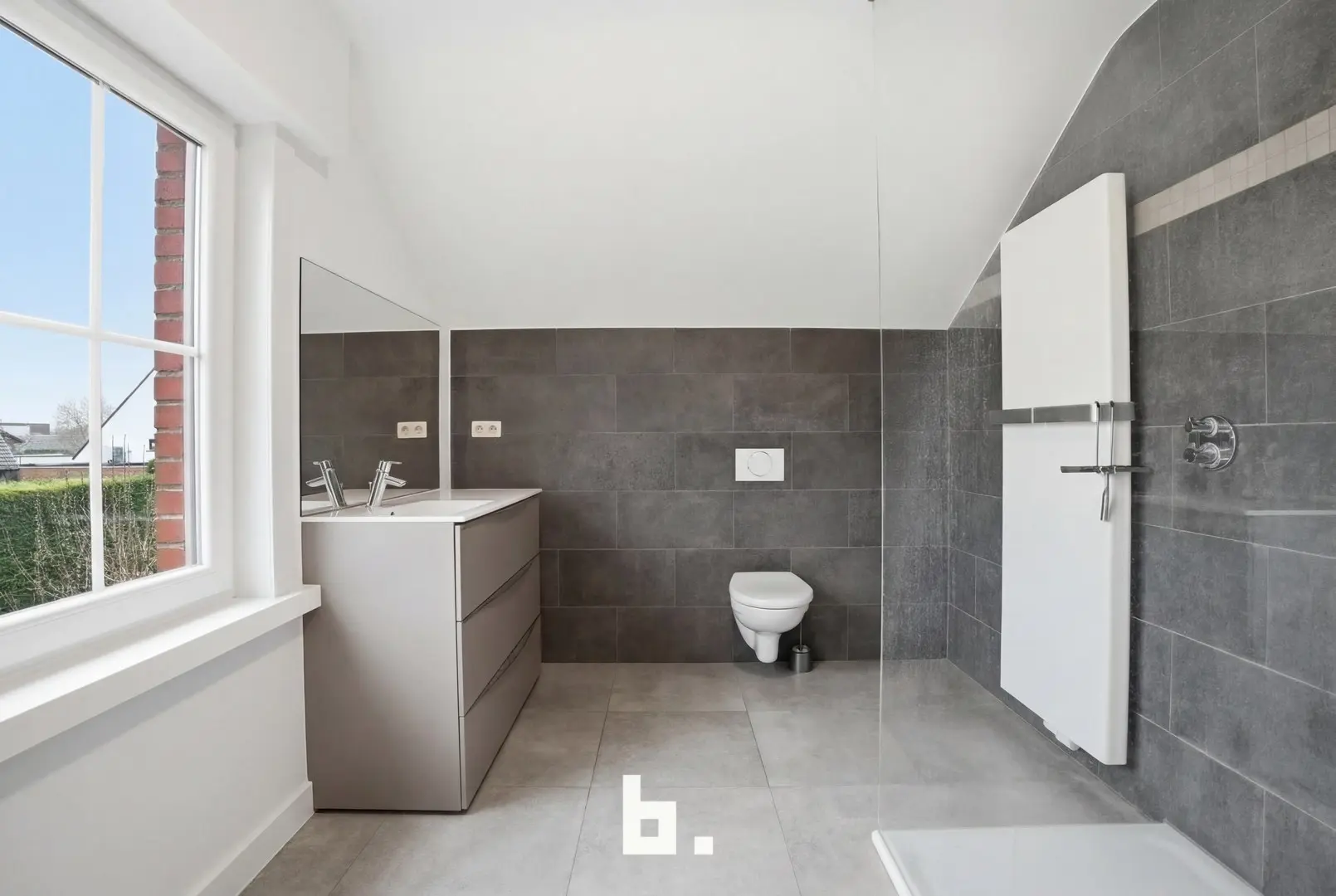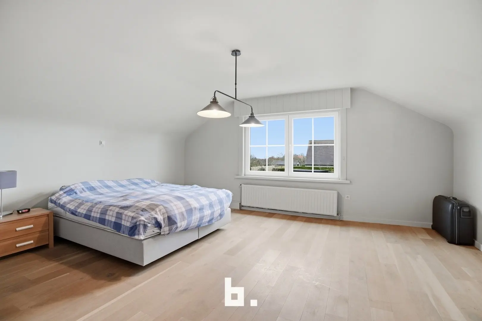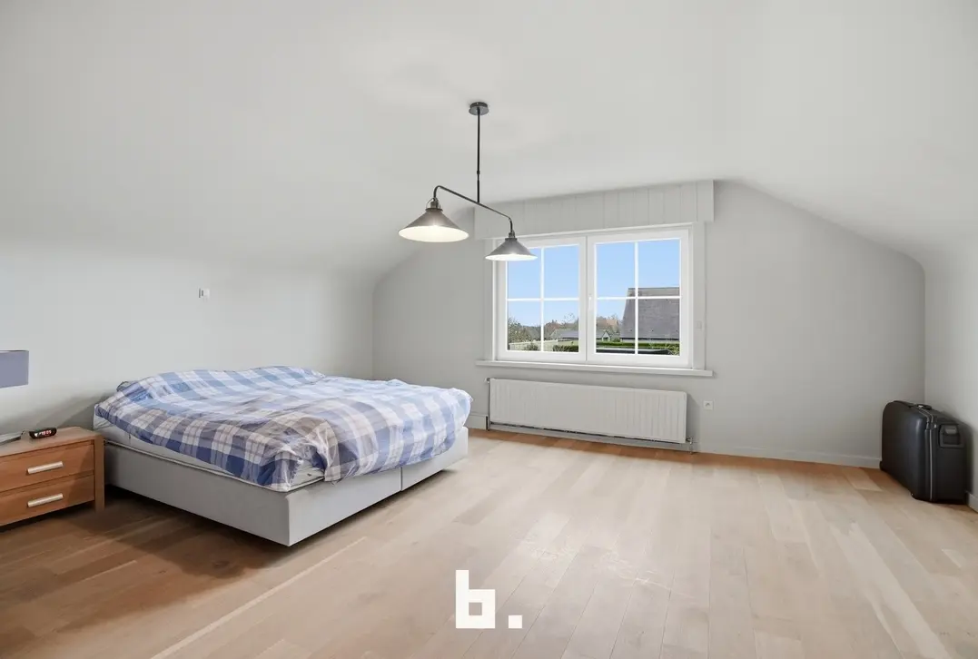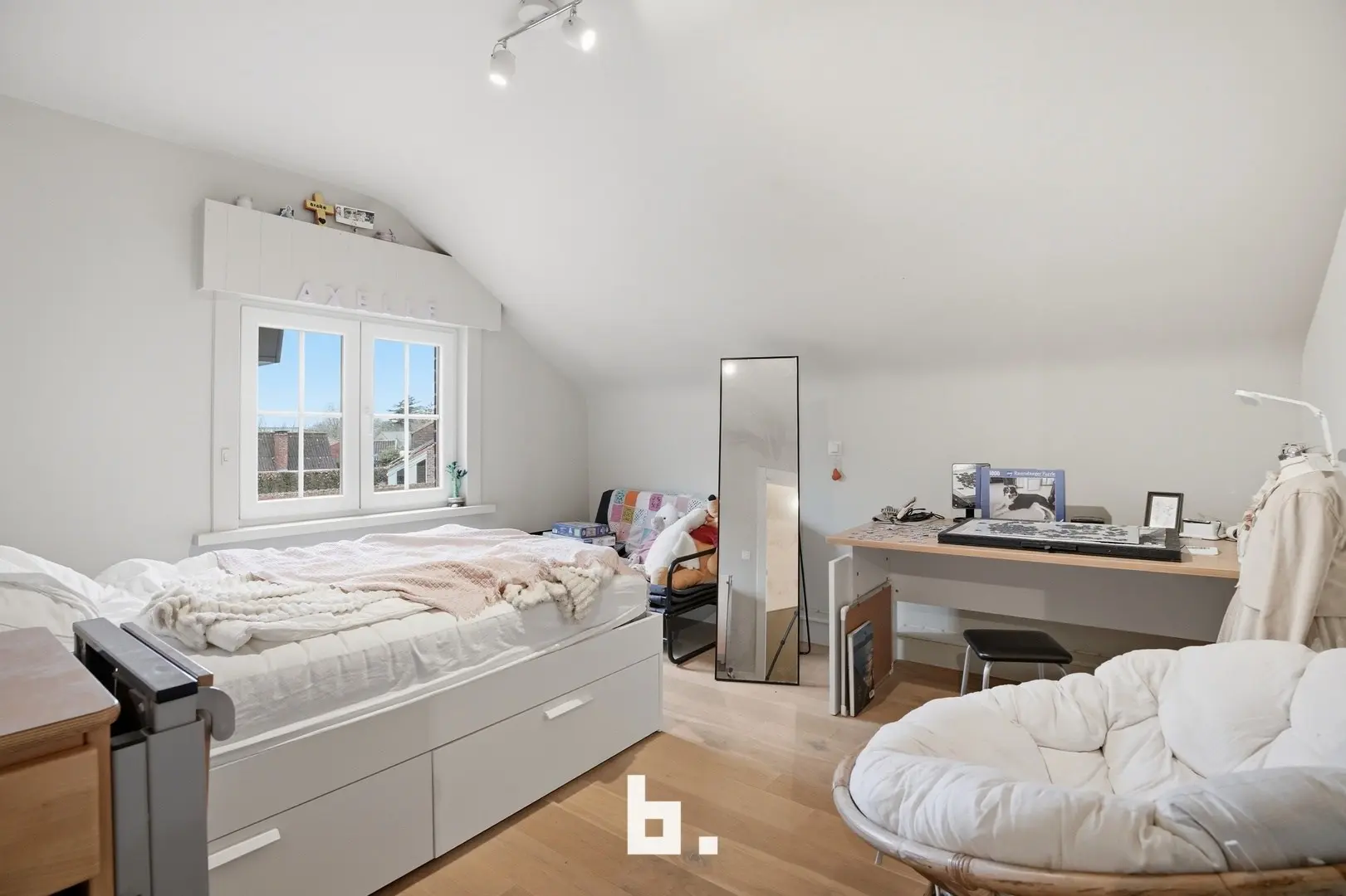 Op de eerste verdieping vindt u de nachthal, drie slaapkamers en extra kamertje. Verder hebben we nog een badkamer uitgerust met douche , toilet en lavabo – ideaal voor een gezin of wie extra kamers wenst voor bureau of hobbyruimte.