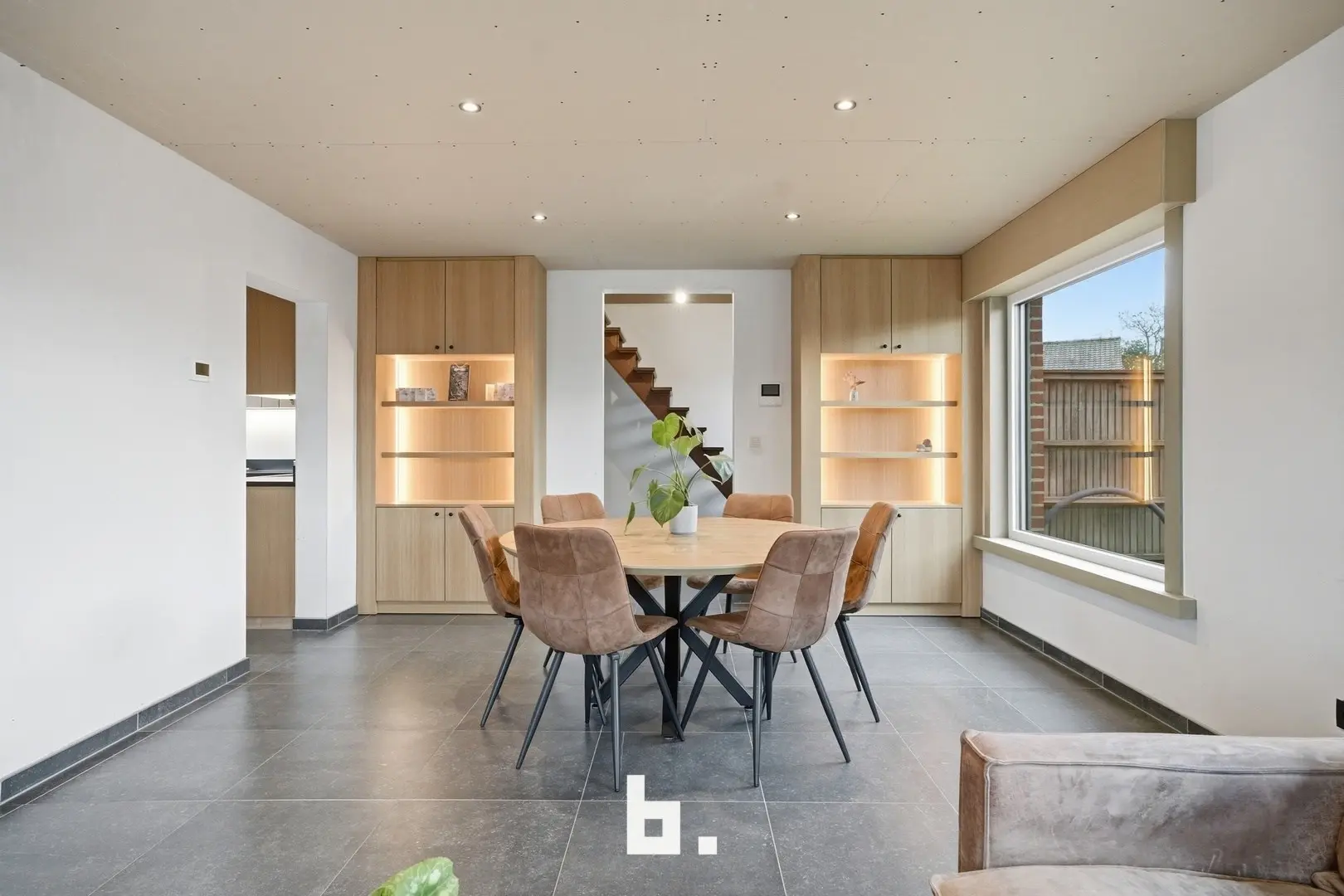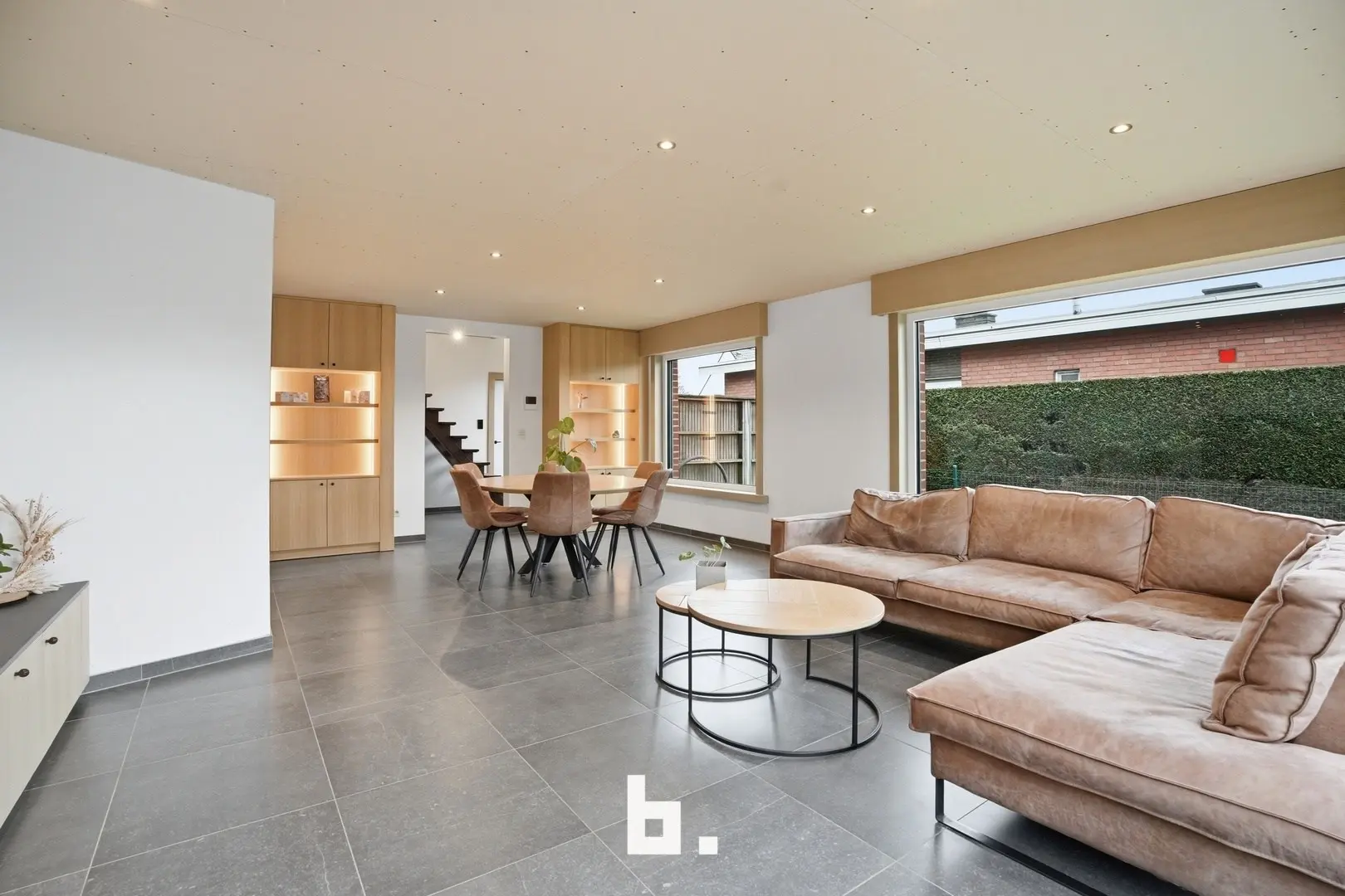 Bij het betreden van de woning komt u in de inkomhal met gastentoilet en een kamer. Via de inkomhal komt u in de ruime en lichtrijke leefruimte. Aansluitend bevindt zich de keuken met verbinding naar de garage.