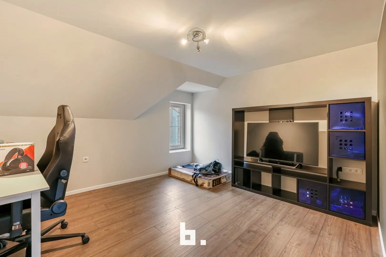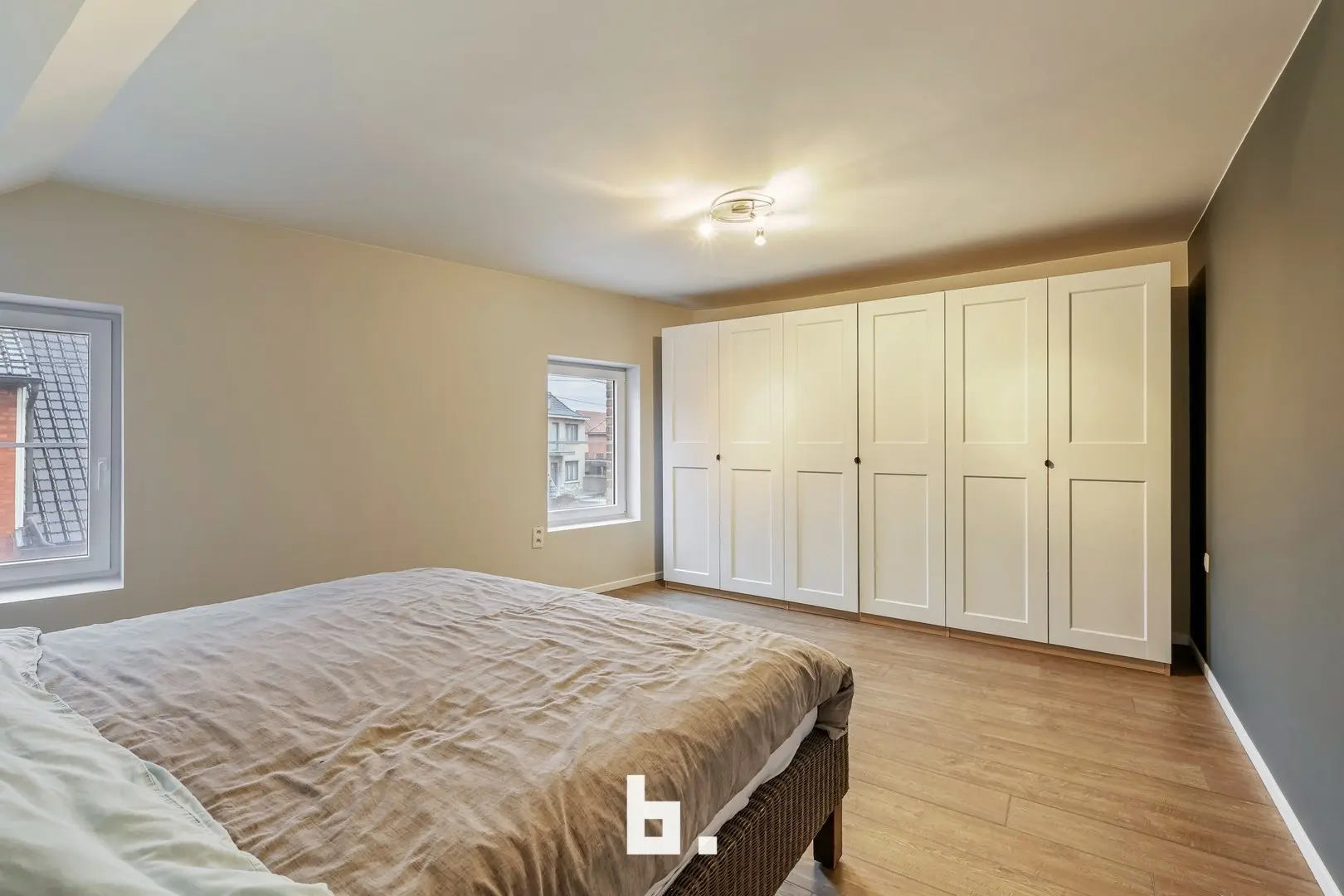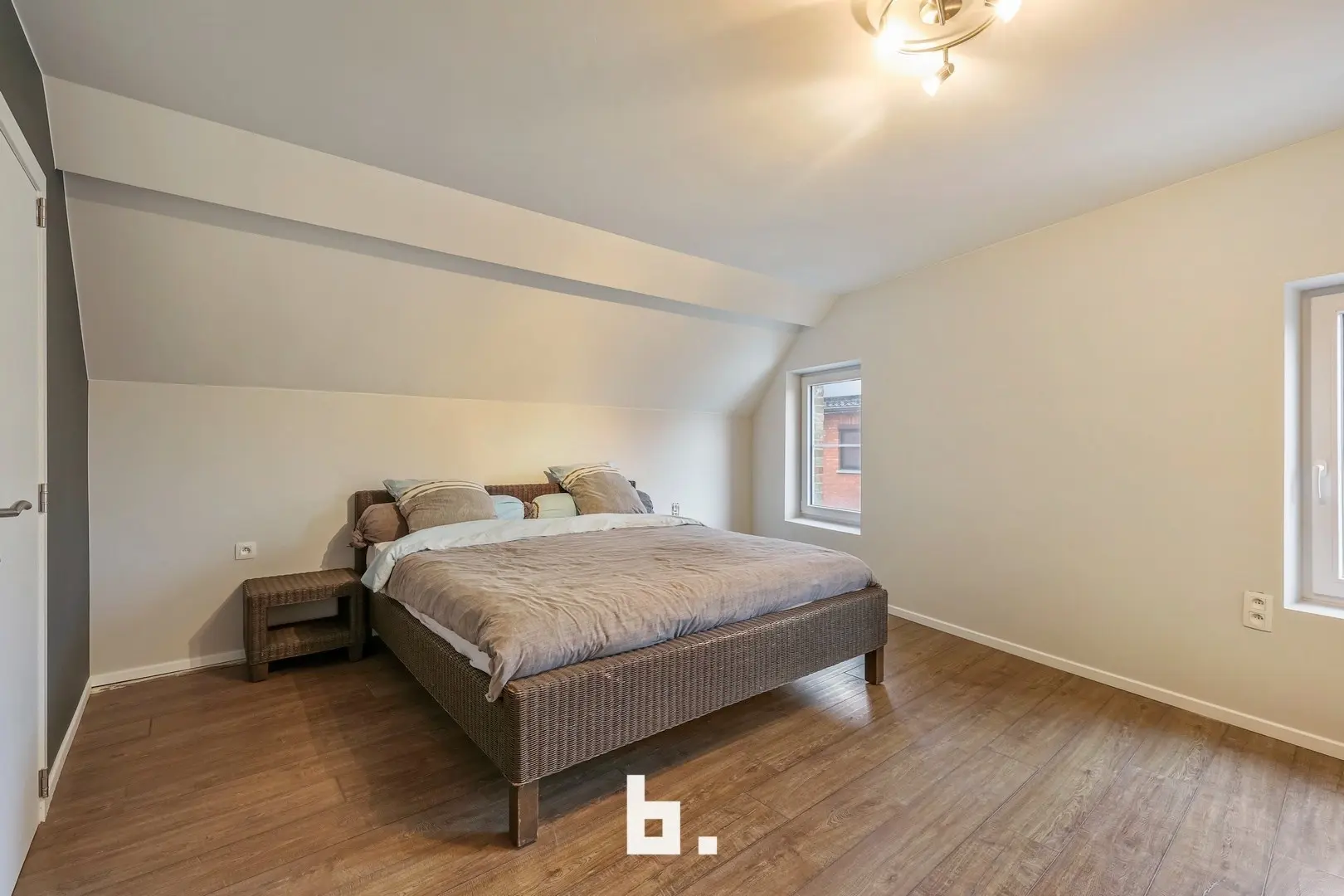 Op de bovenverdieping werd de badkamer stijlvol ingericht met een douche en een lavabomeubel. Verder beschikt de woning over twee volwaardige slaapkamers, perfect als hoofd- en logeerkamer of bureauruimte.
