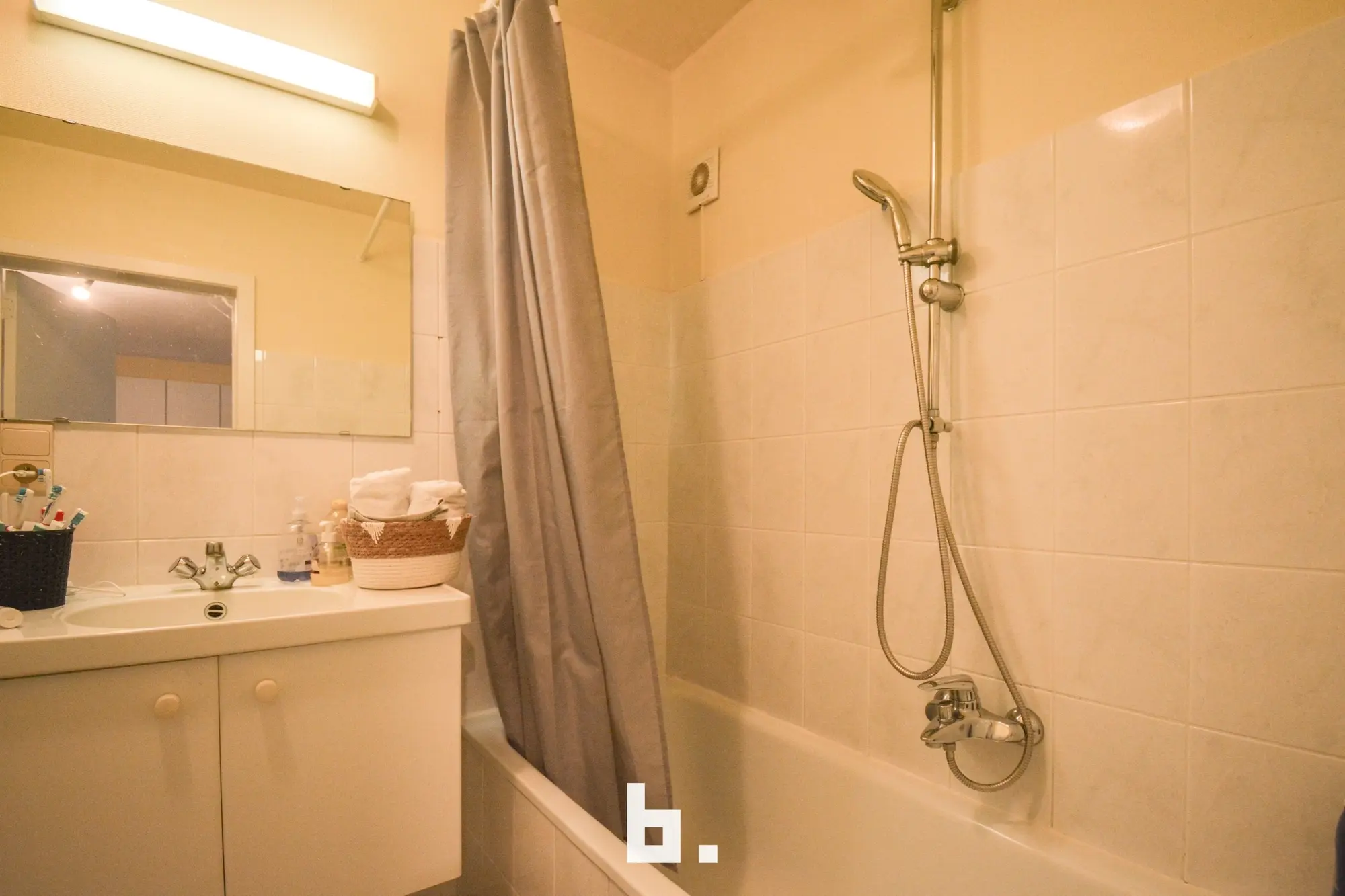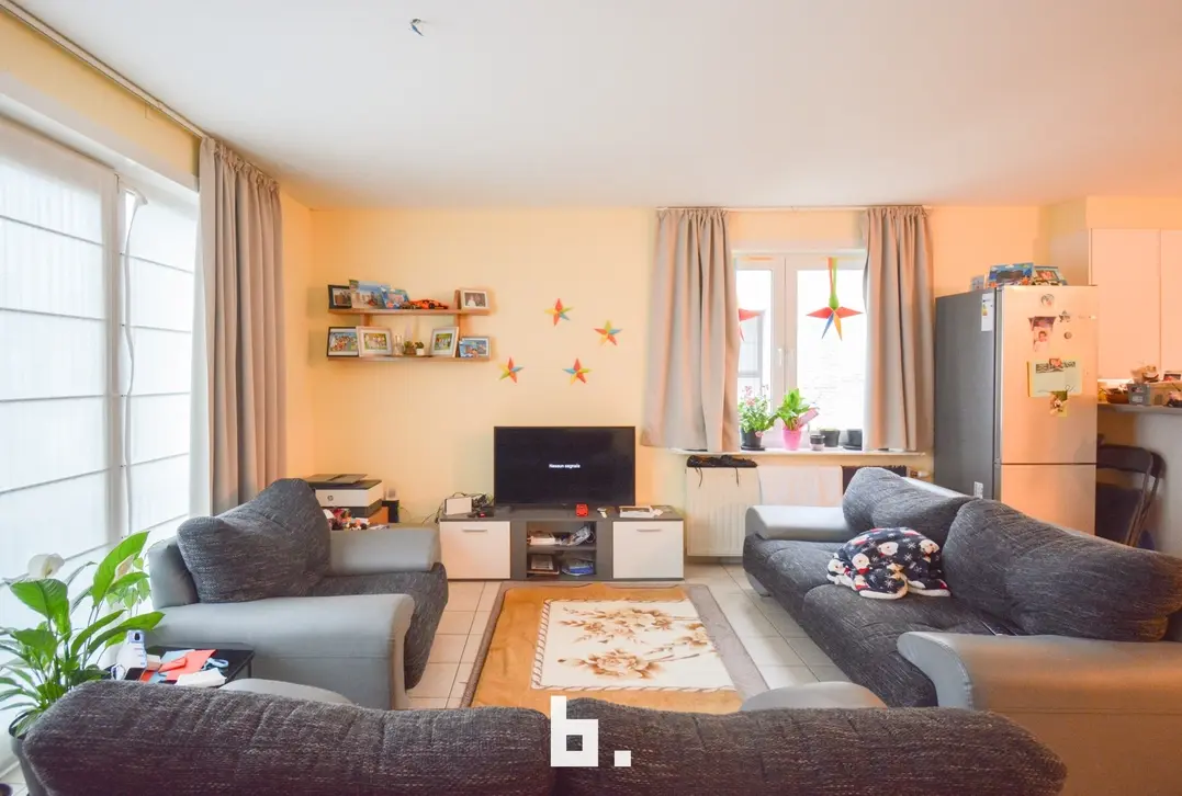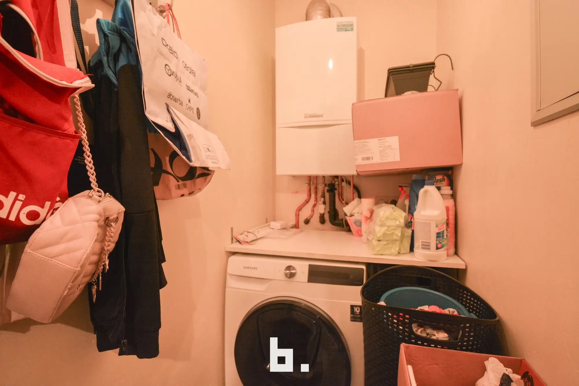 Het appartement omvat: Inkomhal met gastentoilet en (vestiaire)berging, ruime lichtrijke woonkamer met open keuken, 2 slaapkamers, badkamer met ligbad en berging met aansluiting wasmachine. Klein terrasje achteraan bereikbaar vanuit de slaapkamer.