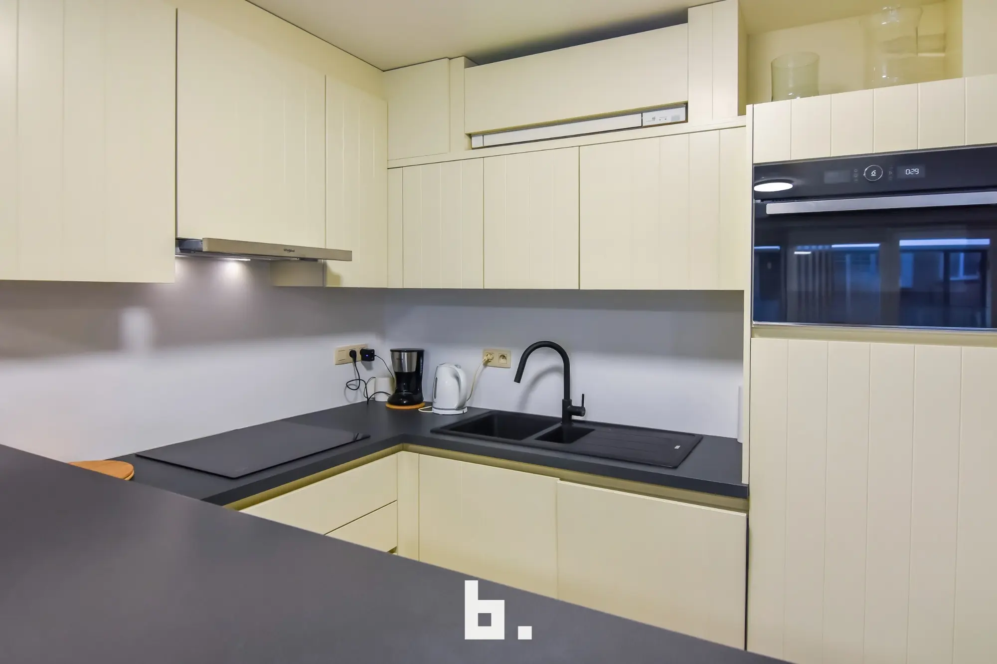 Het gelijkvloers is momenteel nog volledig in te richten en biedt tal van mogelijkheden, zoals een atelier, studio, extra leef- of werkruimte, of het creëren van twee bijkomende slaapkamers. Een open keuken en een apart toilet zijn reeds voorzien.