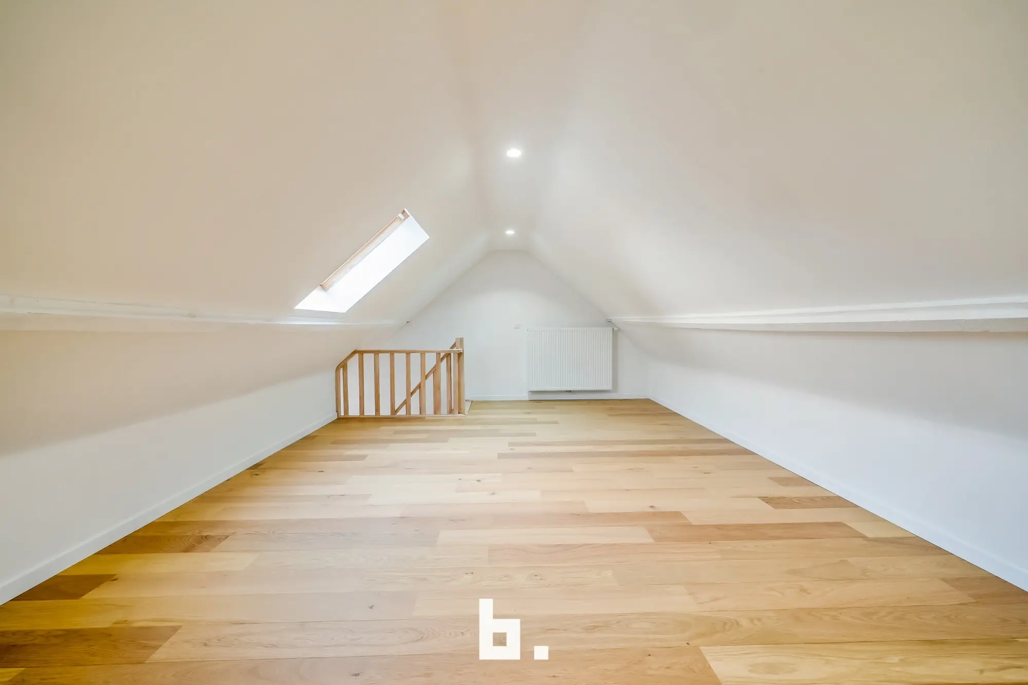 Deze unieke woning werd van kop tot teen volledige gerenoveerd volgens de regels van de kunst. De unieke afwerkingsgraad staat hier dan ook centraal doorgeen de volledige woning. De woonst biedt maar liefst 4 slaapkamers met 2 badkamers, tevens is hier ook een grote bureau ruimte voorzien. De enorme leefruimte met luxueuze keuken en voorzieningen is hier dan ook de grote troef. De woning beschikt tevens over een grote zonnige tuin met terrassen rondom. De woning is ideaal voor wie ruimte en luxe op een top locatie wil combineren.