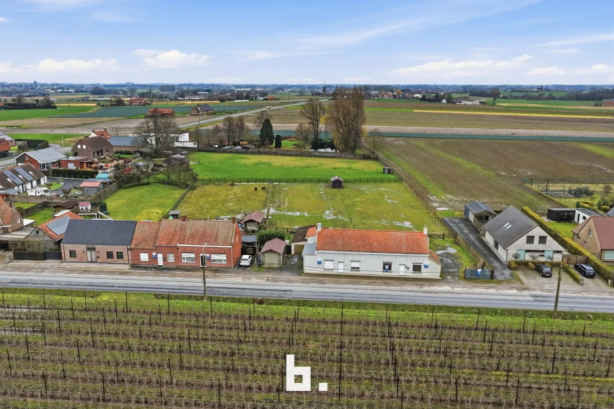 Unieke troef: deze woning maakt deel uit van een rij van 4 naast elkaar gelegen panden, samen goed voor bijna 5.000 m² grond.