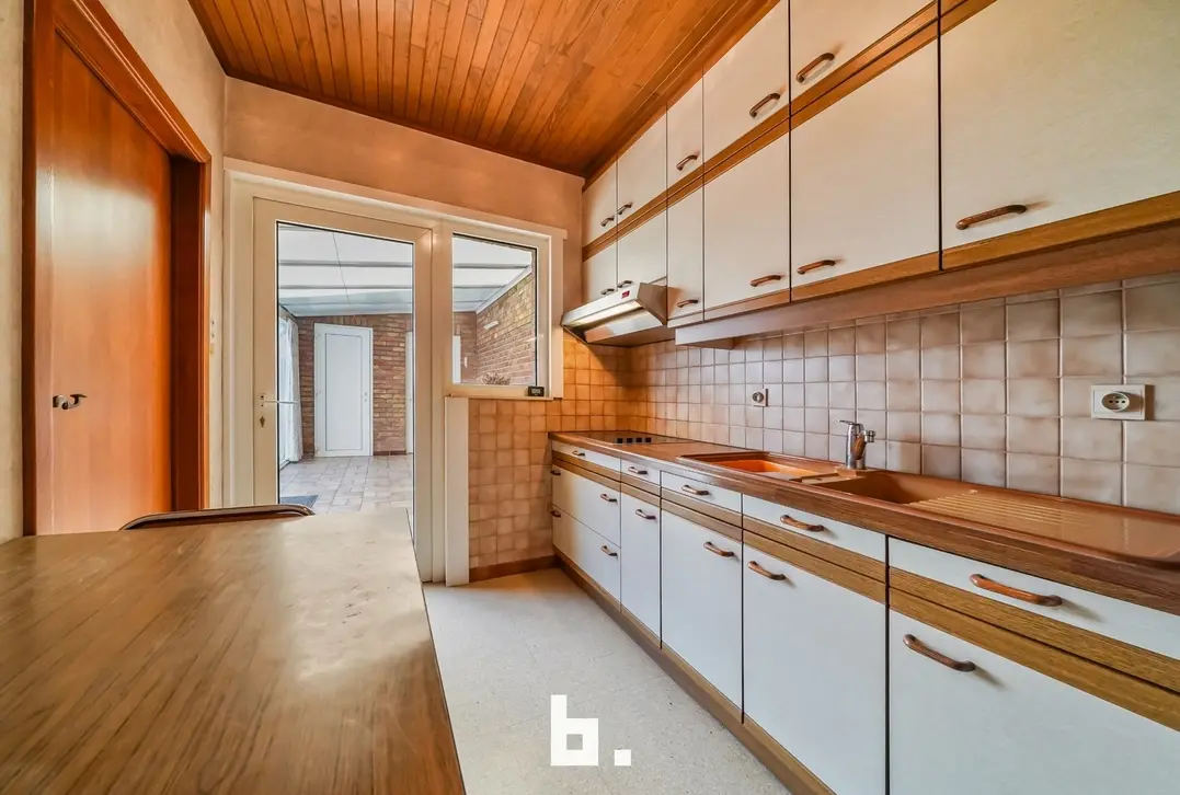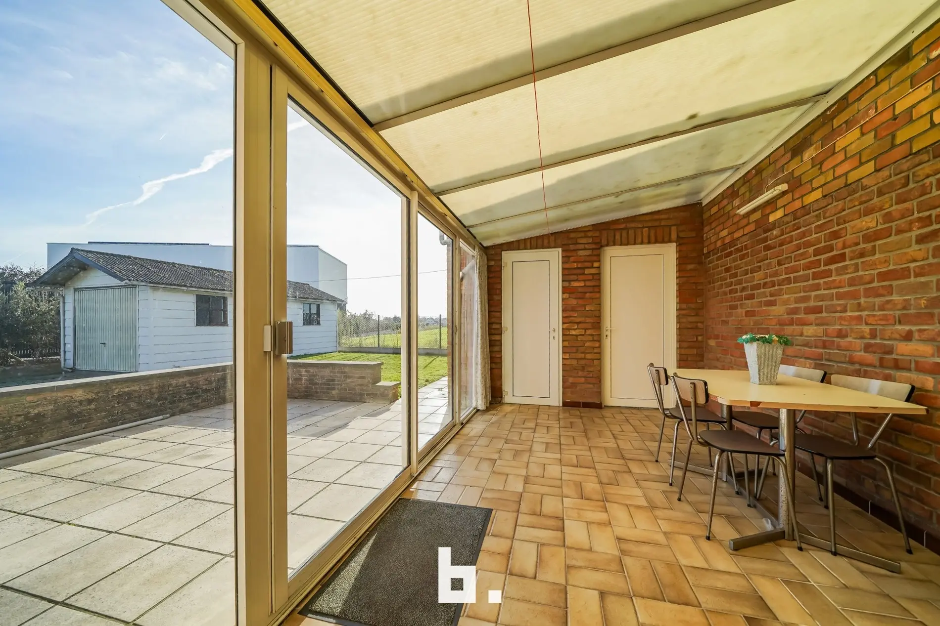 Indeling is als volgt : BENEDENVERDIEPING: inkomhal, living met zit- en eetplaats, keuken, veranda, toilet, wasplaats, werkplaats, garage , terras en tuin met oprit.