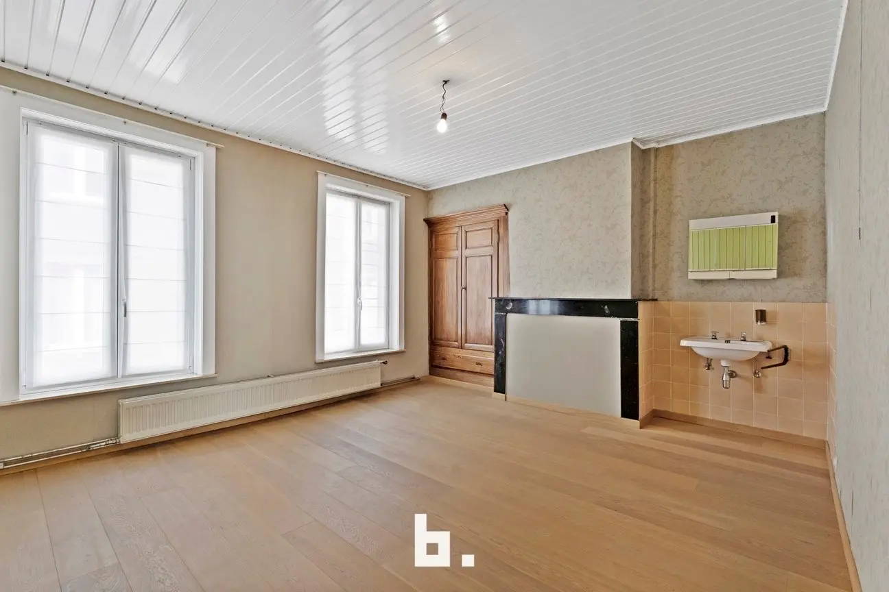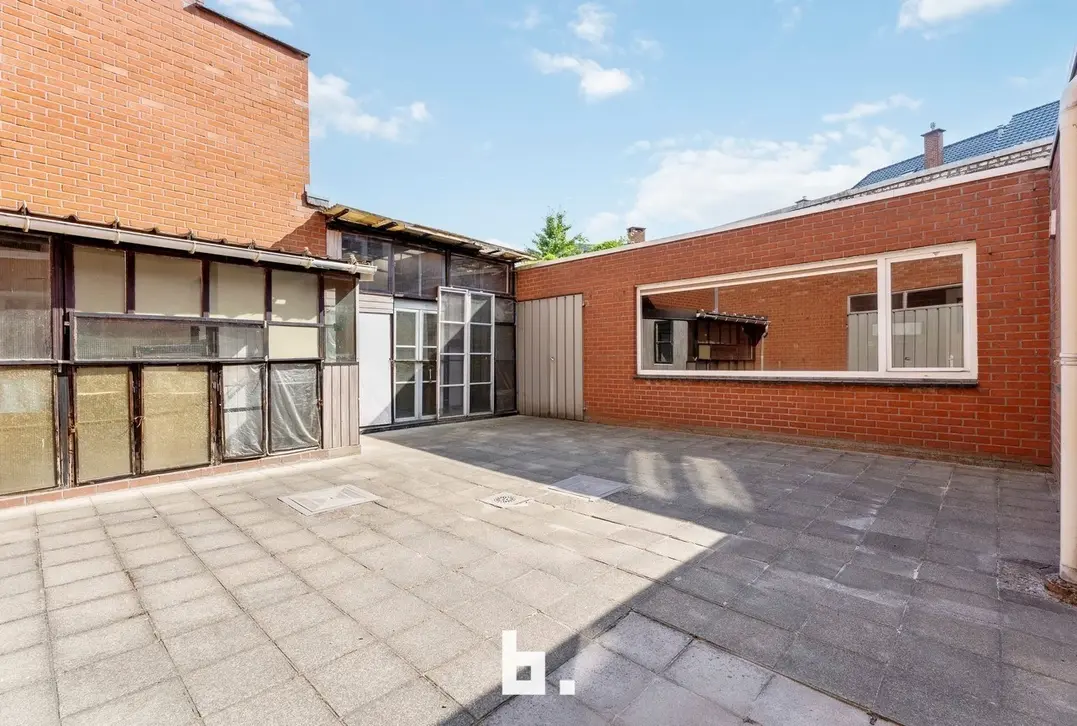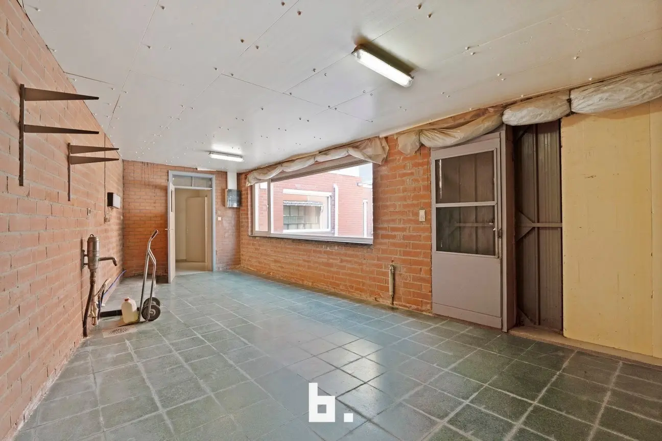 Gelijkvloers: ruime handelsruimte, die ook perfect kan gebruikt worden als hobbyruimte of 5de slaapkamer met bijkomende berging en toilet. Er is een aparte inkom die toegang geeft tot het private woongedeelte met lichtrijke leefruimte, volledig uitgeruste keuken, kelder, grote bijgebouwen en garage. Een gezellige binnentuin zorgt voor bijkomende buitenruimte.