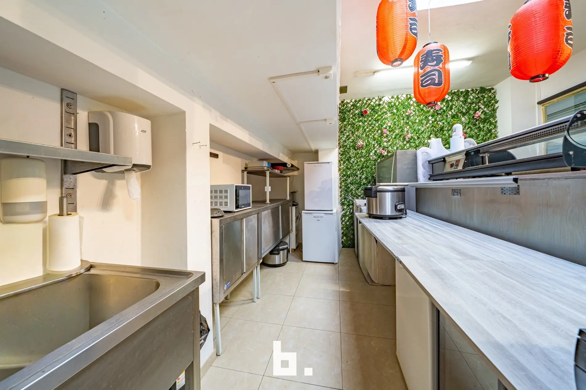 De ruimte werd jarenlang uitgebaat als sushibar met takeaway, wat meteen de uitstekende ligging en visibiliteit bewijs, ook perfect geschikt voor boetiek, kantoor of andere handelsactiviteit.